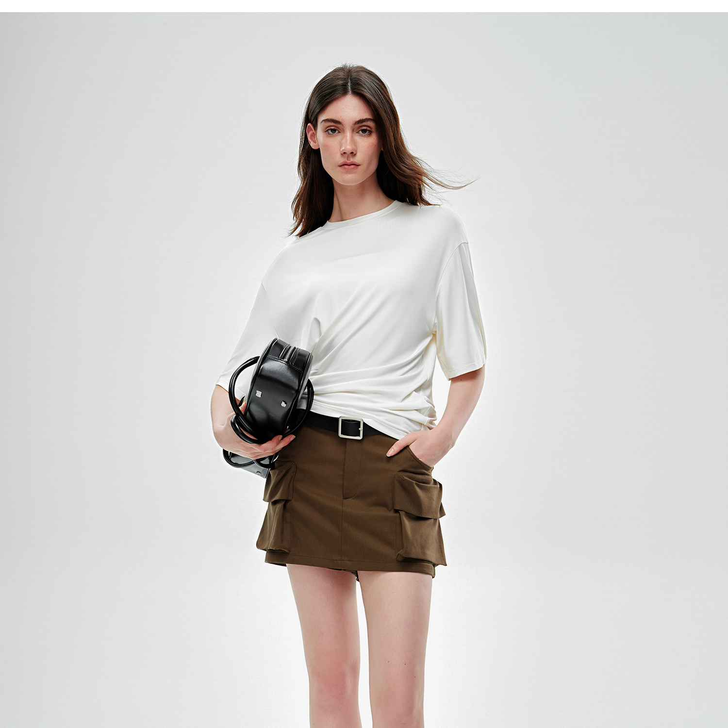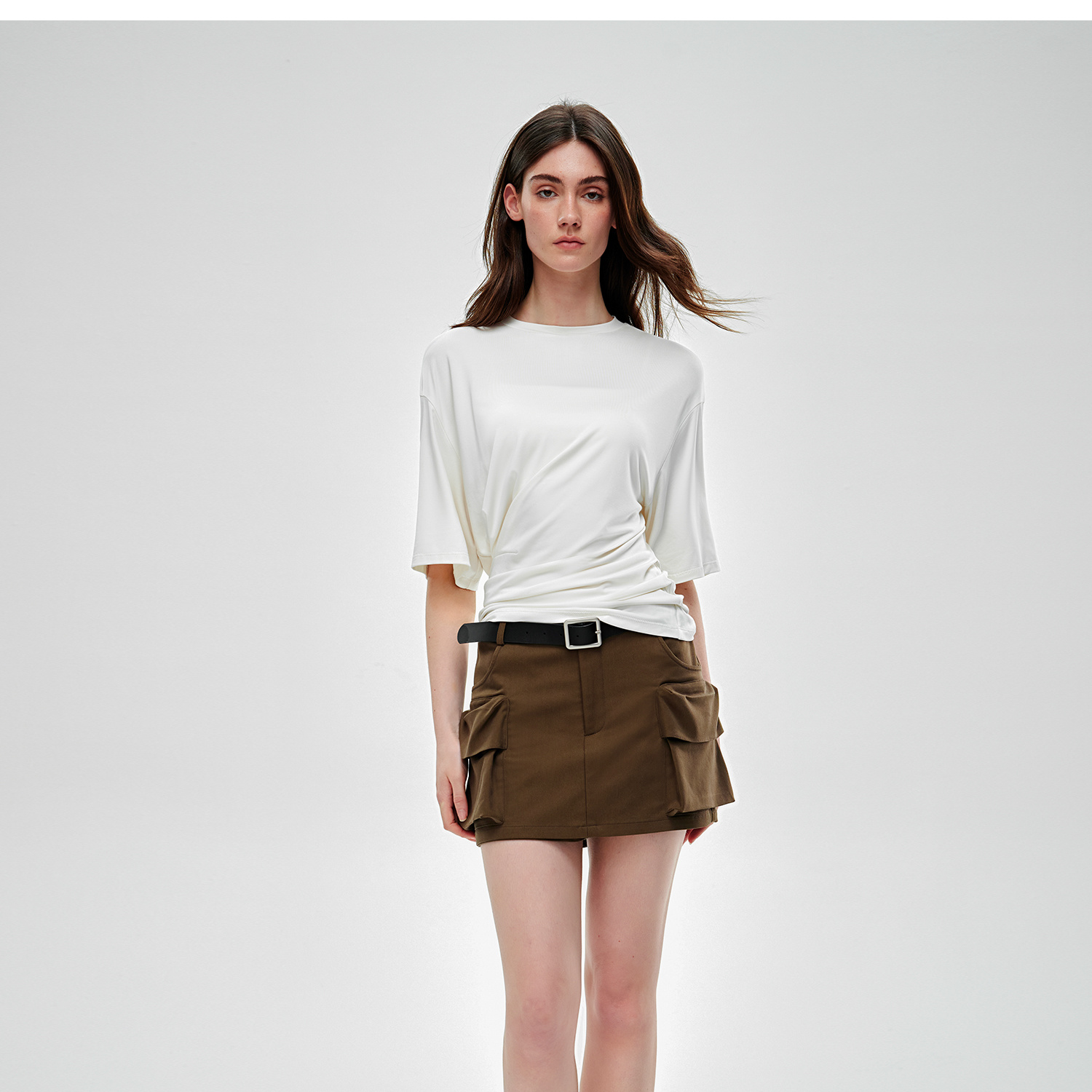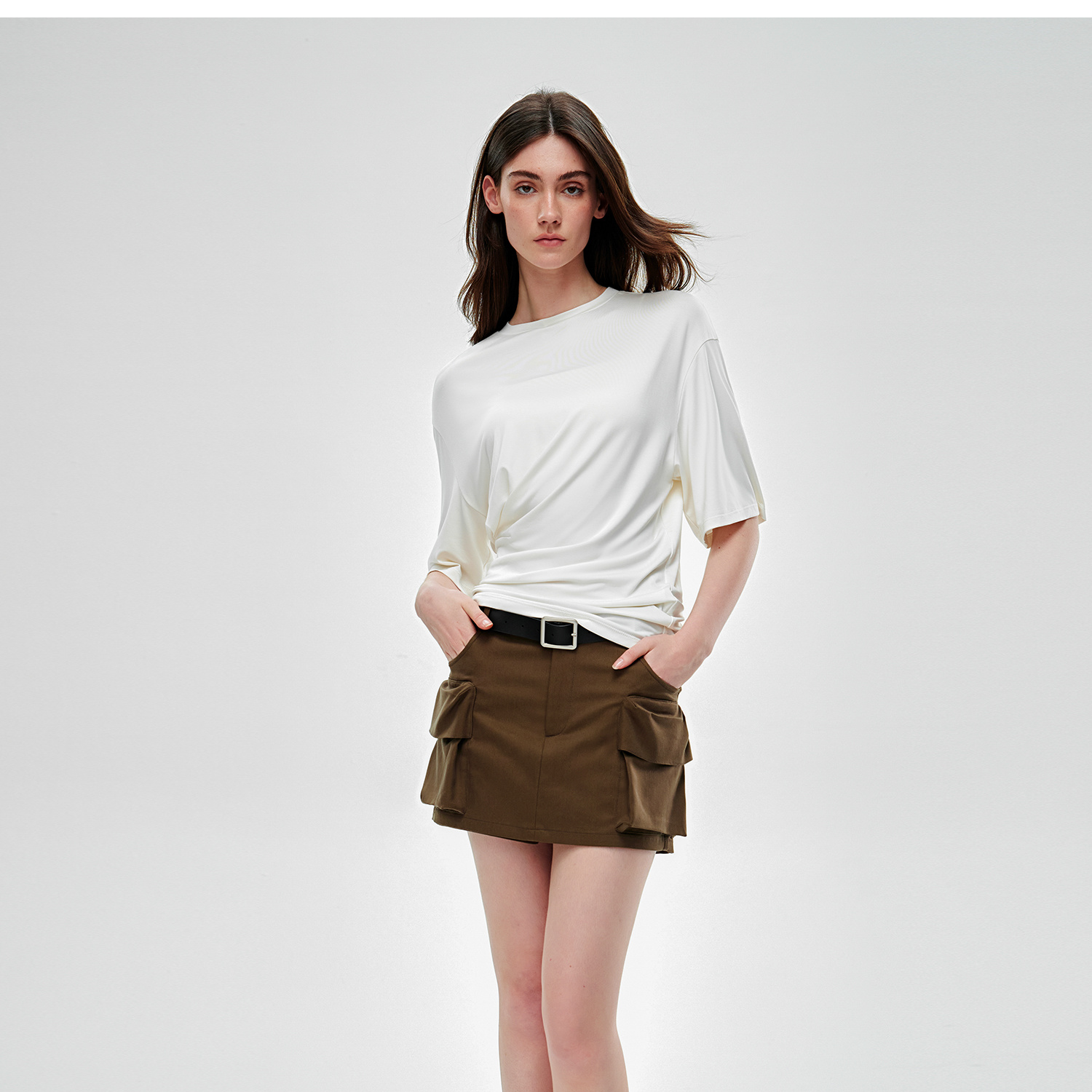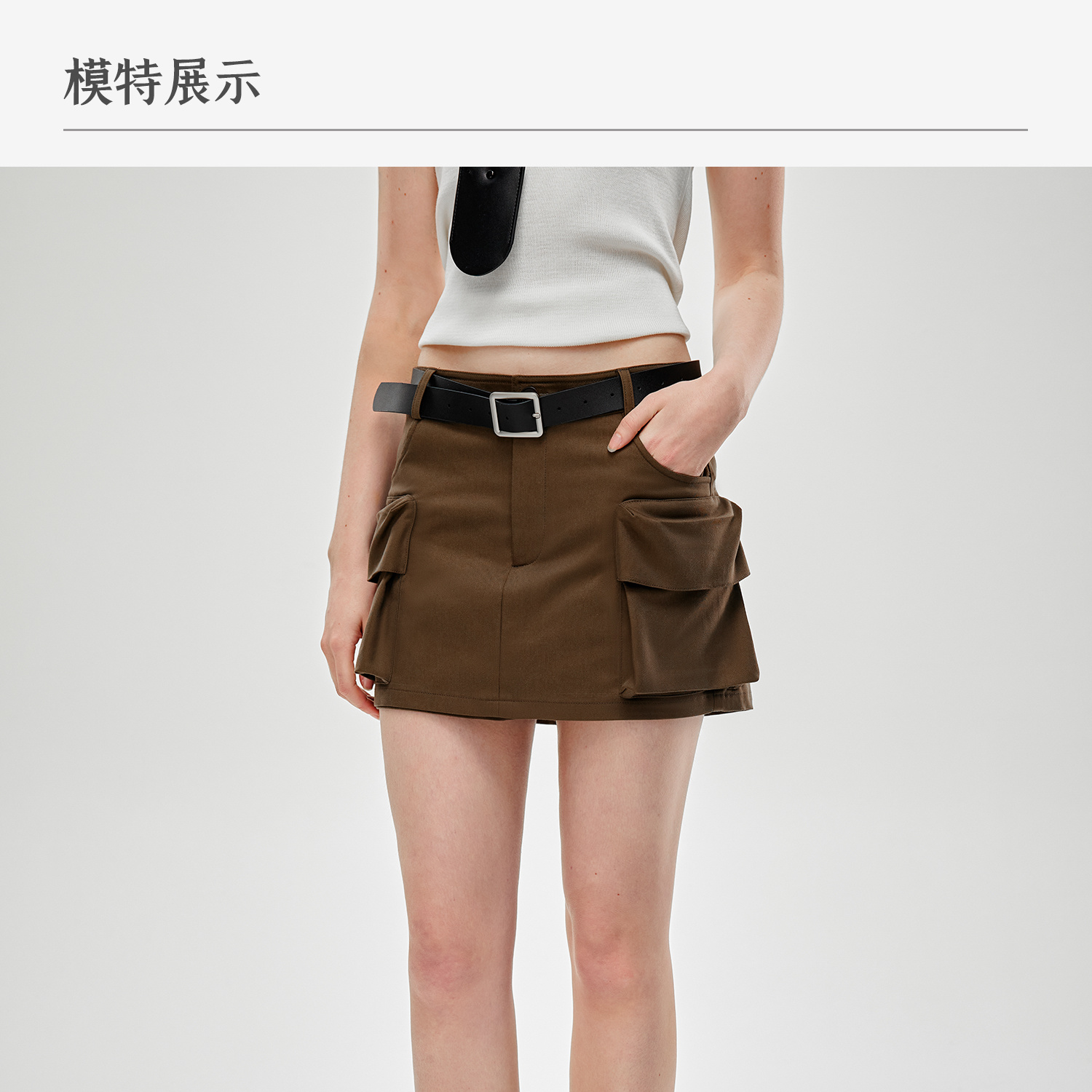 C+IMPRESS/西嘉水洗天丝棉 低腰裙裤女2025夏季挺阔工装口袋短裤KZ2502031