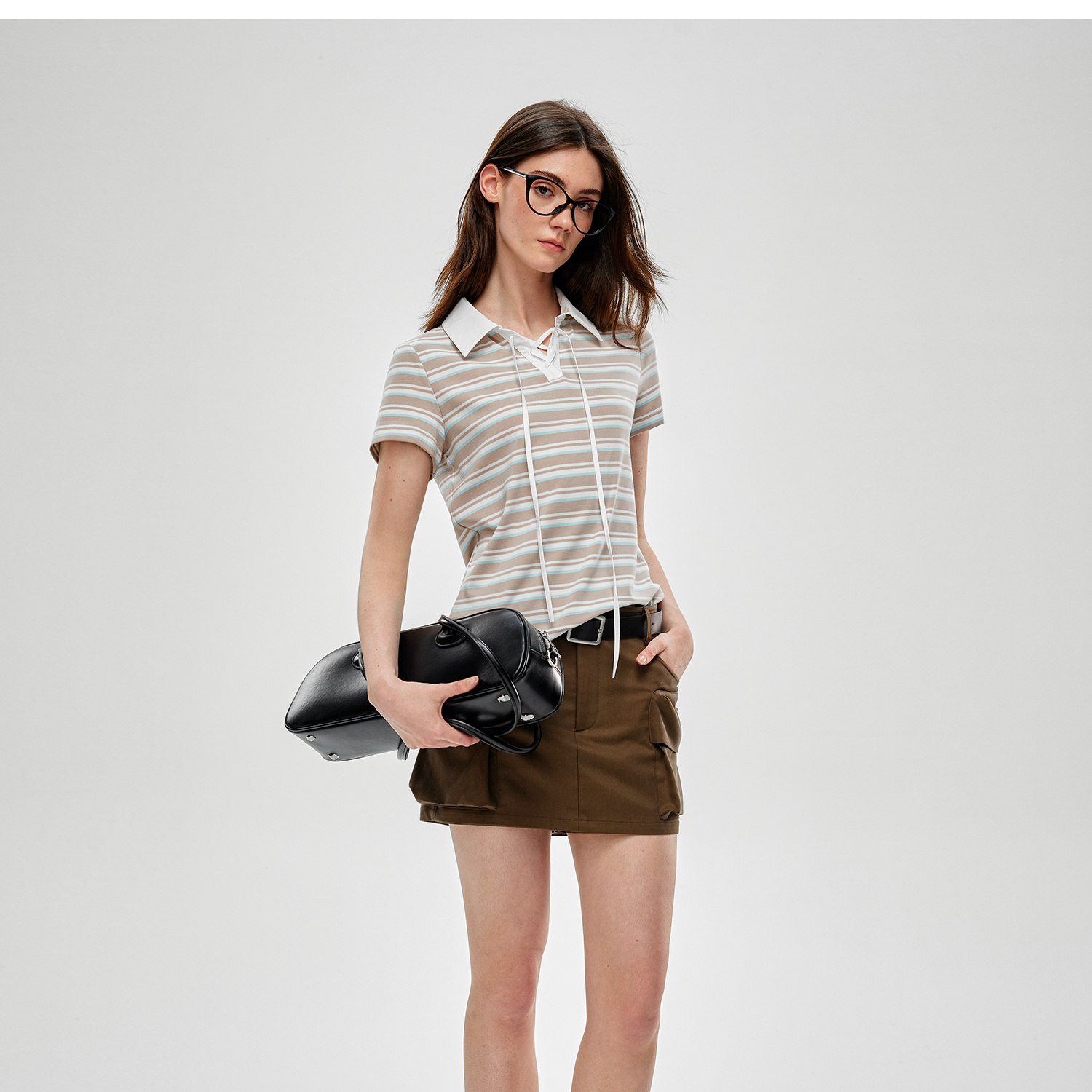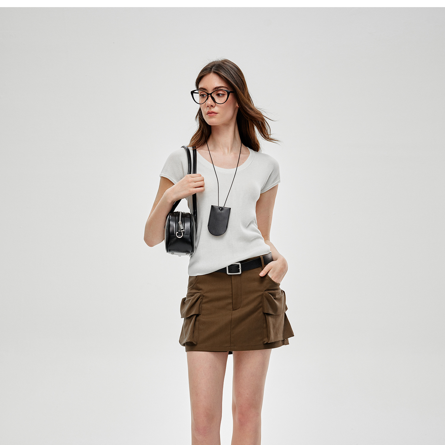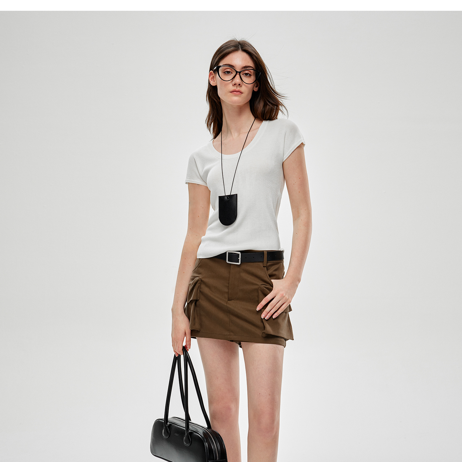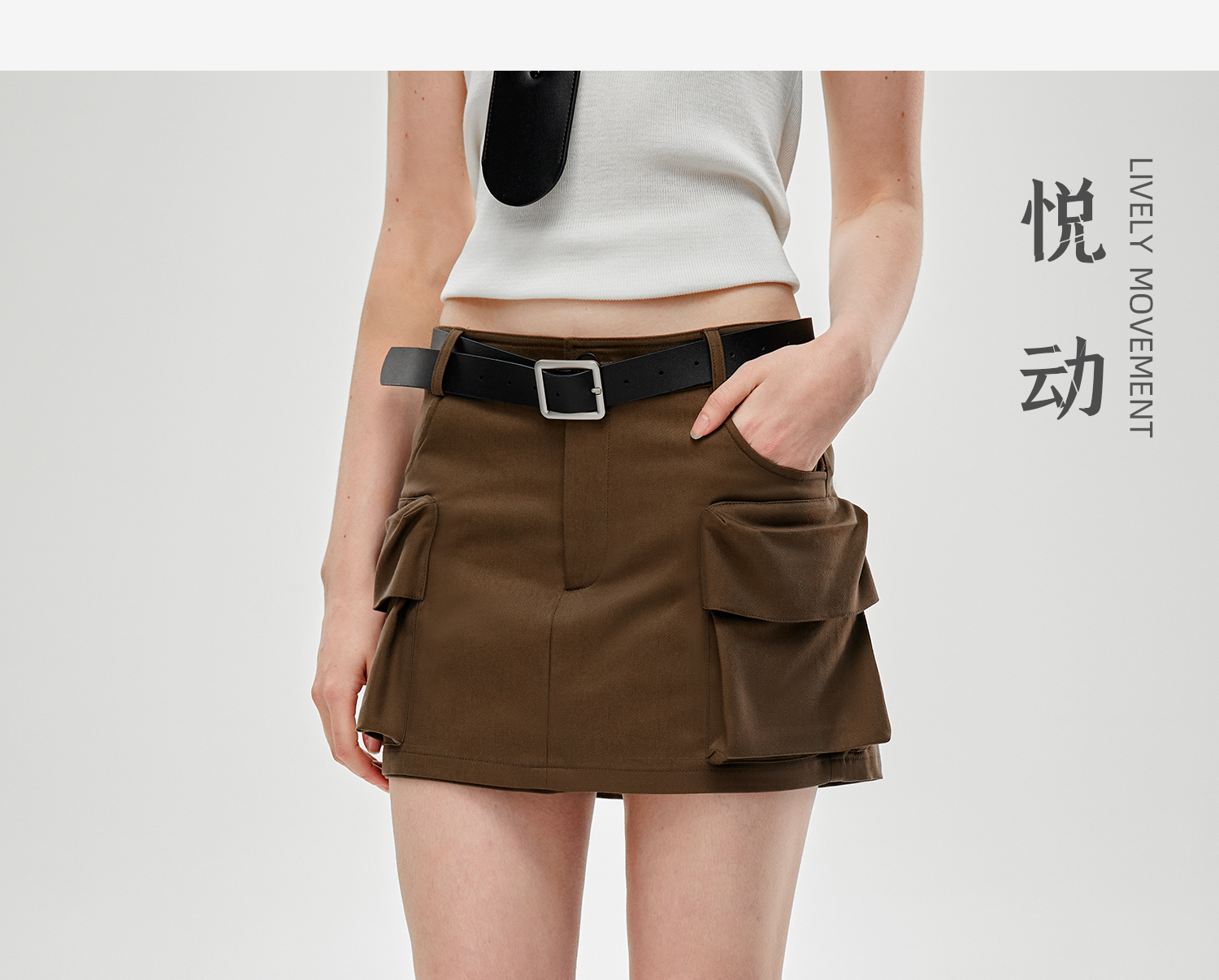 C+IMPRESS/西嘉水洗天丝棉 低腰裙裤女2025夏季挺阔工装口袋短裤KZ2502031