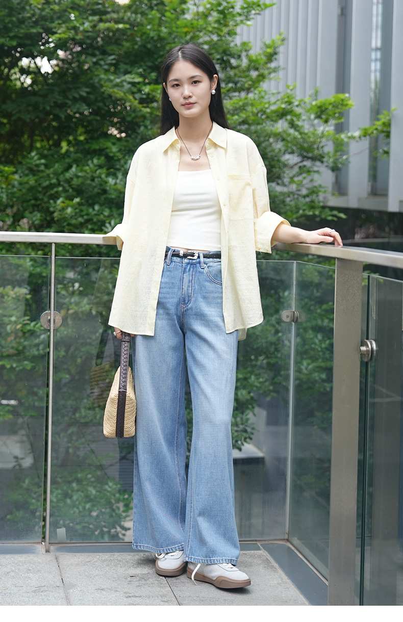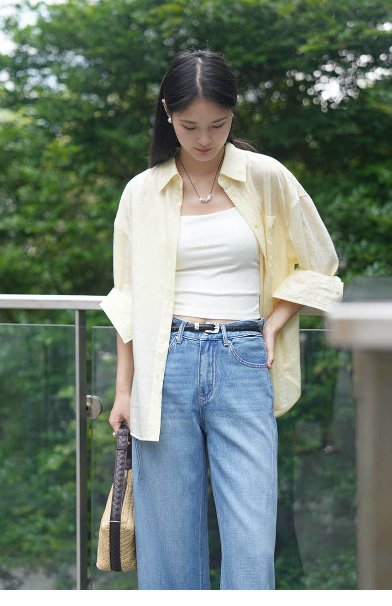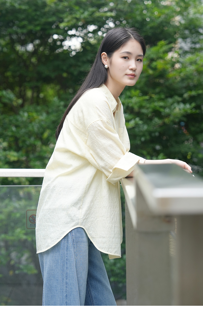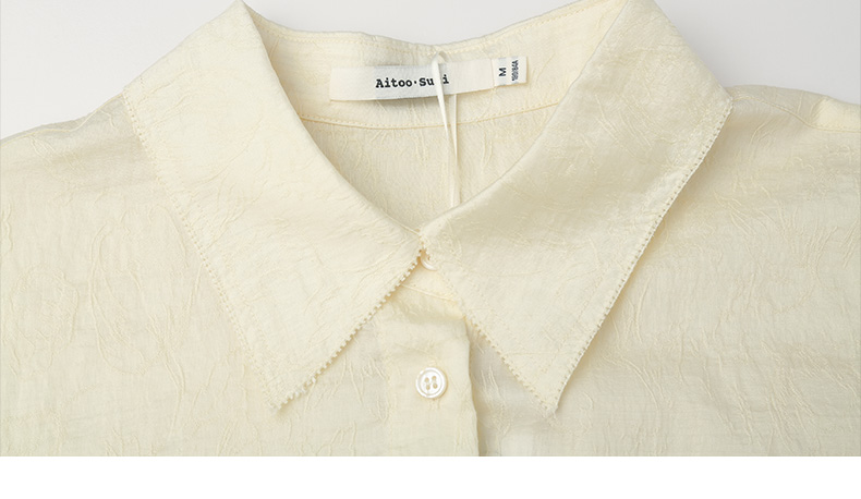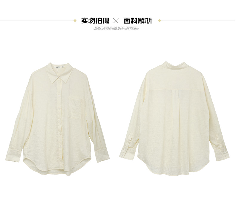 不费力的高级感!米白色翻领长袖天丝棉衬衫 夏季宽松慵懒风防晒衬衣