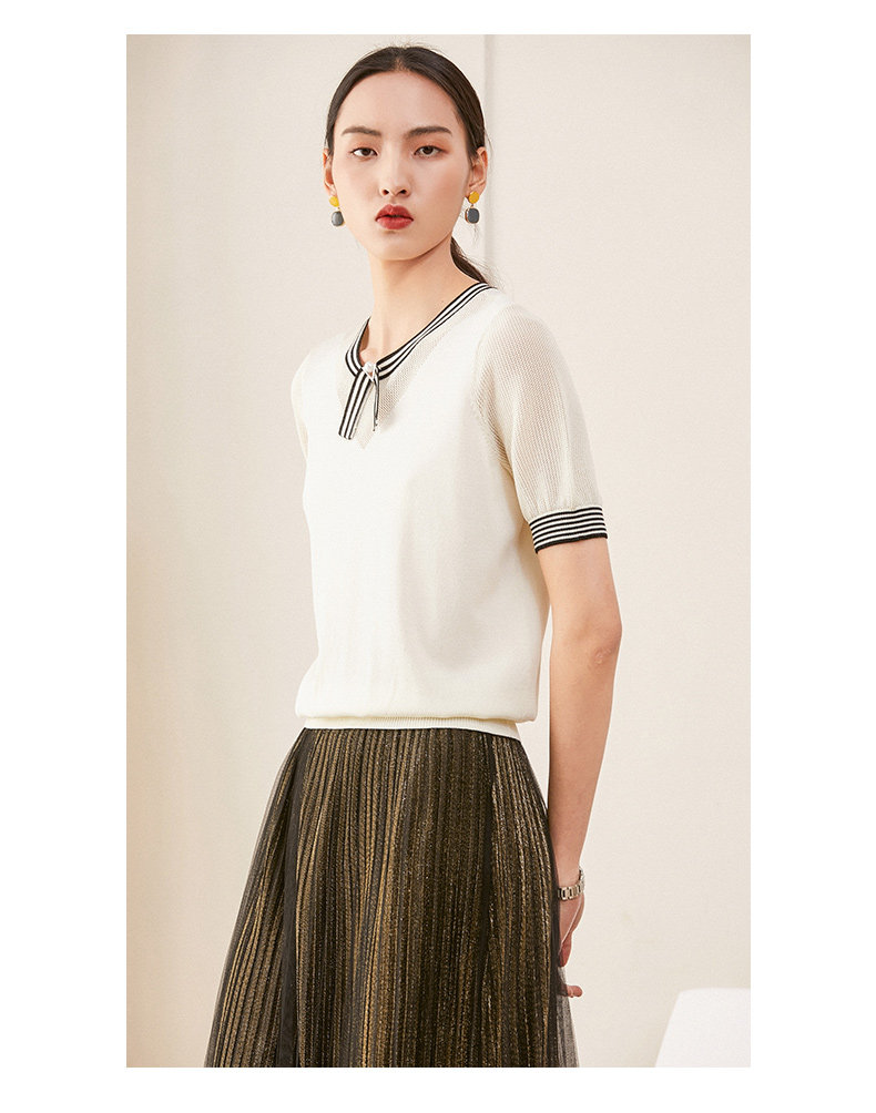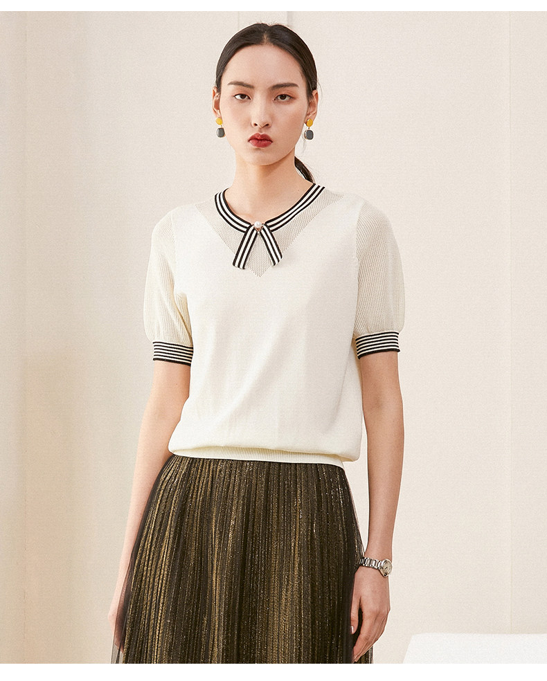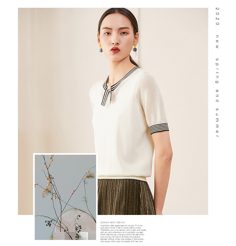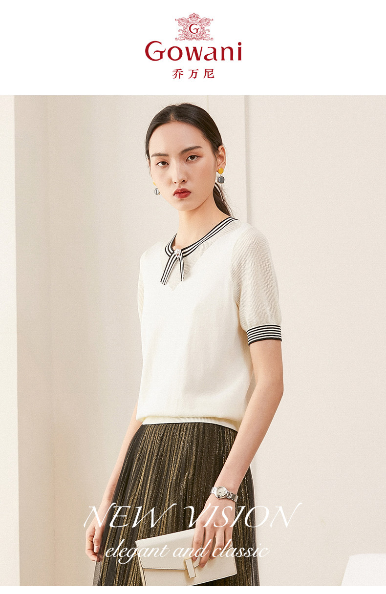 乔万尼夏新款针织衫女时尚气质宽松显瘦简约百搭短袖针织上衣ES2M226