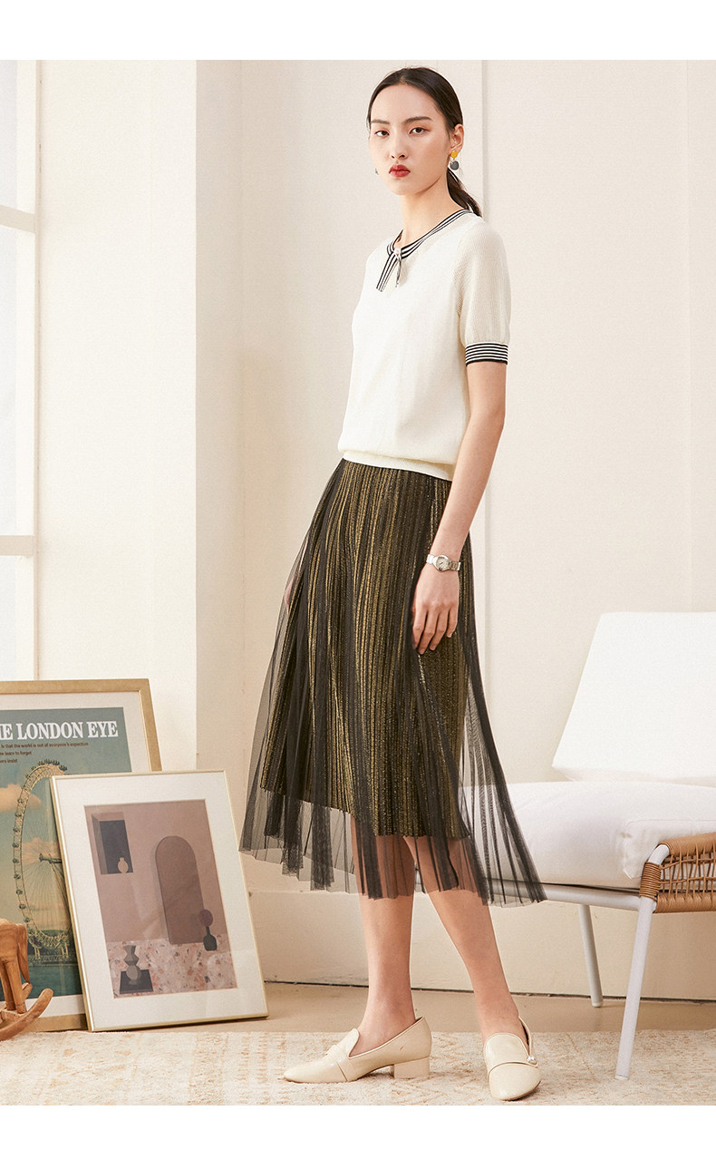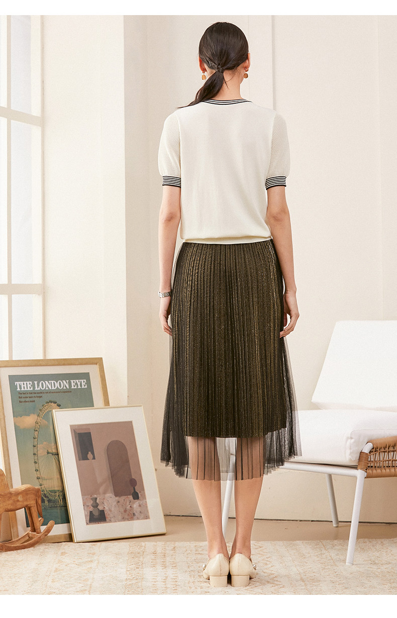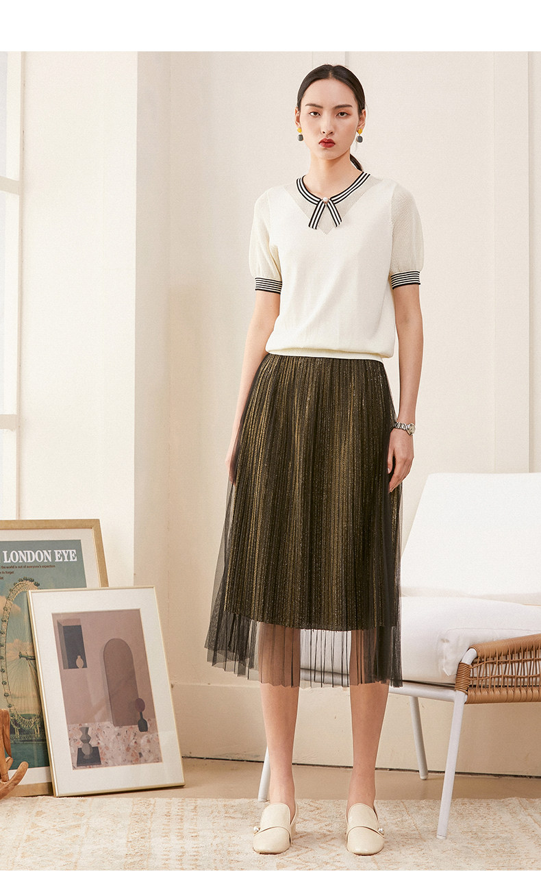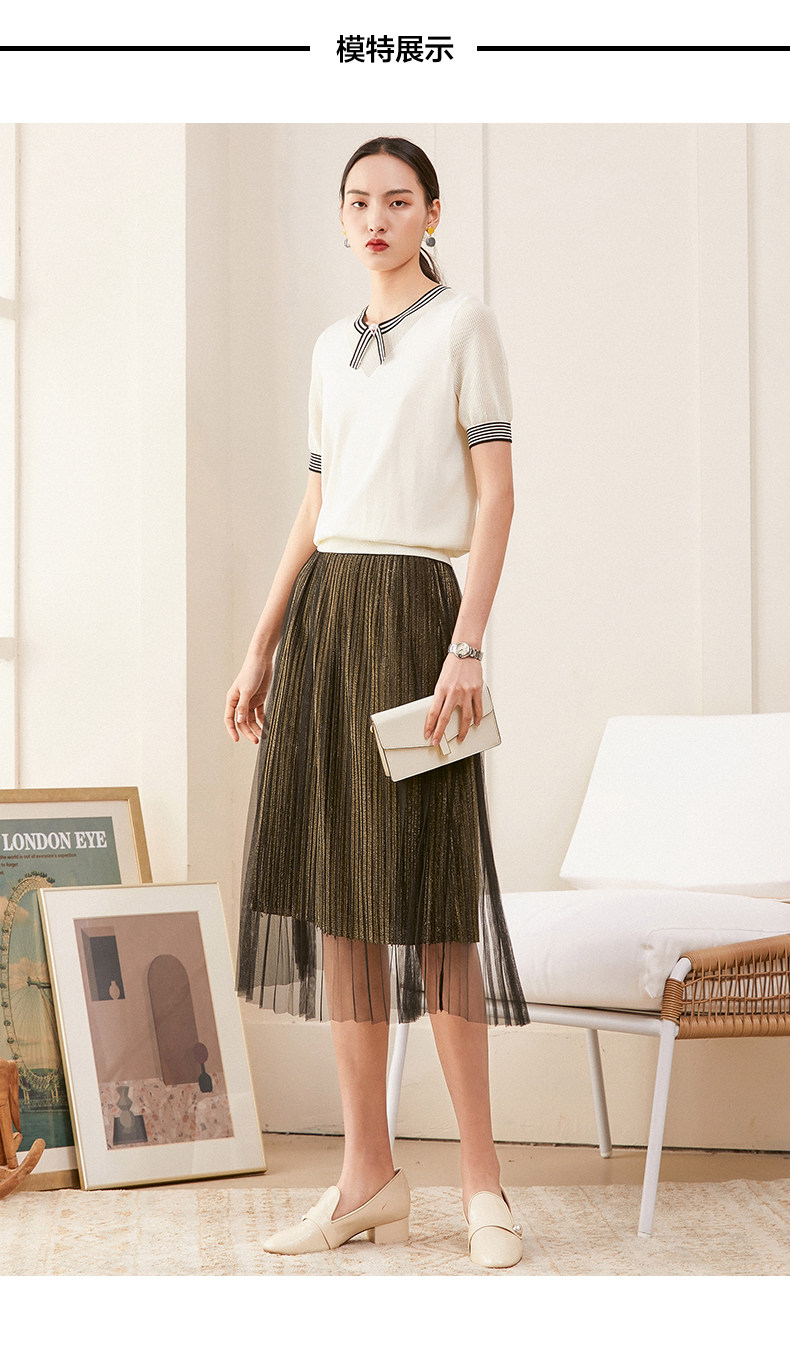 乔万尼夏新款针织衫女时尚气质宽松显瘦简约百搭短袖针织上衣ES2M226
