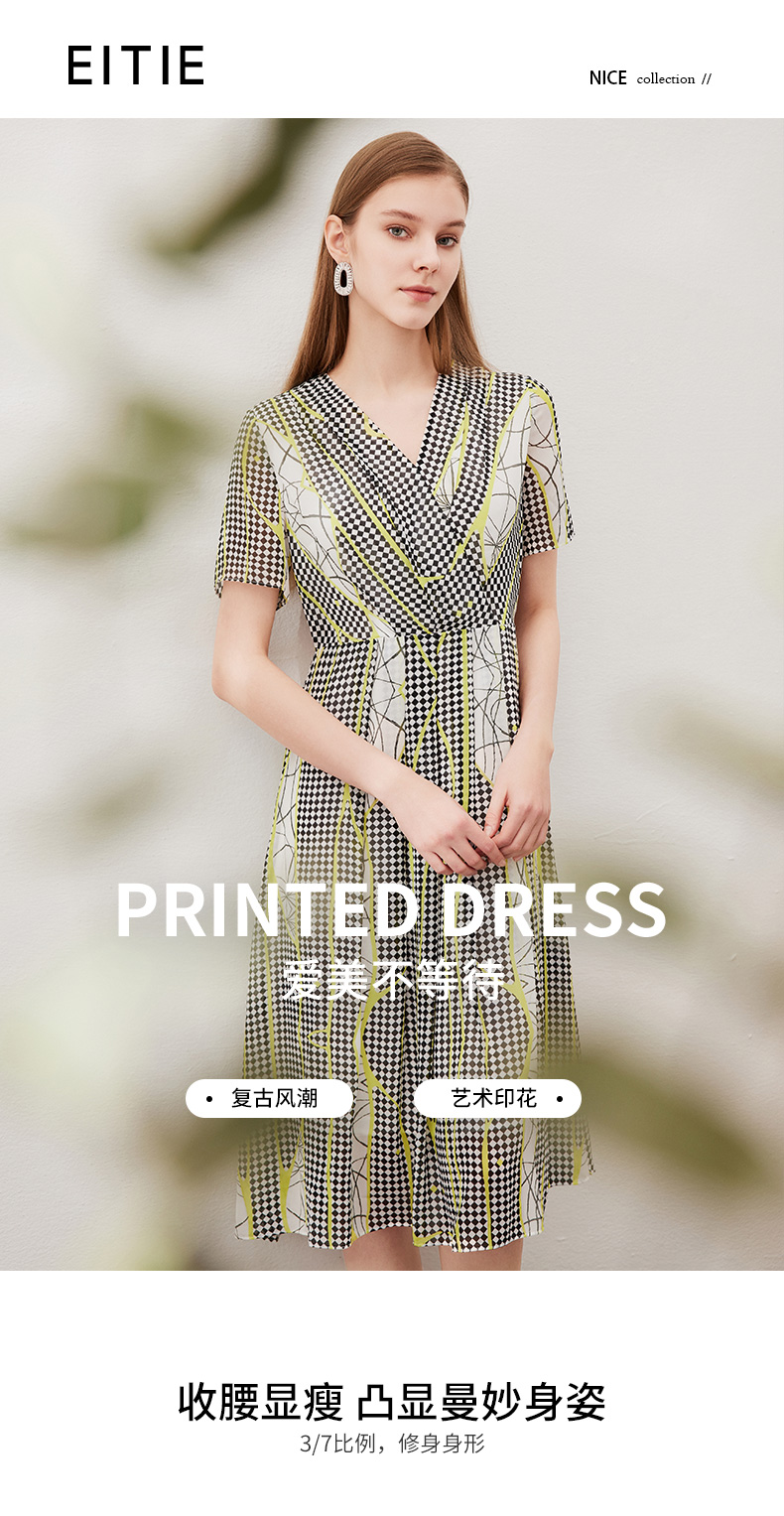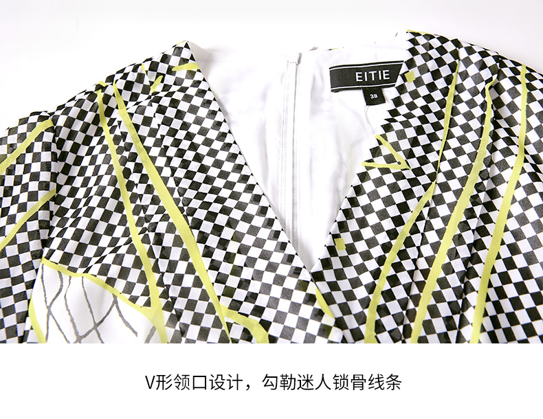 EITIE爱特爱女装早秋系领蕾丝镂空勾花喇叭袖大红连衣裙C1807150