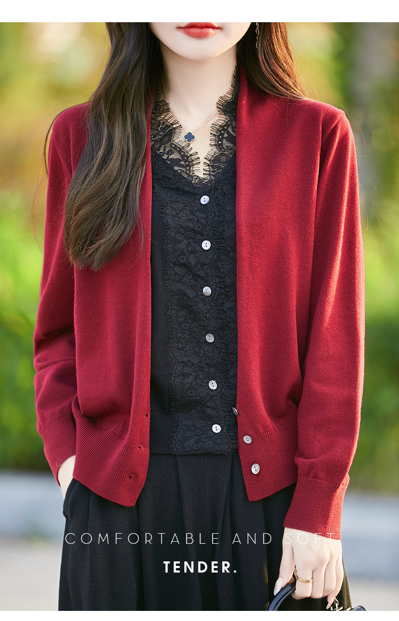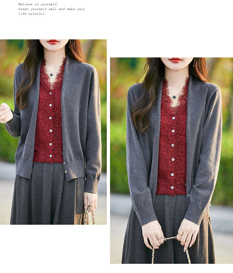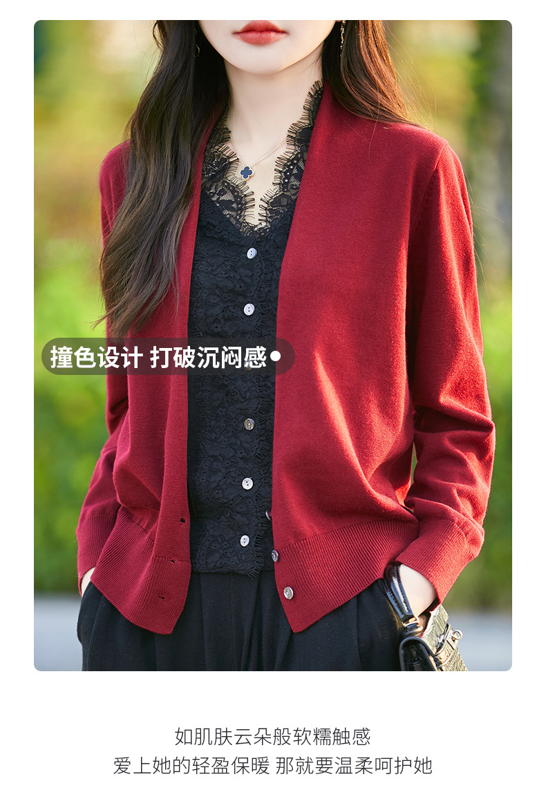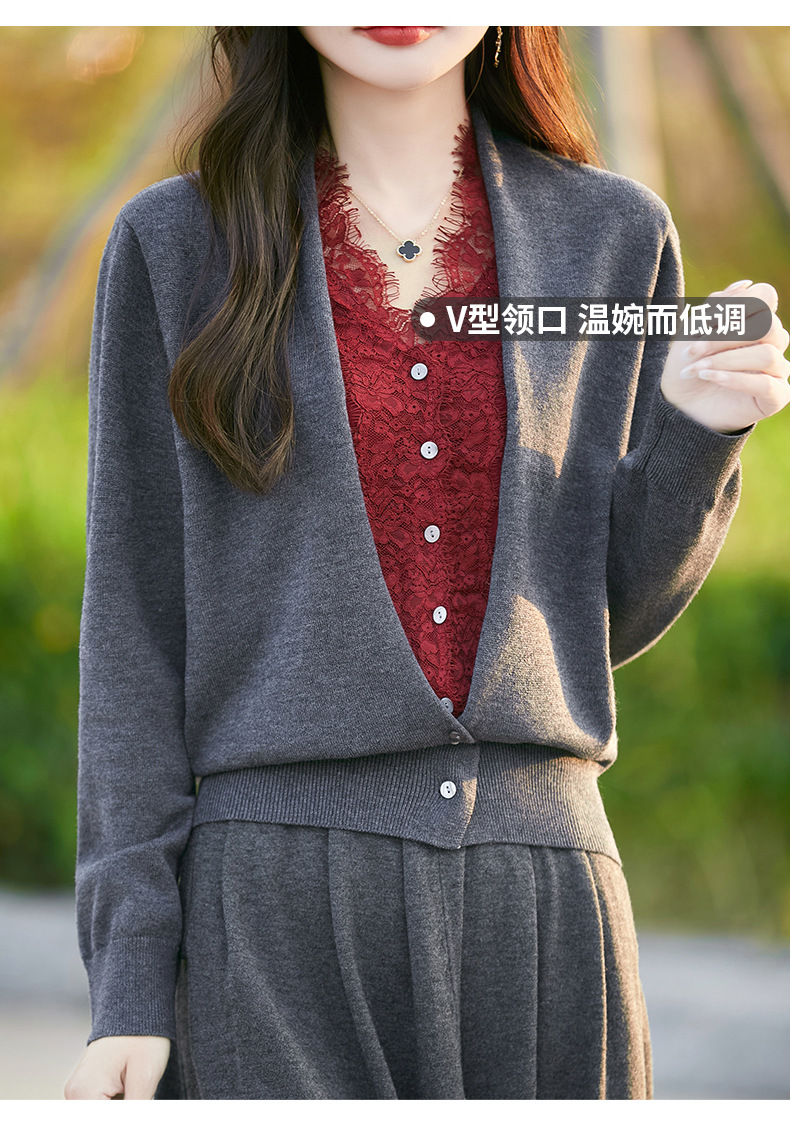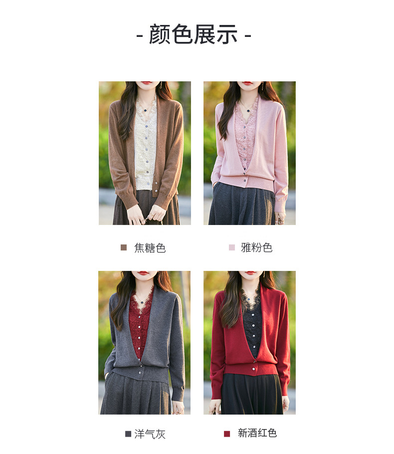 雀说蕾丝拼接假两件针织开衫女新款精纺羊毛长袖保暖打底毛衣上衣 ALWNS-3370-60