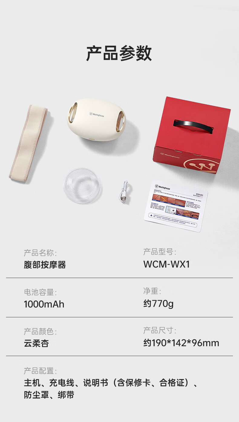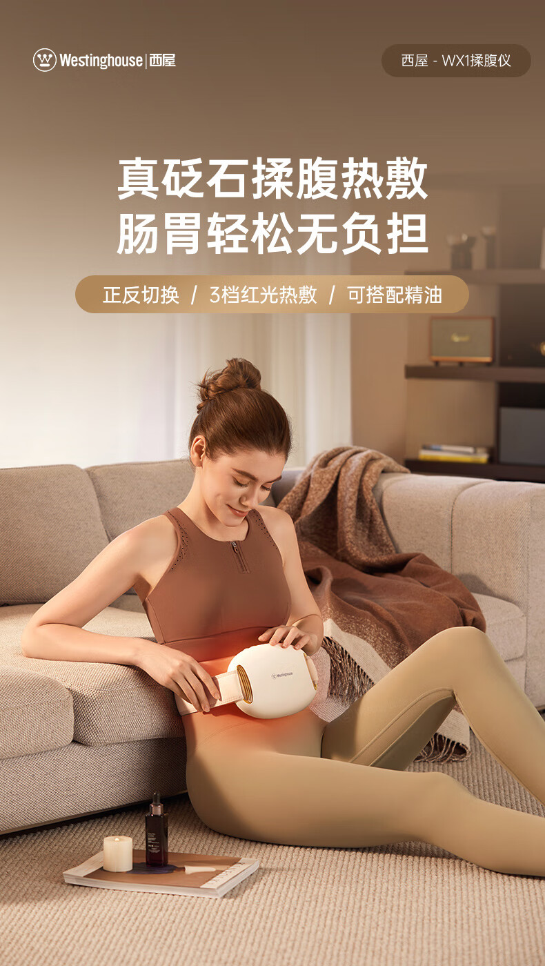 西屋腹部按摩器WCM-WX1 1.红光+砭石热敷,双效合一,舒适加倍