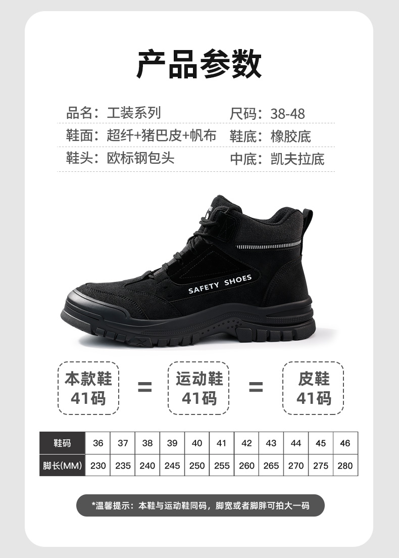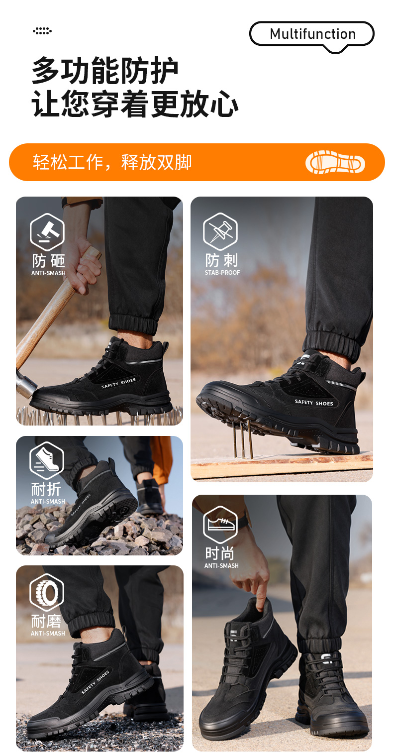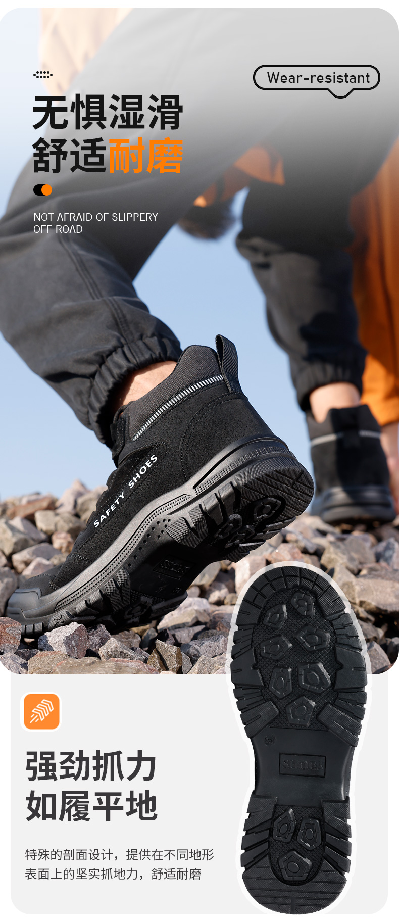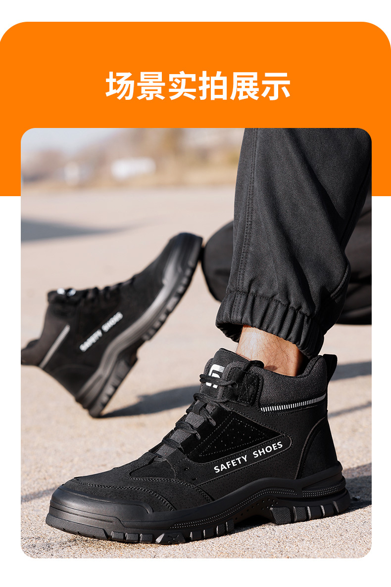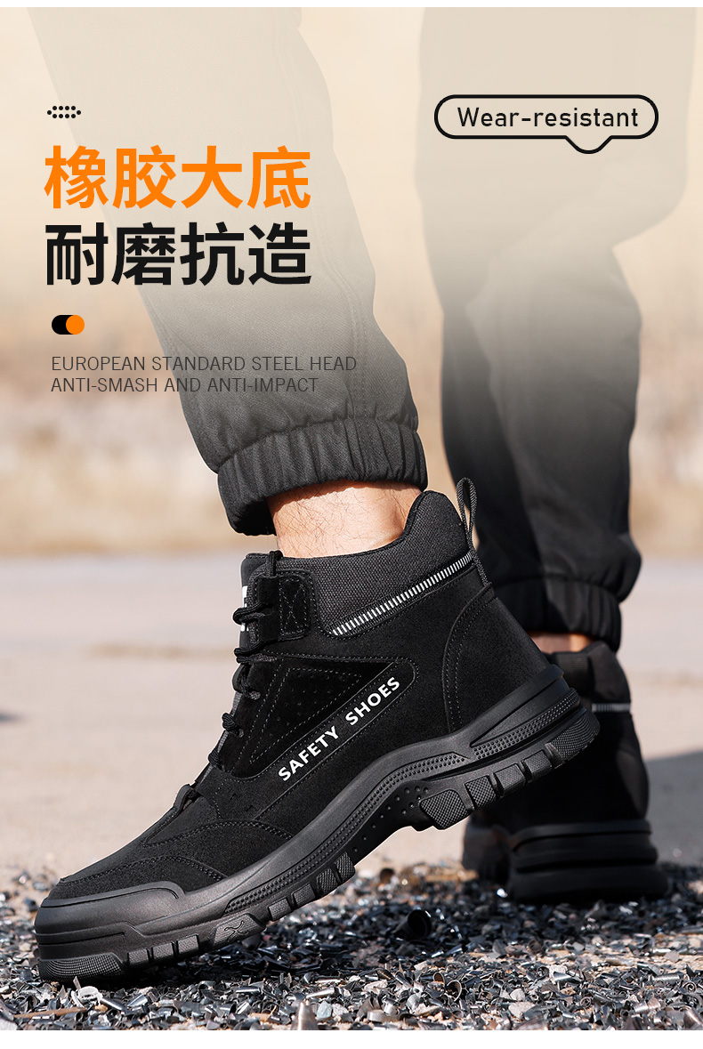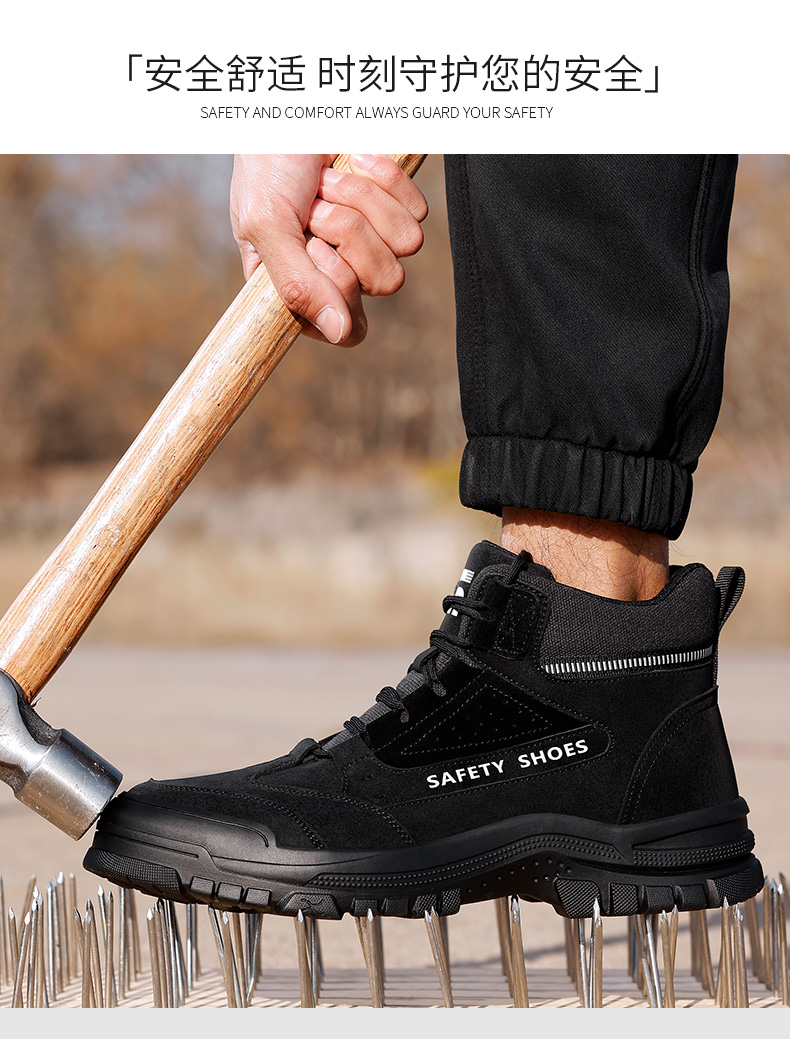 劳保鞋男防砸防刺安全鞋高帮四季款超纤橡胶底加宽钢头防护