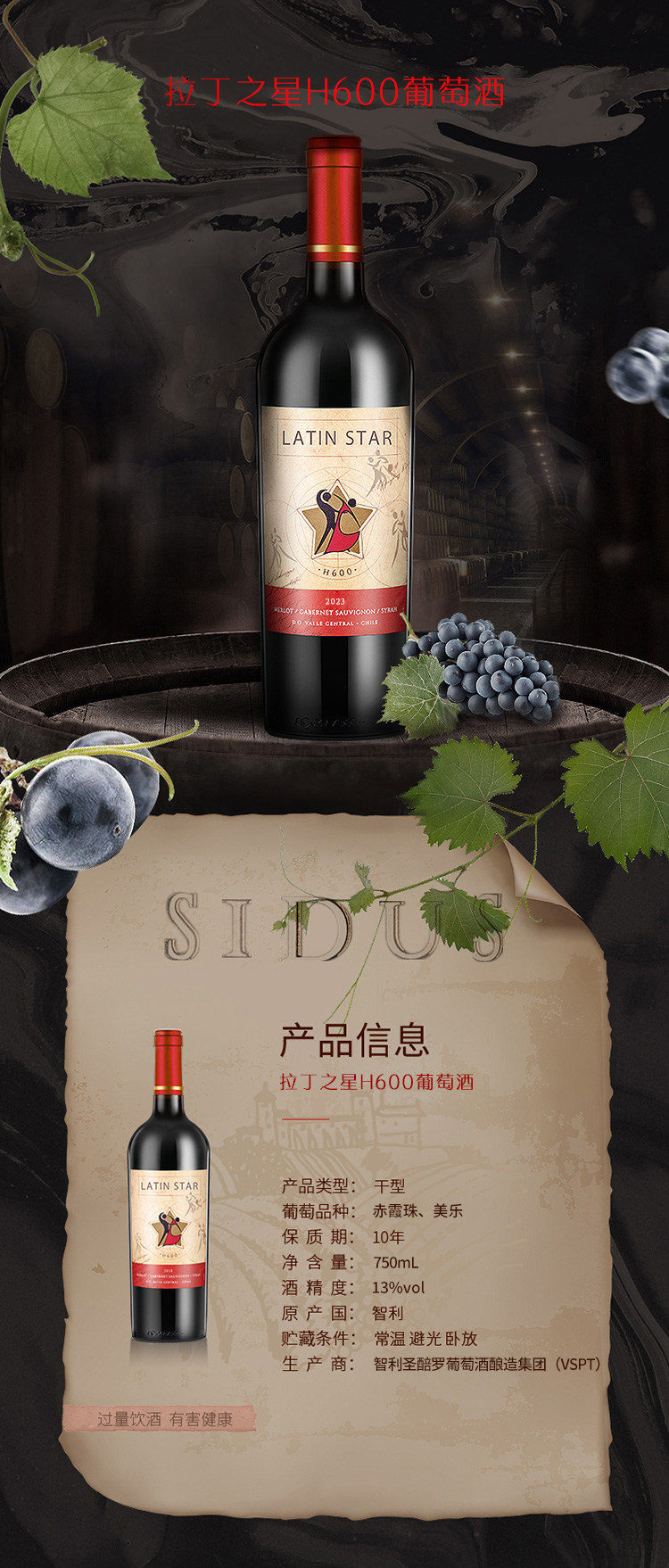 zp拉丁之星H600智利进口红葡萄酒750mL