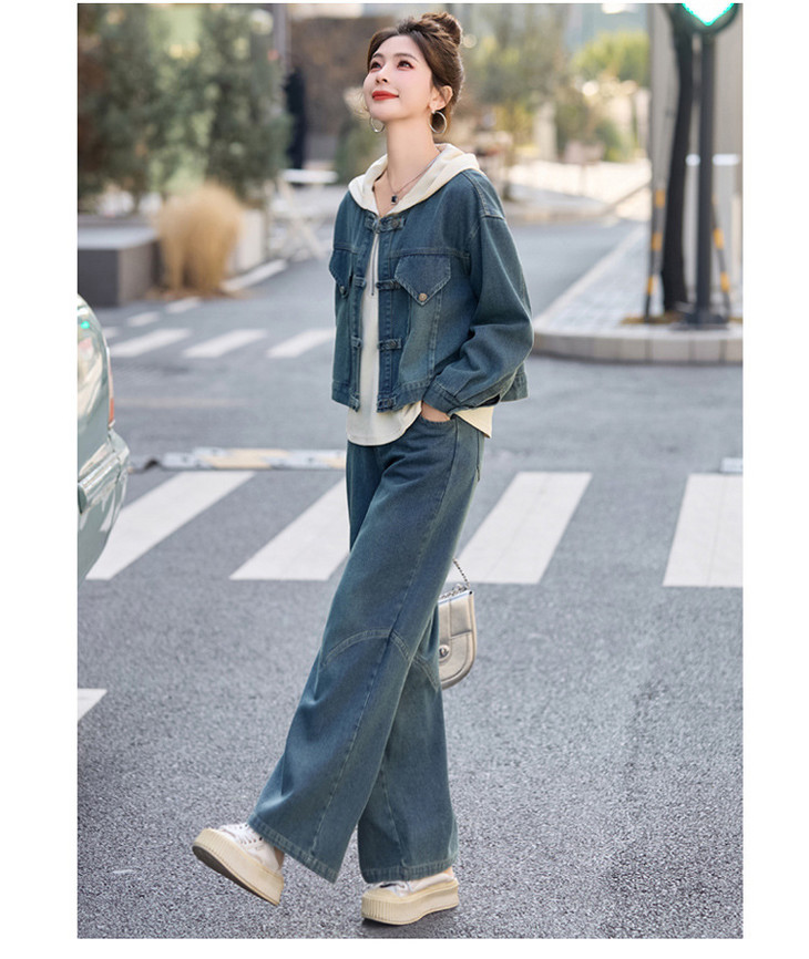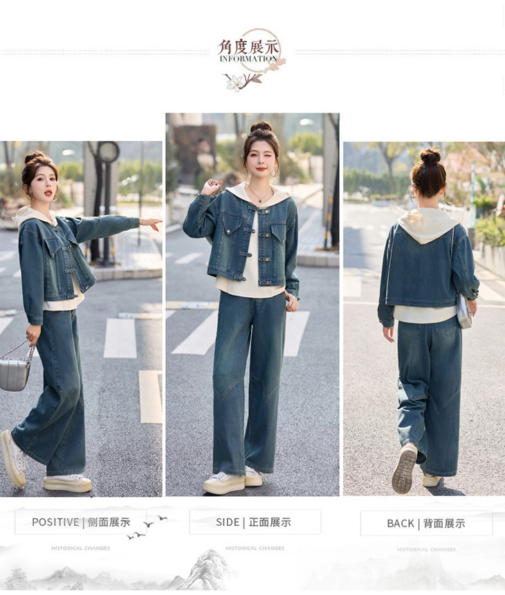 2024秋装新款韩版洋气显瘦减龄休闲连帽卫衣牛仔三件套时尚套装XPHG90