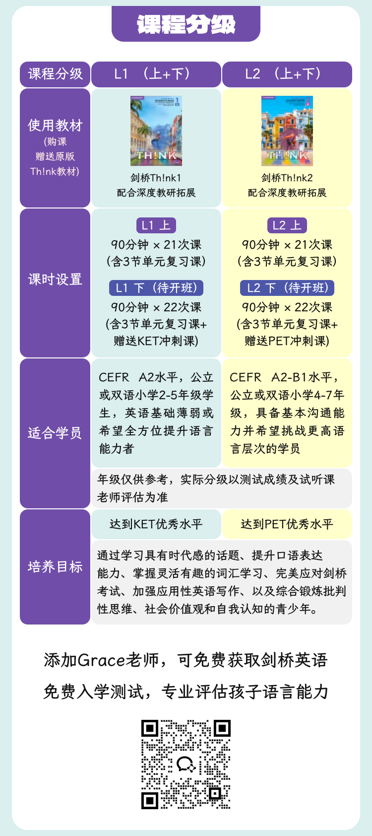 2025年 暑假班 小学剑桥Think英文语言能力课(连报优惠中!第1门课后,每报1门,立减500元,可与“超鸟价”同享)