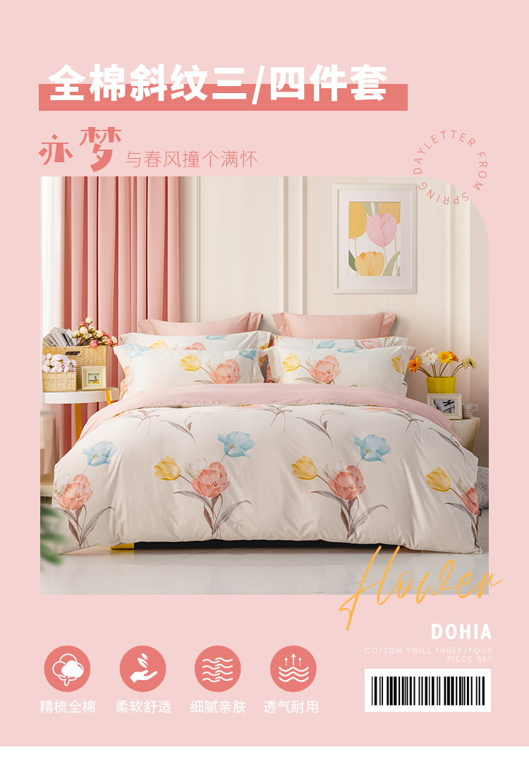 多喜爱 全精梳棉温馨花卉三/四件套 亦梦cs