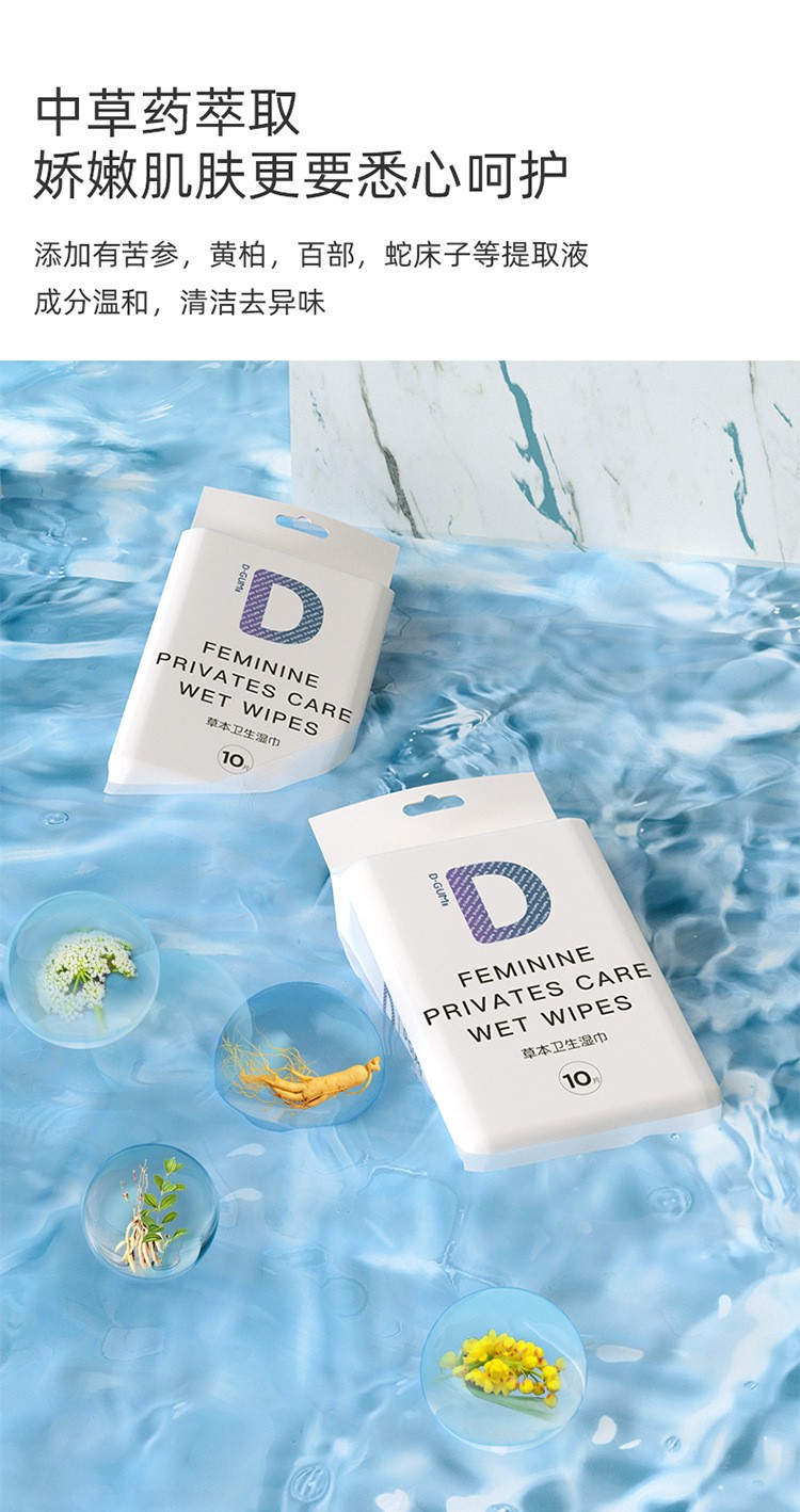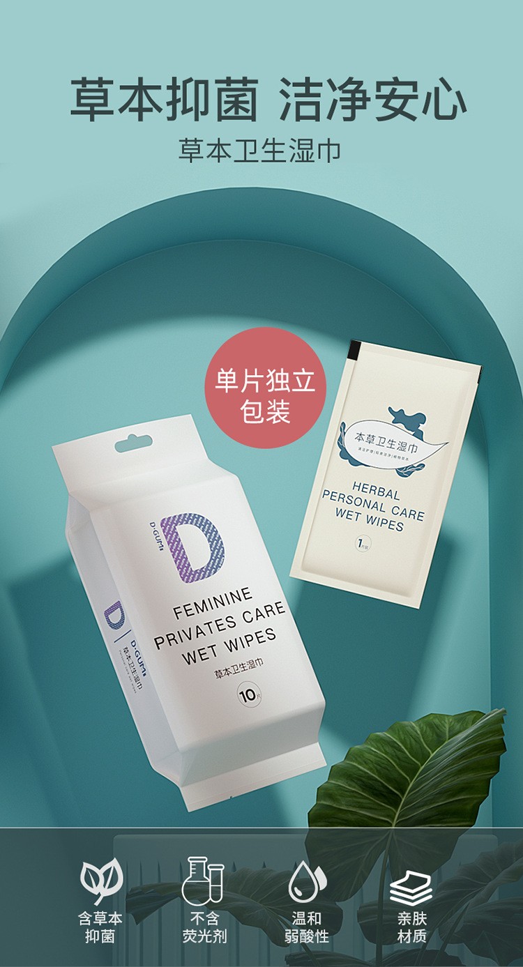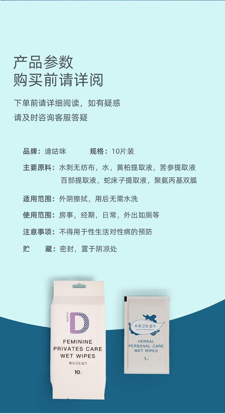 5包超值装!【迪咕咪卫生湿巾】女性私处清洁护理房事经期清洁抑jun单片独立装