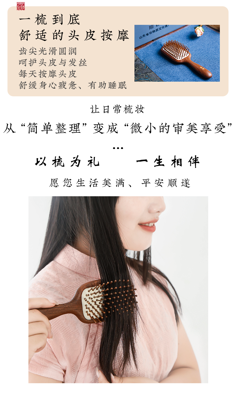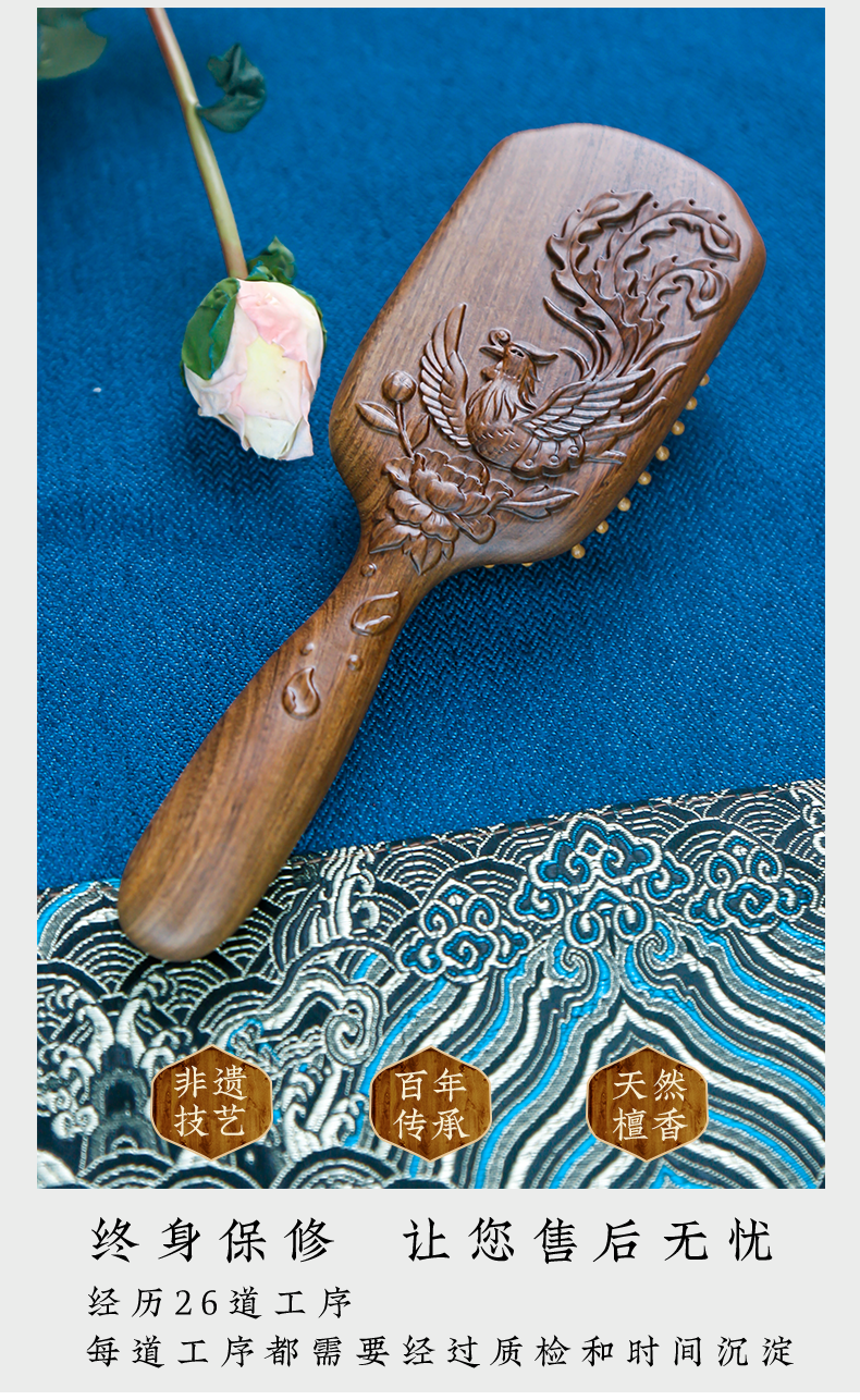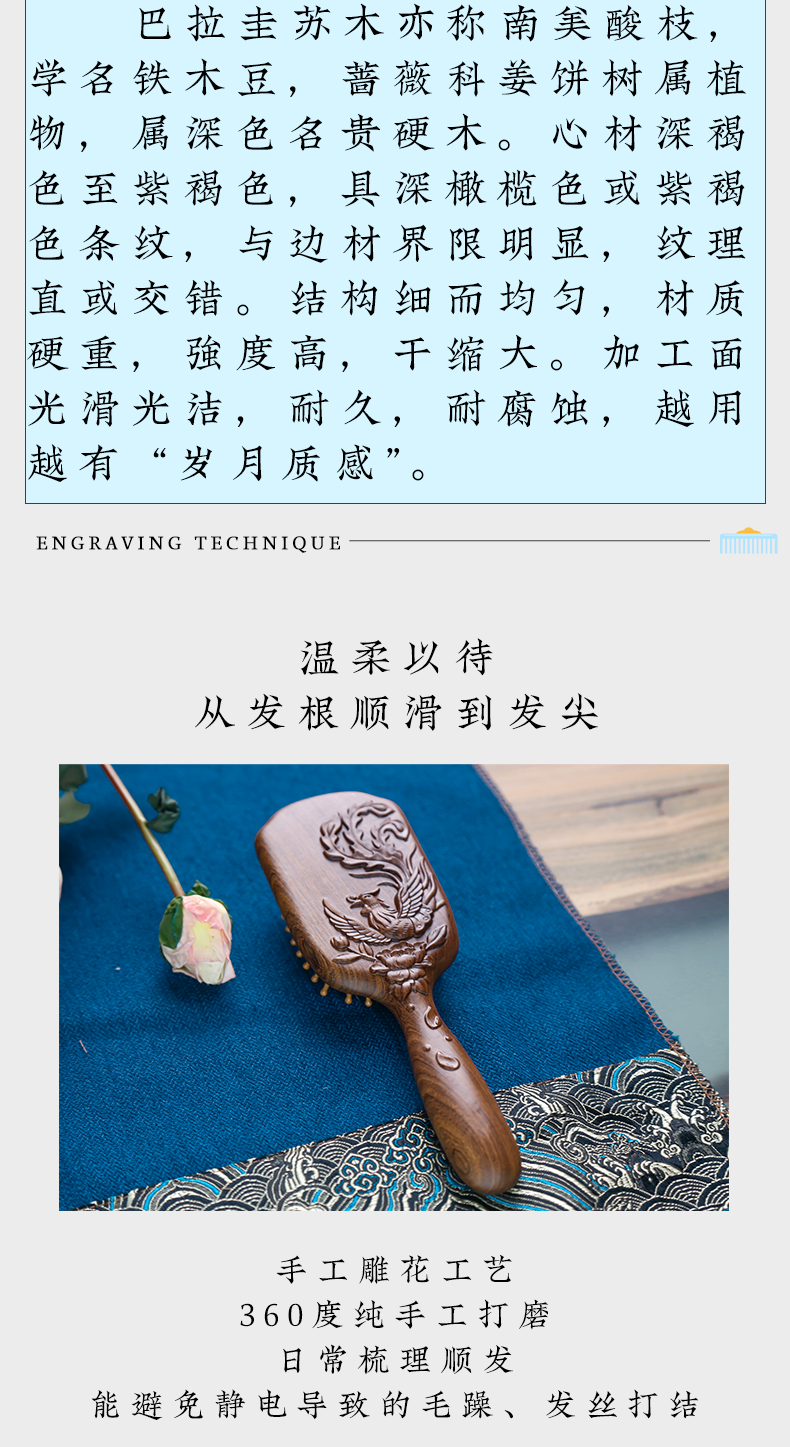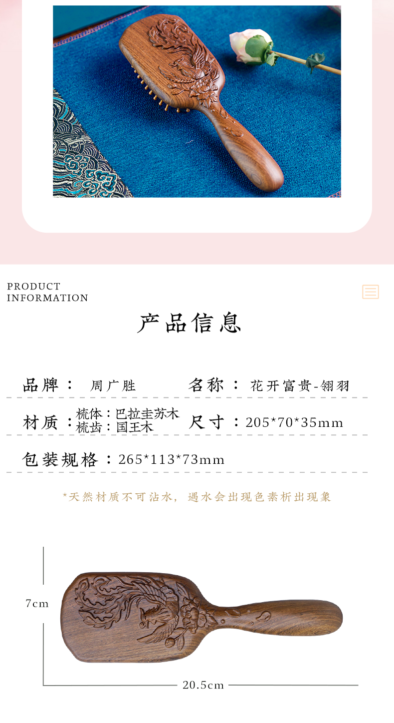 周广胜天然南美酸枝护发梳礼盒翎羽气垫长发按摩梳节日礼品头皮按摩蓬松