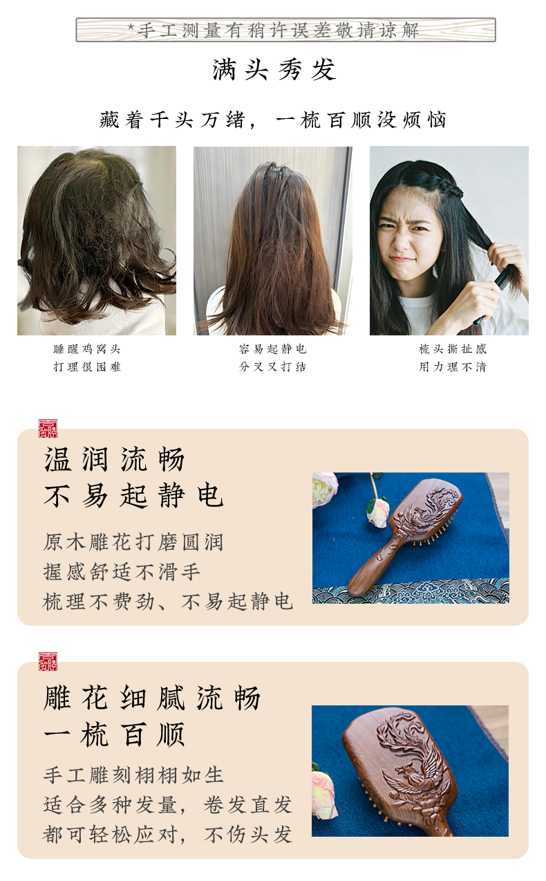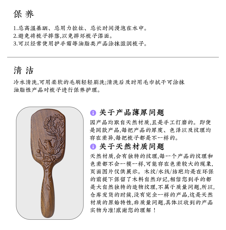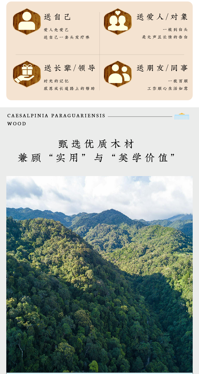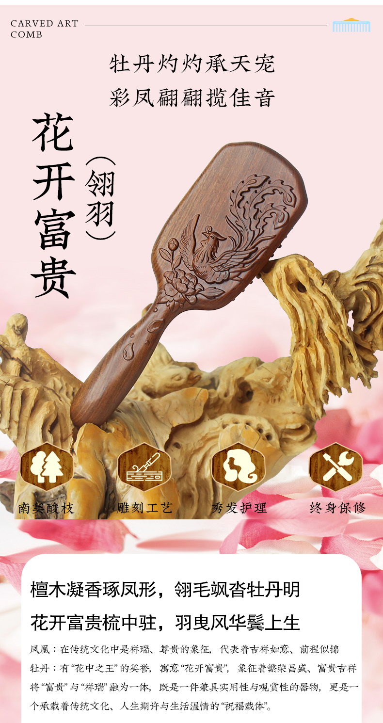 周广胜天然南美酸枝护发梳礼盒翎羽气垫长发按摩梳节日礼品头皮按摩蓬松