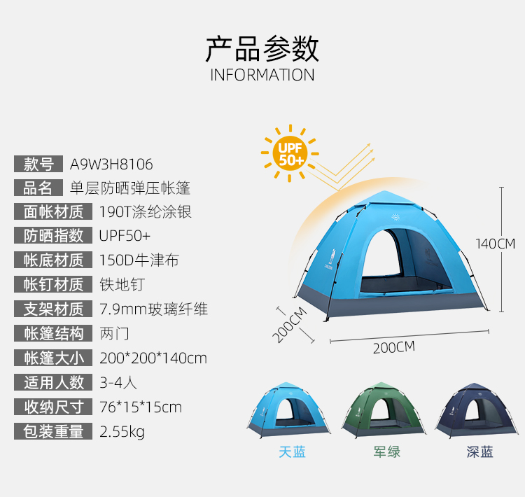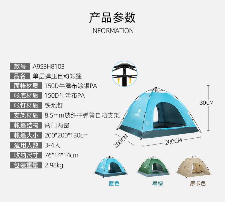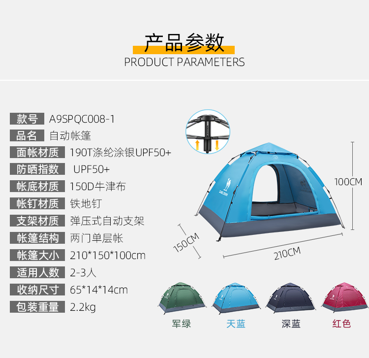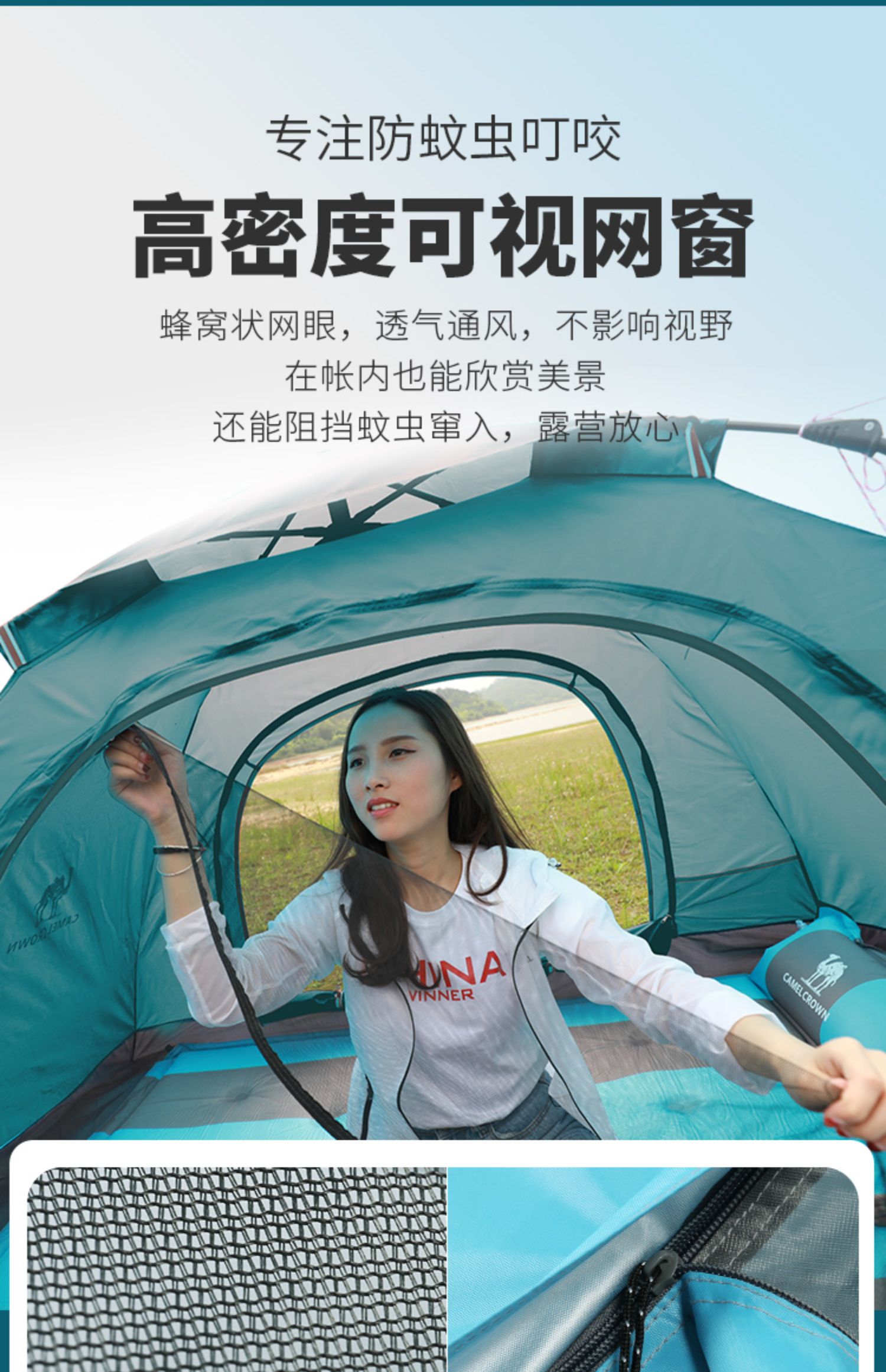 骆驼户外帐篷 2人野外全自动弹开露营野营加厚装备单双人郊游帐蓬 A9W3H8110