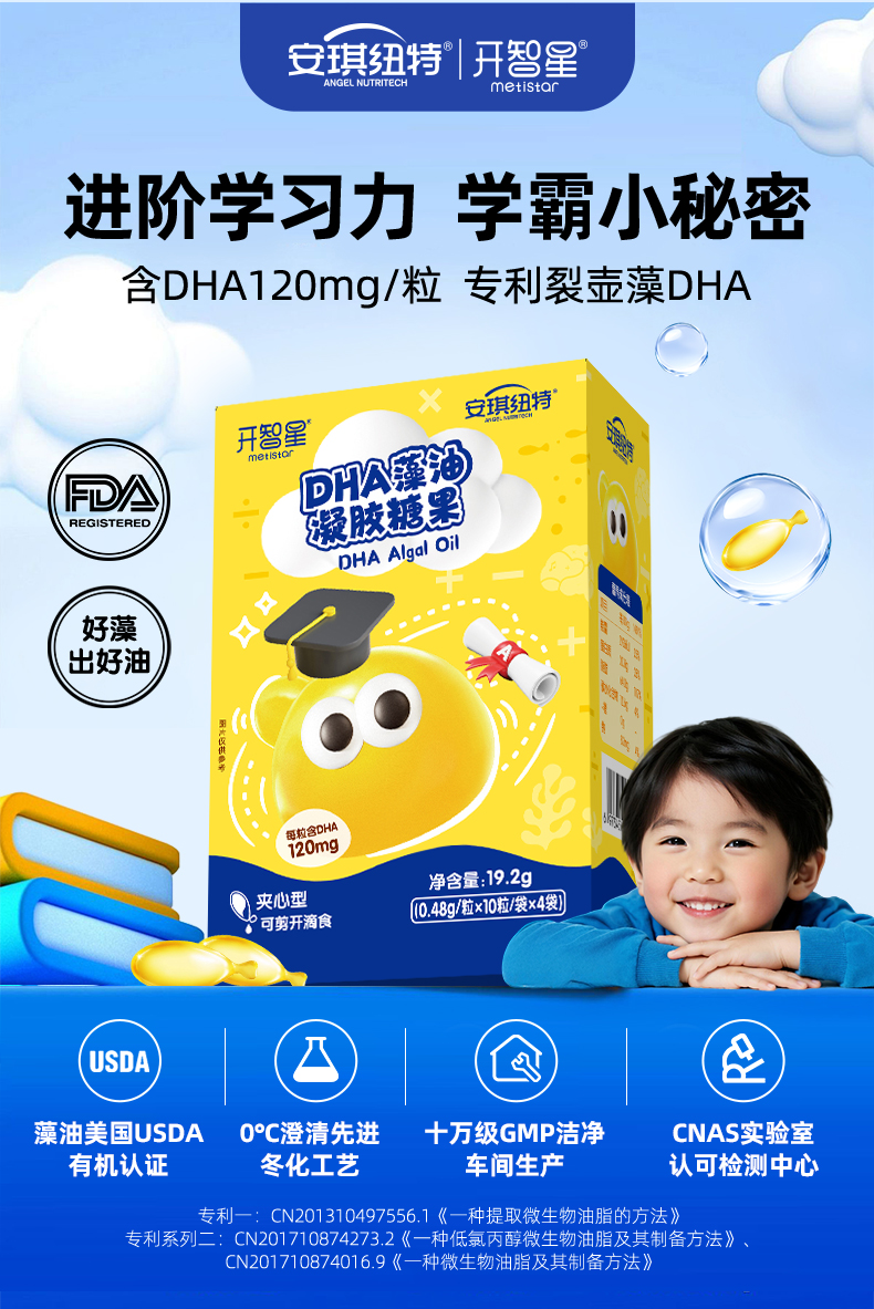 点赞优生活-开智星DHA藻油凝胶糖果0.48g*10粒*4板/盒