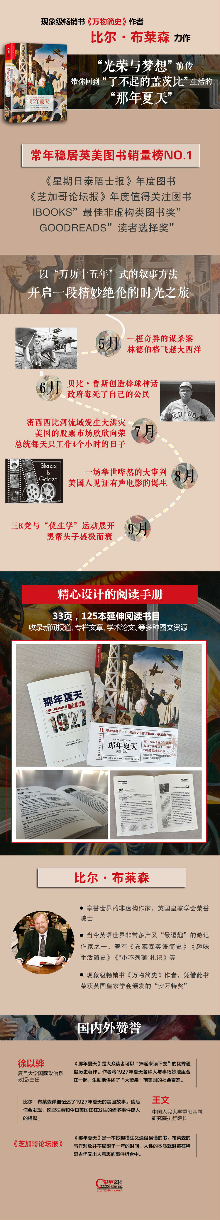 这是一场精彩纷呈的时间之旅,既有爵士时代的丑闻,也有棒球时代的英雄……布莱森让你在1927年夏天的漫漫旅程中得到心灵的疗愈……一旦全书进入尾声,你将发现他对美国历史的批判力度超过了之前的所有预想。