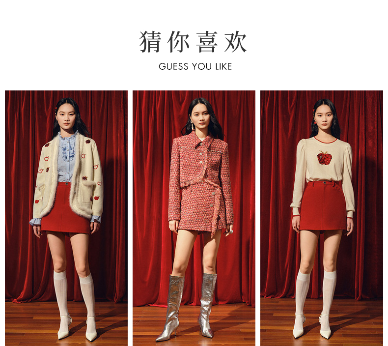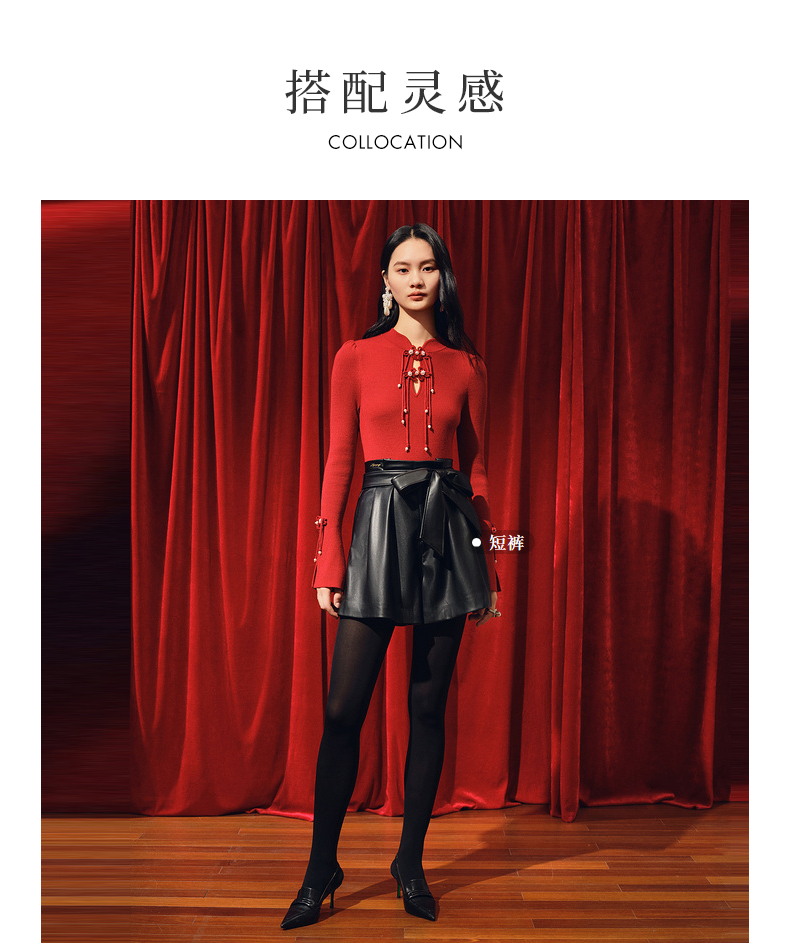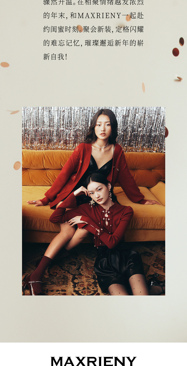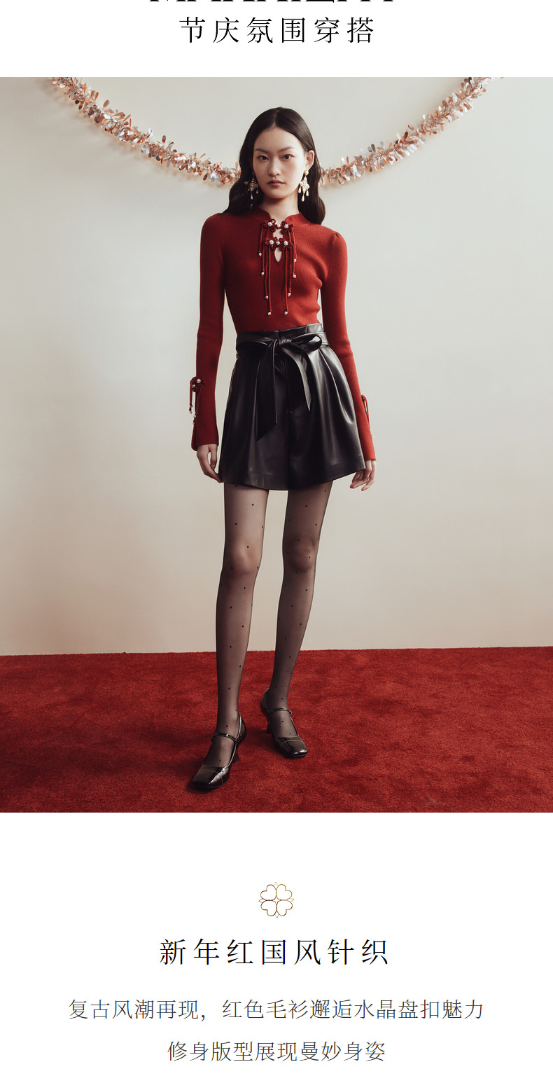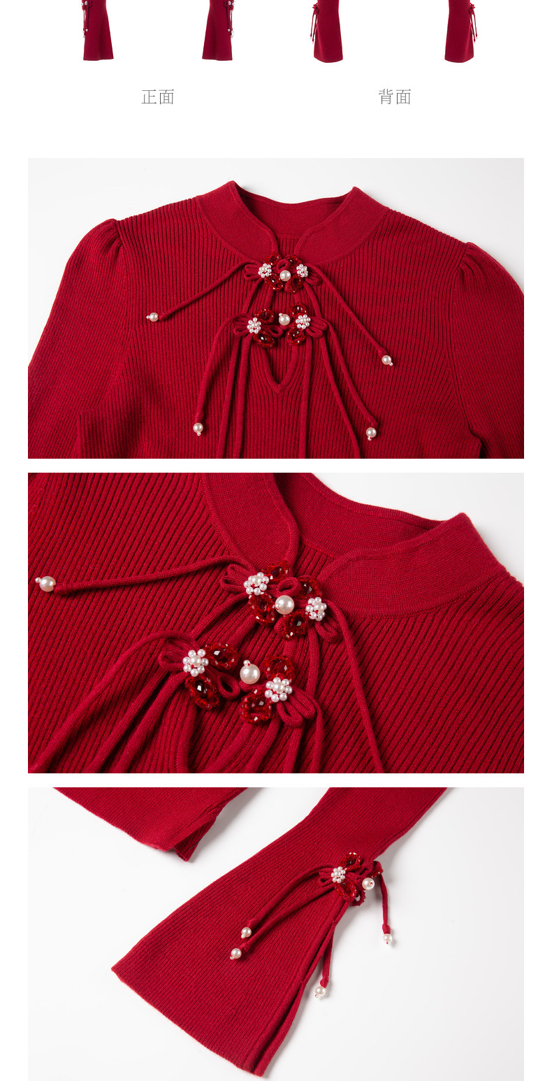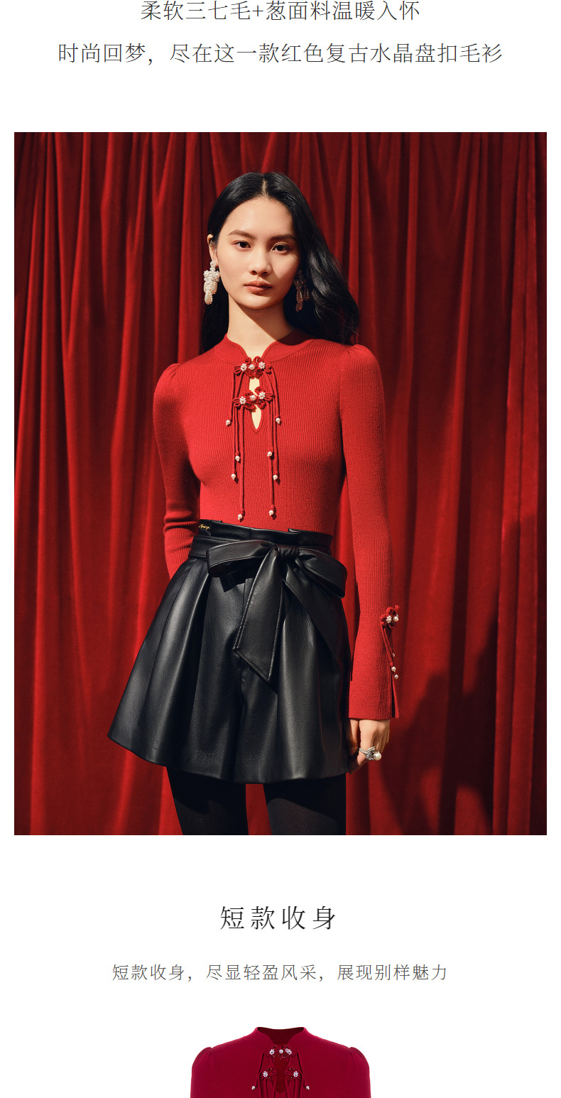 玛克门店发货:MAXRIENY新年红国风针织复古水晶扣套头毛衫修身上衣(货号:MC88SW820)
