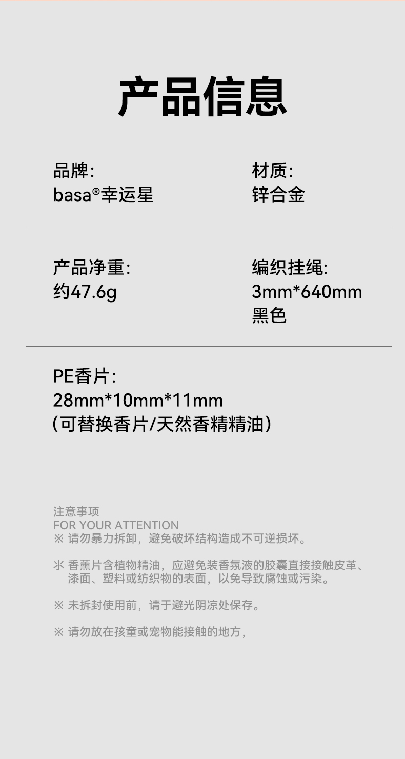 basa幸运星汽车挂件2024年新款车内挂饰品高级感持久留香车载香薰AC1