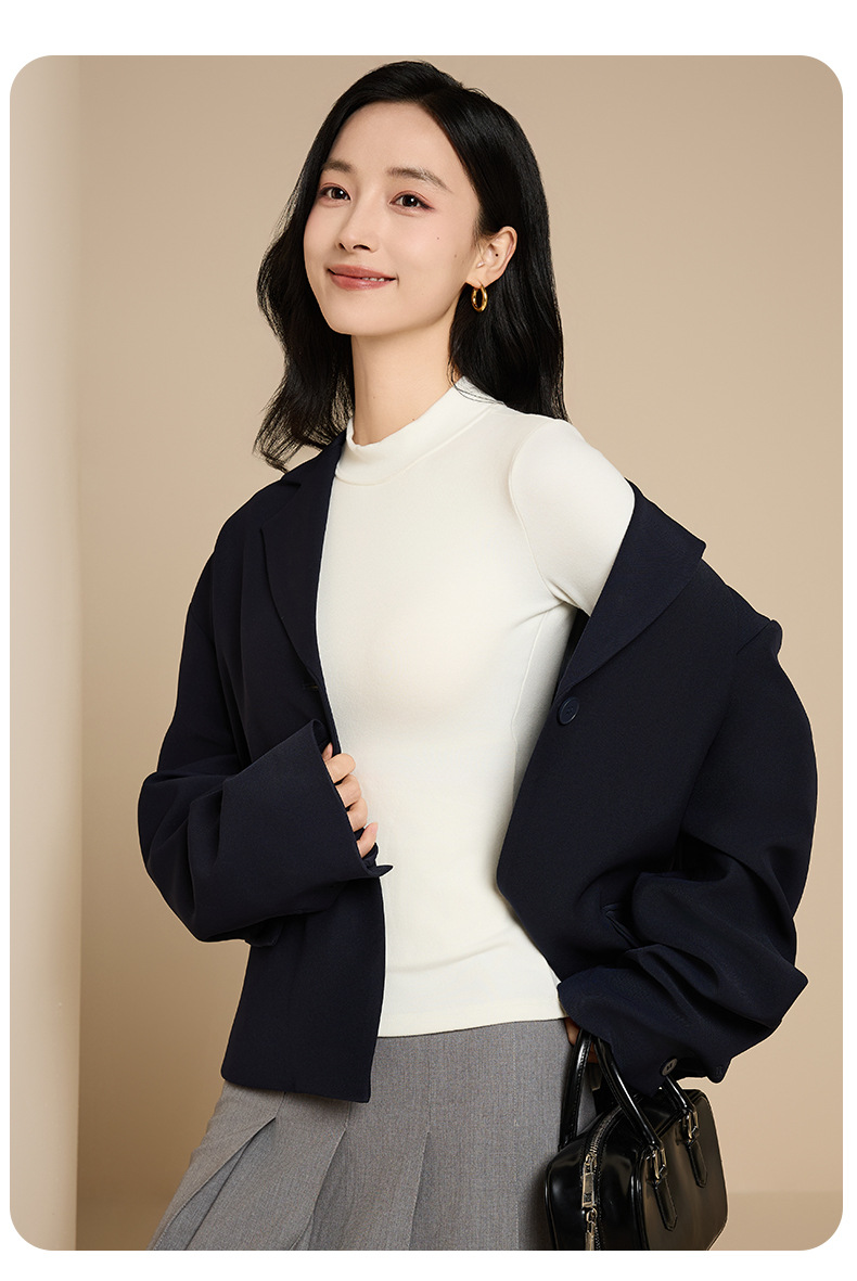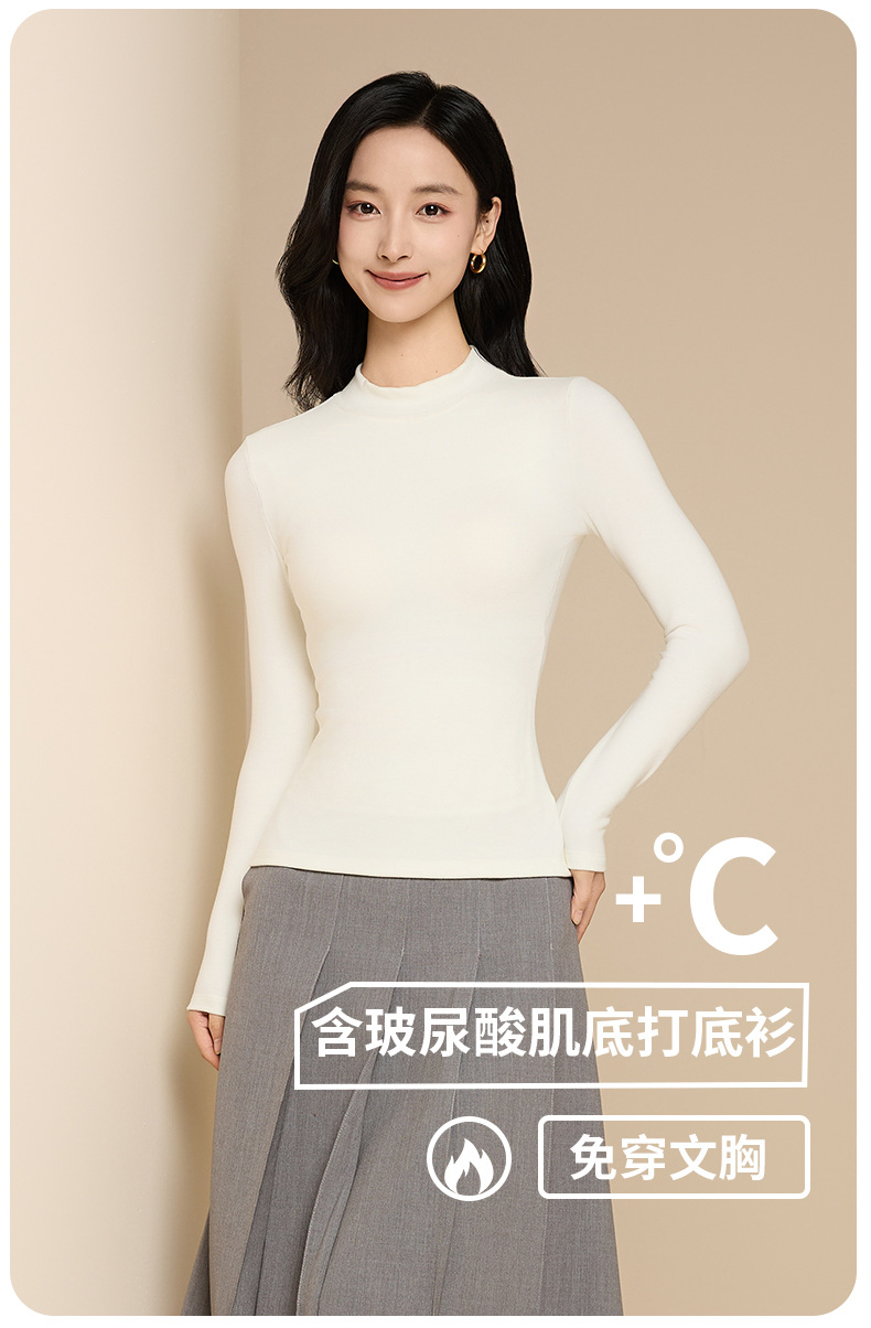 「自」全新升级【铂金会员128/天猫169/差价41】(01633)洛诗琳带胸垫德绒半高领打底衫2025秋冬长袖显瘦保暖上衣