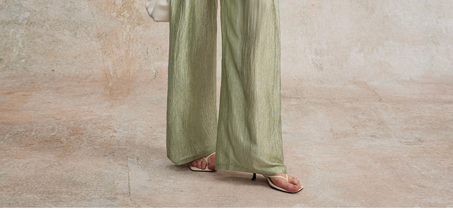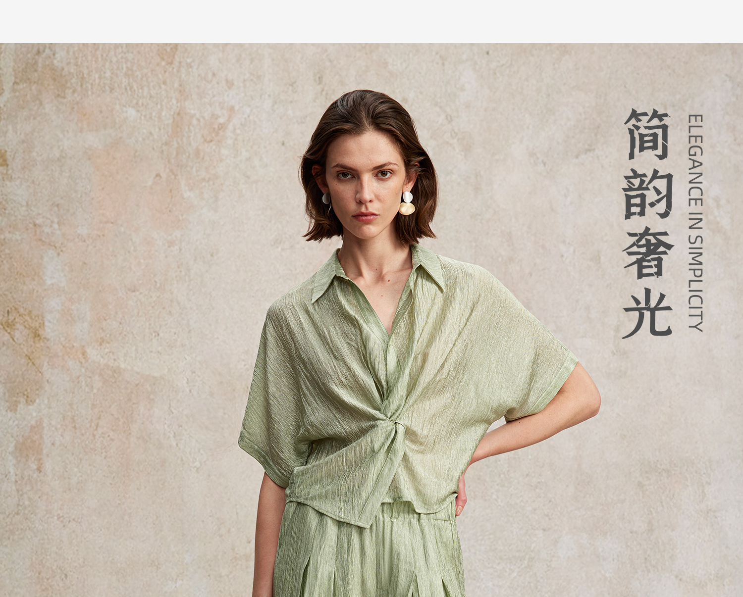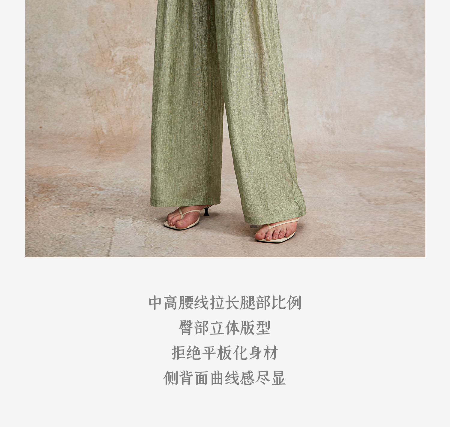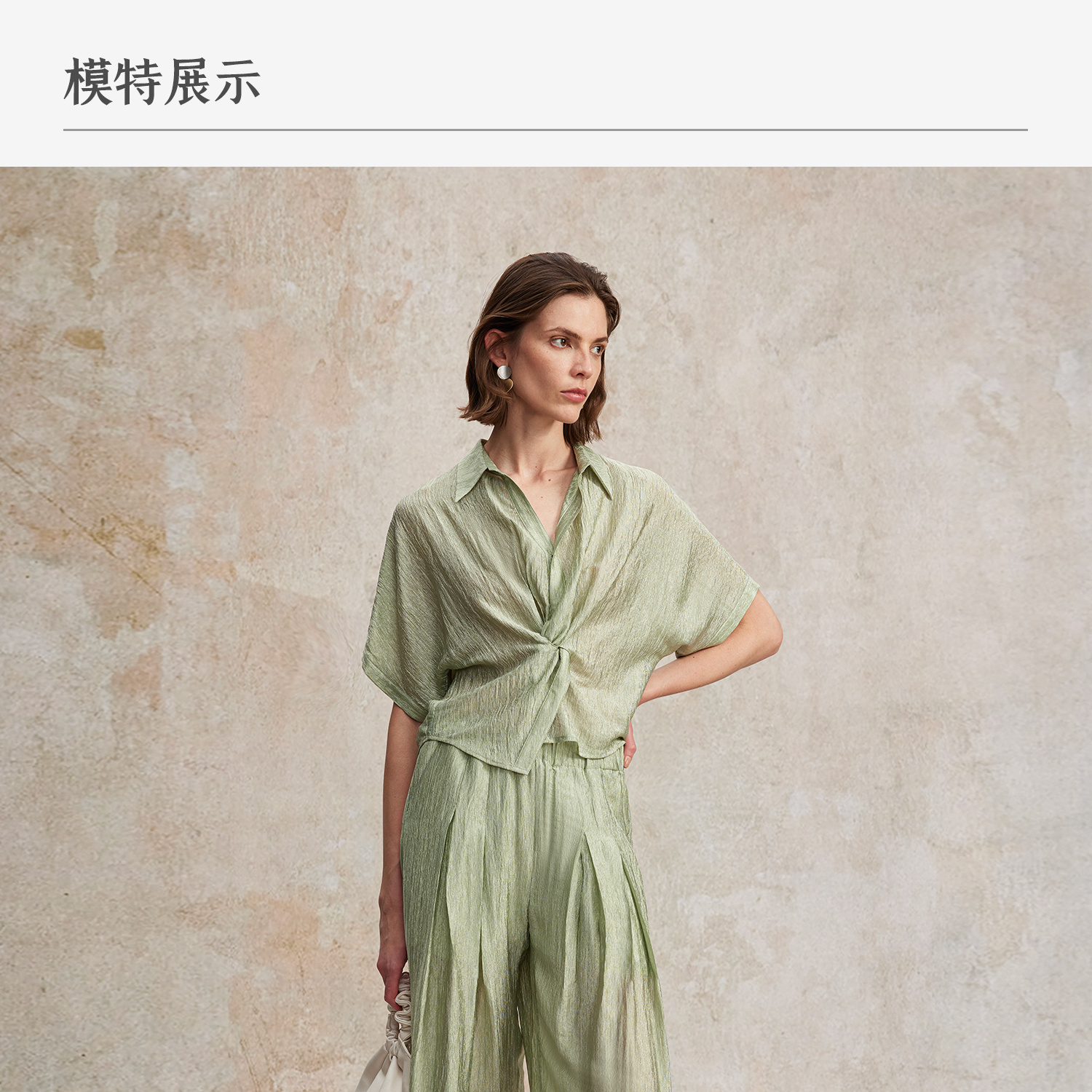 C+IMPRESS/西嘉欧若风醋酸鎏光感阔腿裤扭结衬衫套装女夏季新款CS2502080