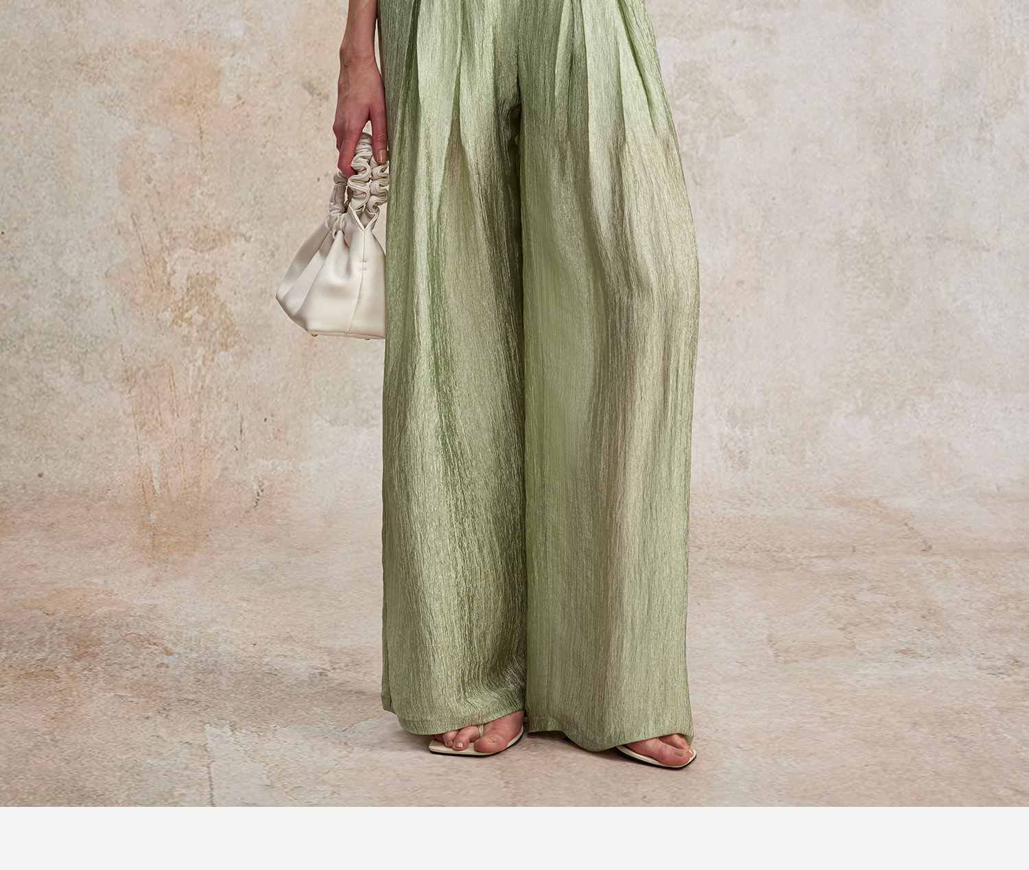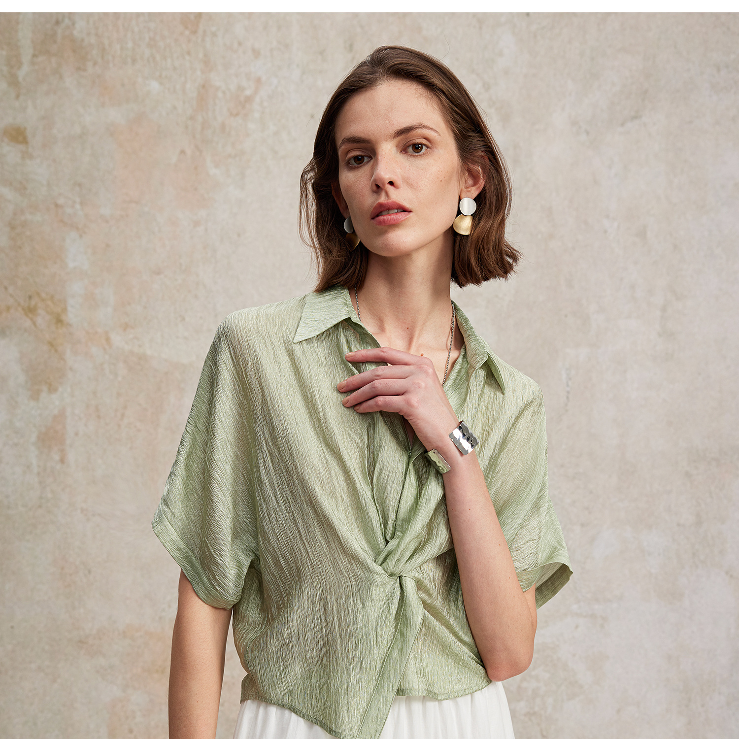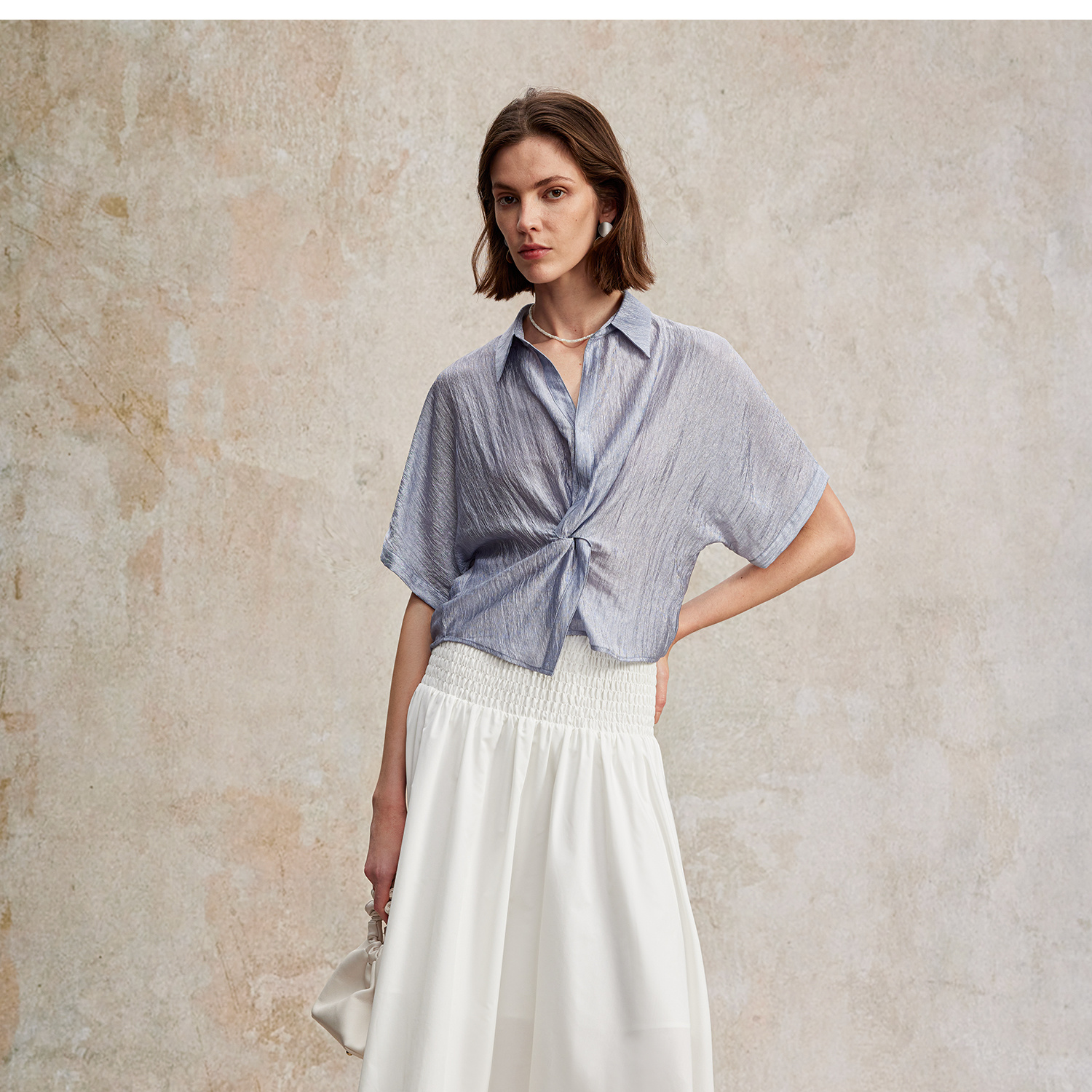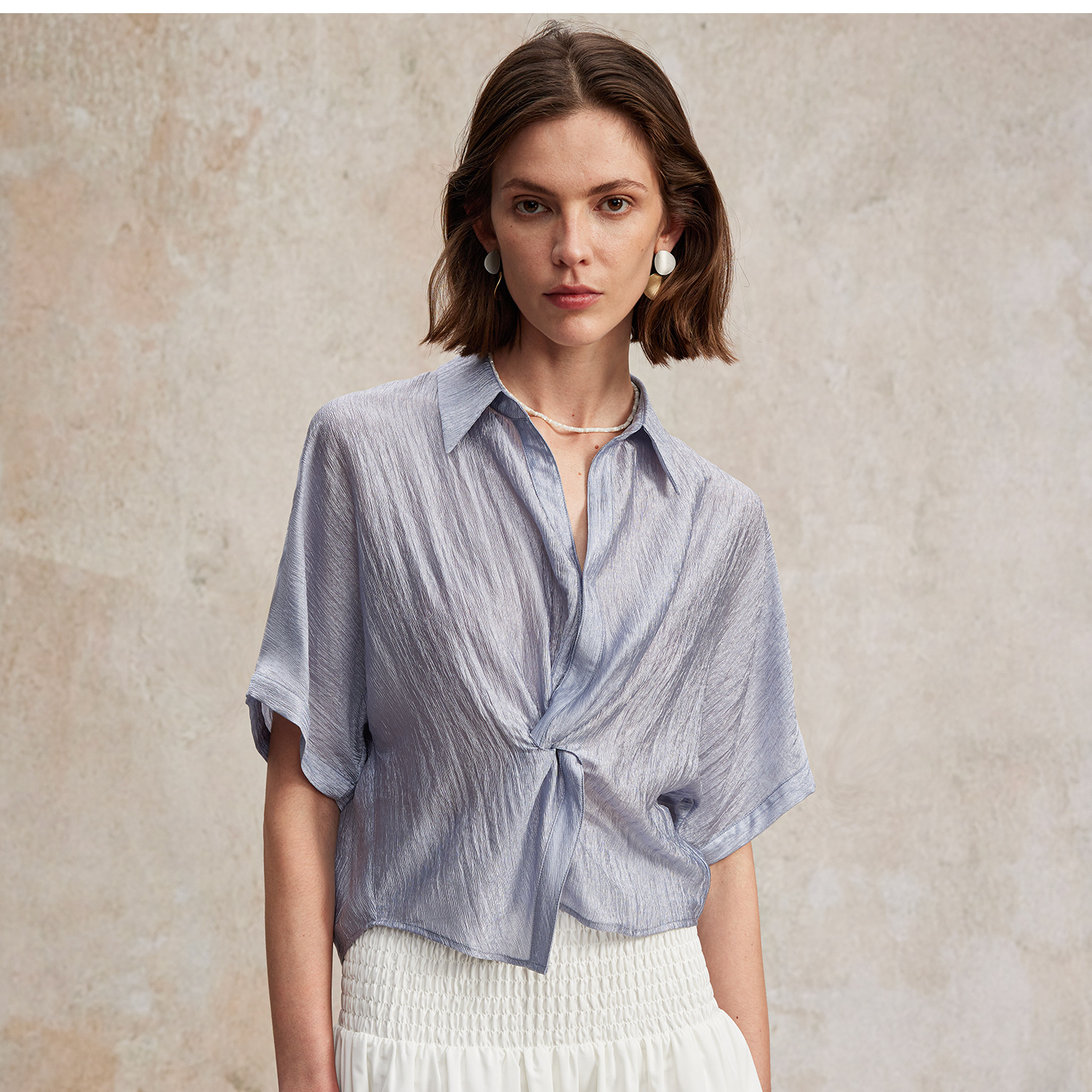 C+IMPRESS/西嘉欧若风醋酸鎏光感阔腿裤扭结衬衫套装女夏季新款CS2502080