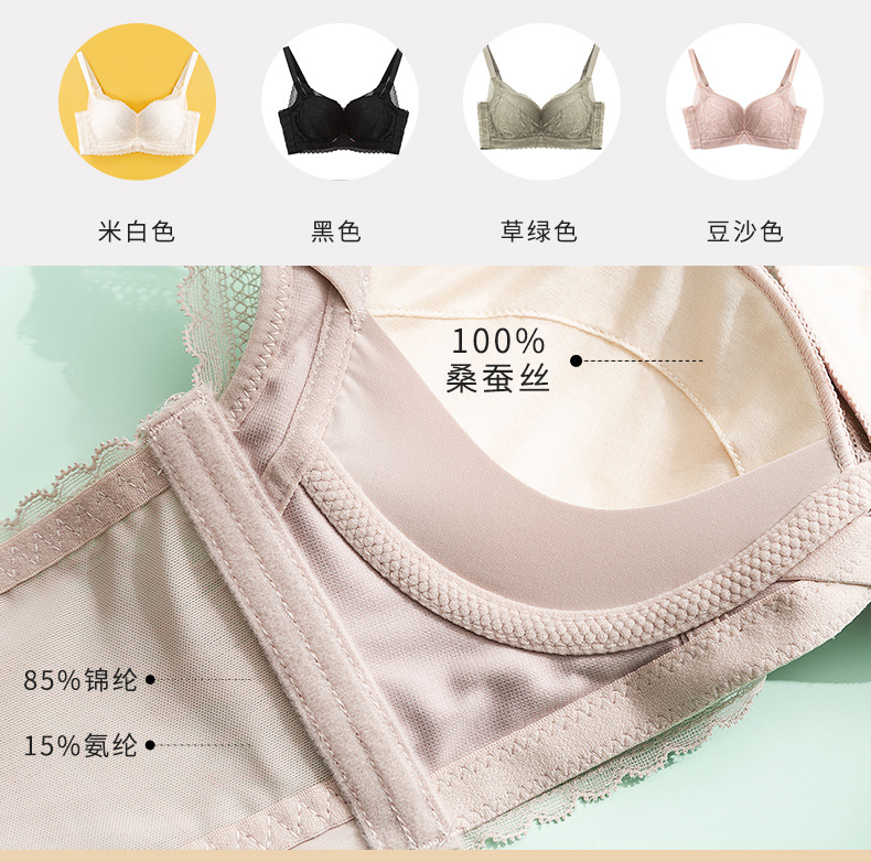 TG-TG02S109真丝无钢圈文胸 蕾丝性感桑蚕丝内衣 薄款收副乳透气