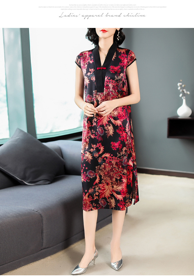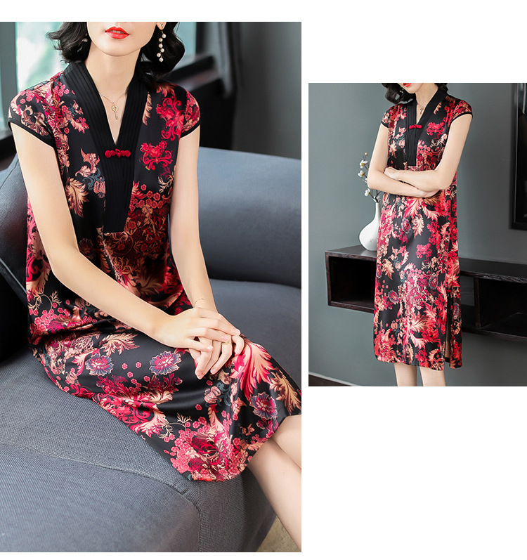FMN-NK6662夏季新品丝绸连衣裙中年妈妈桑蚕丝气质装WY