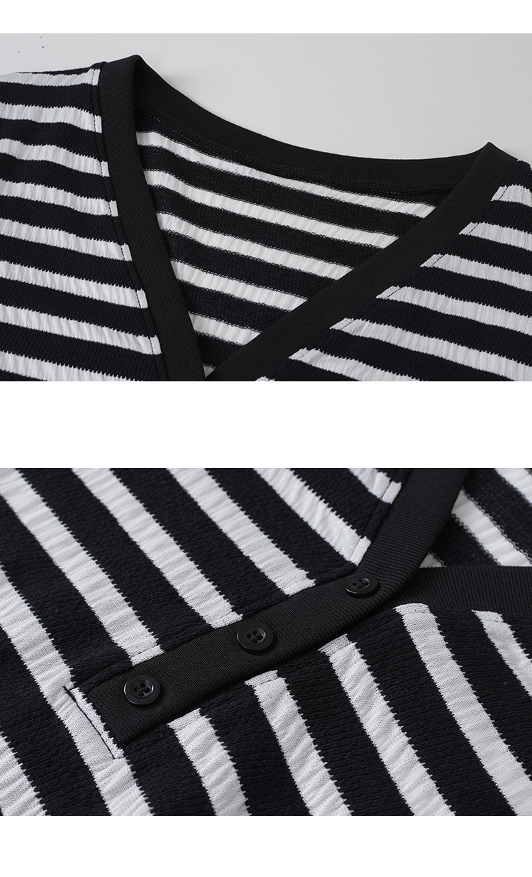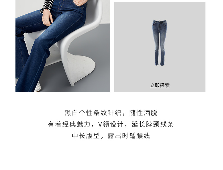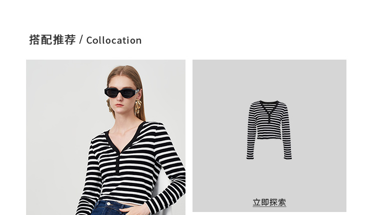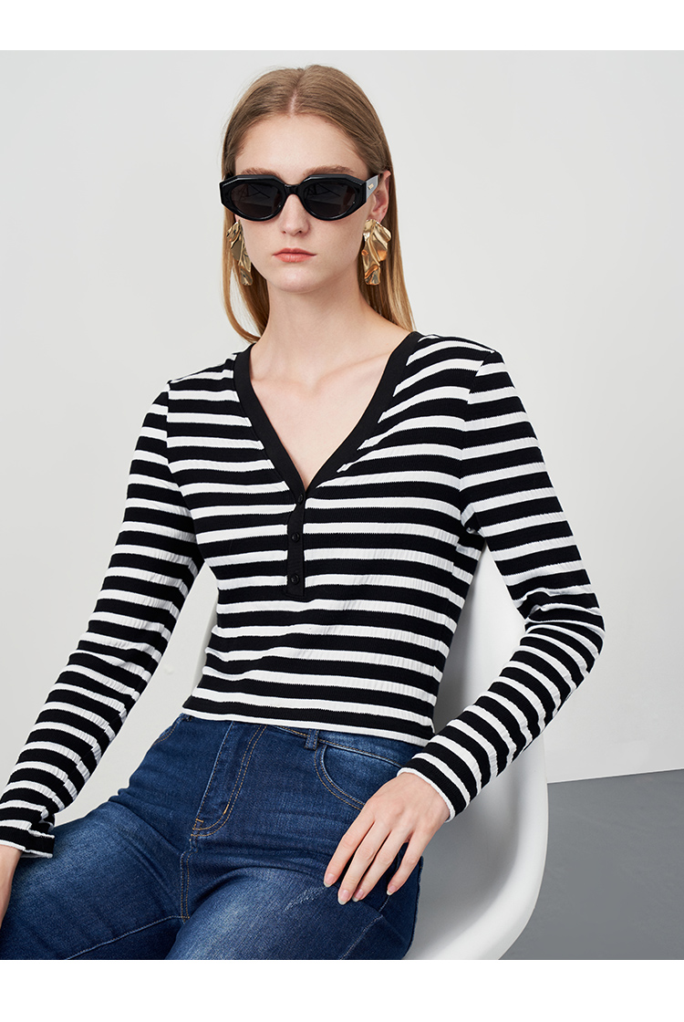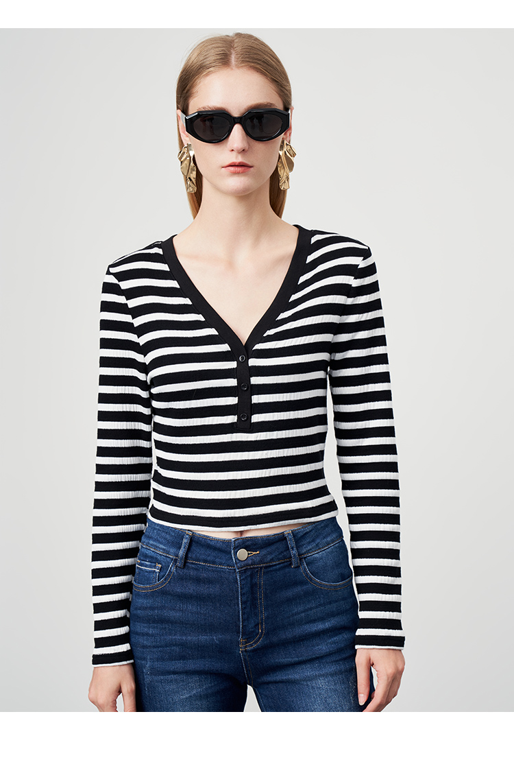 VIMAGE/纬漫纪秋季新款款时尚百搭条纹V领套头针织衫女上衣VC2213008