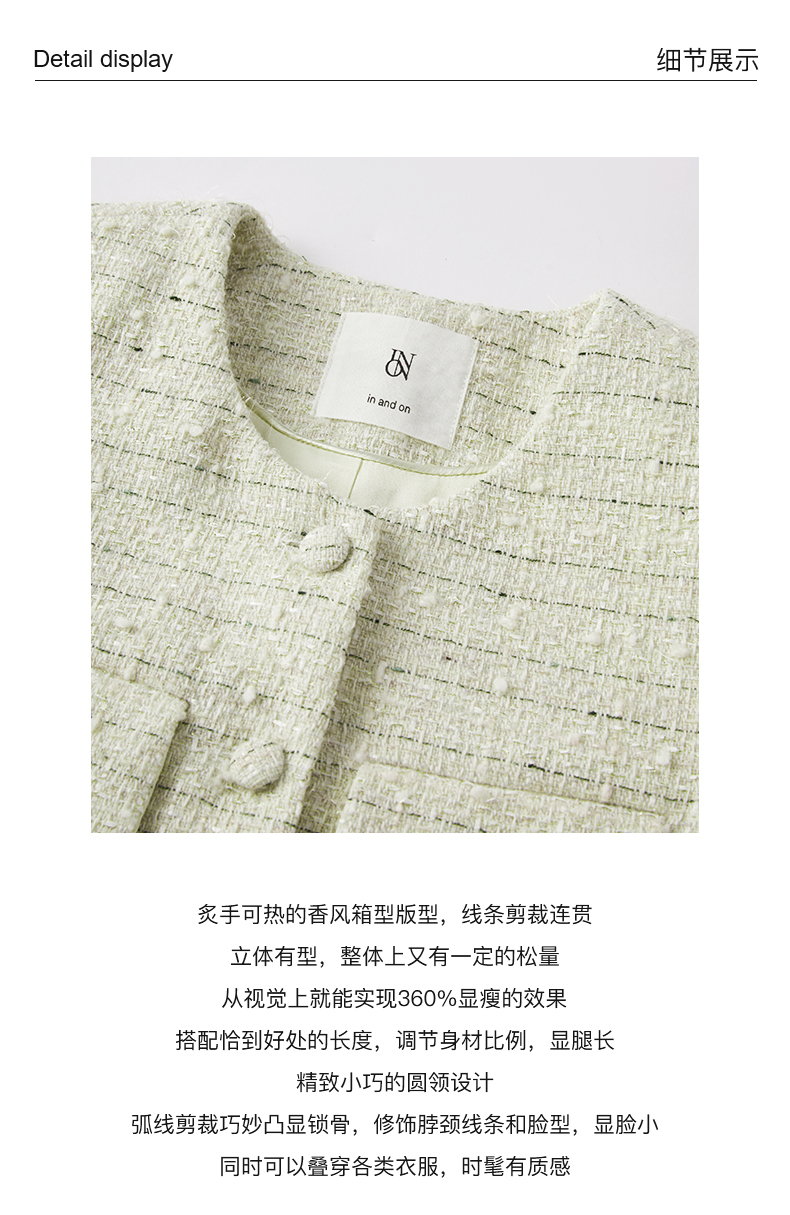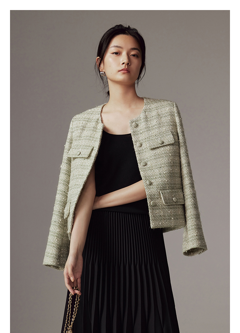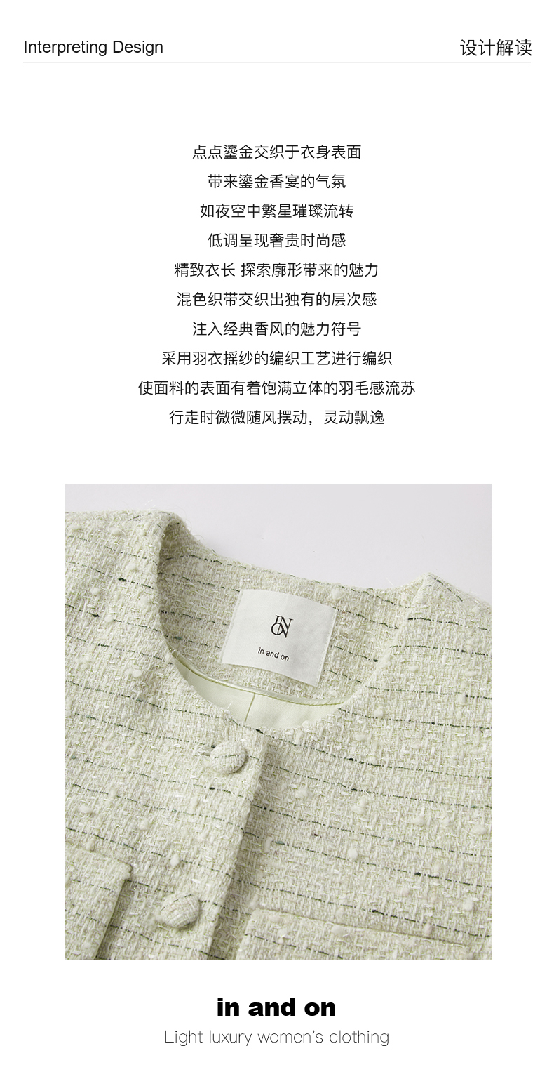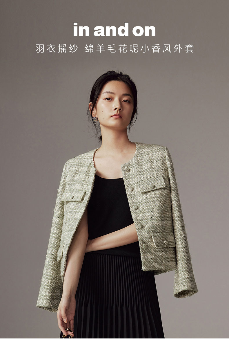 53852 IN AND ON 羽衣摇纱 绵羊毛花呢小香风外套