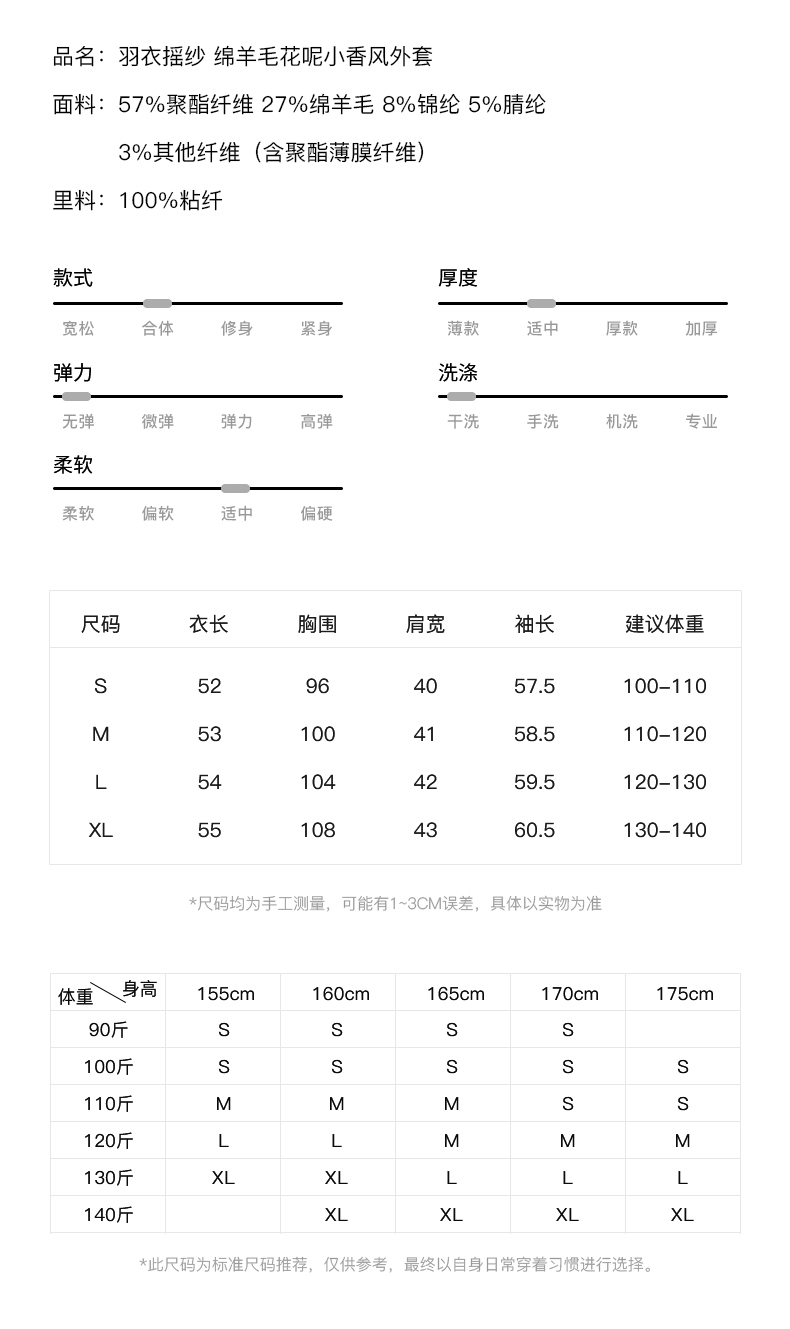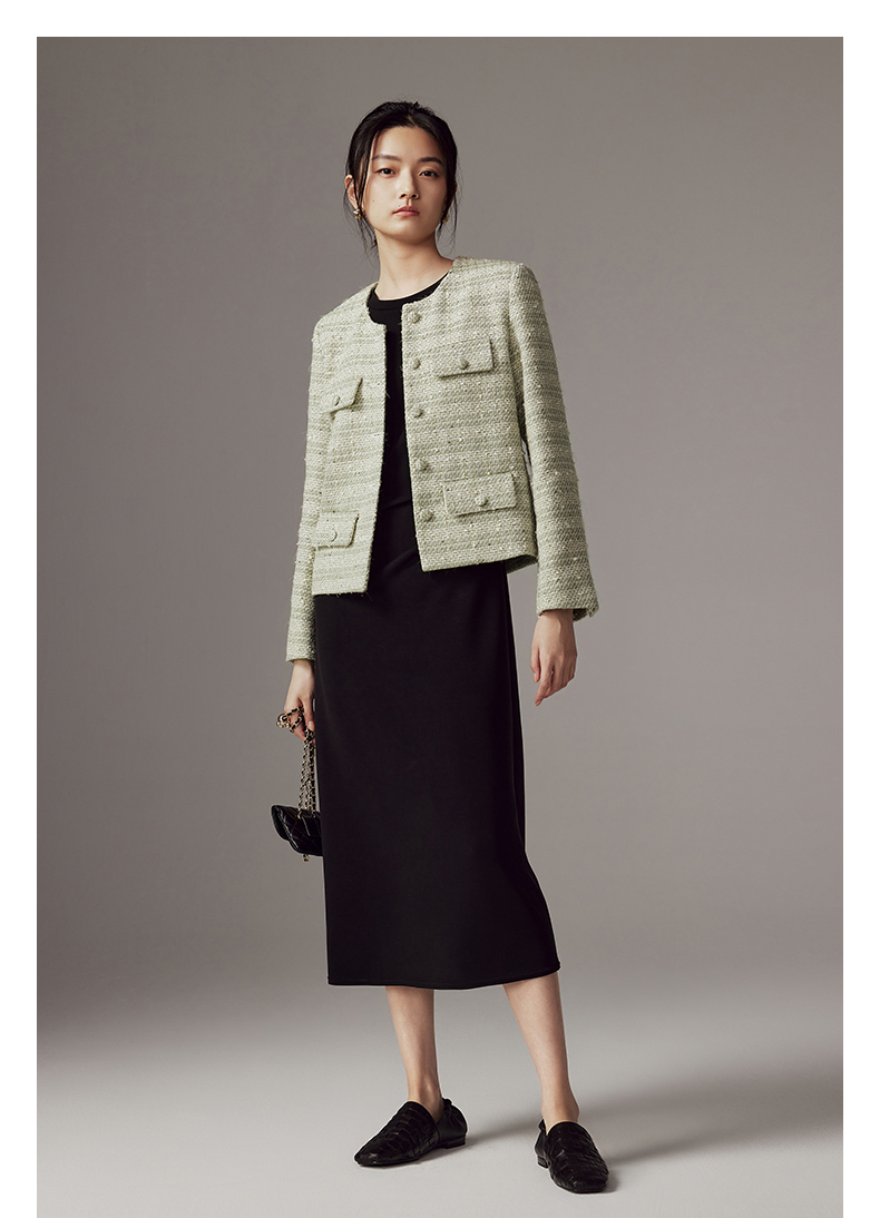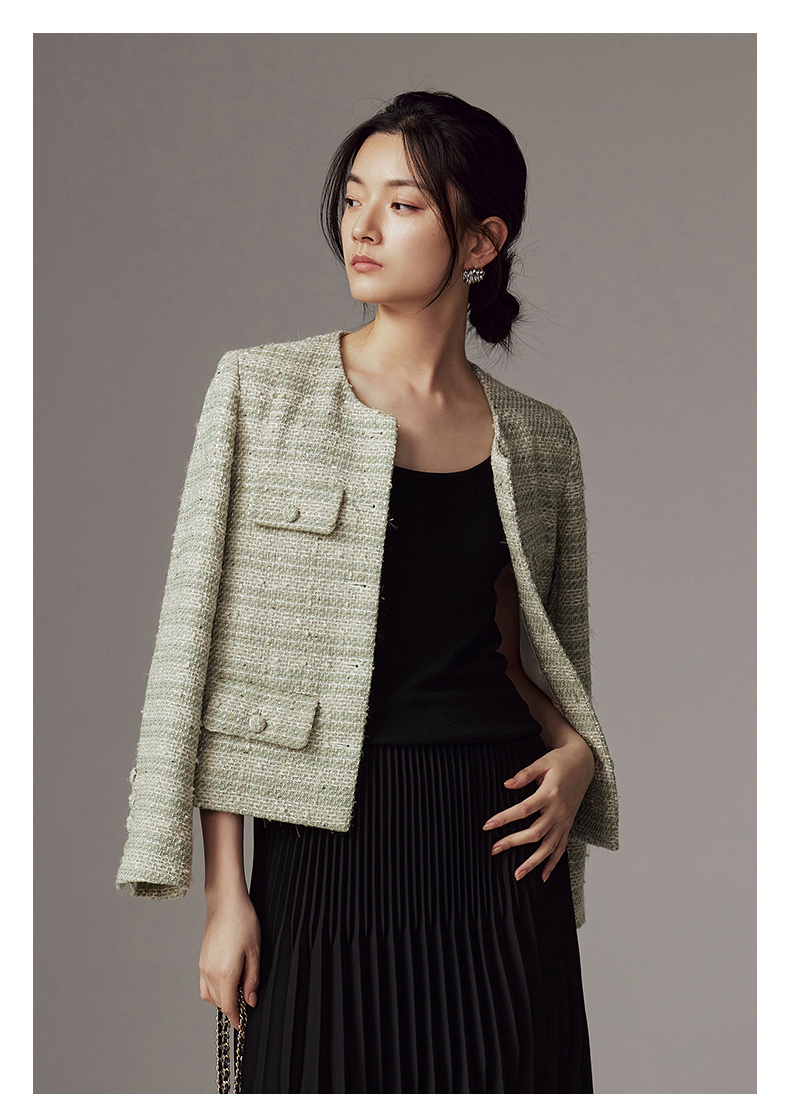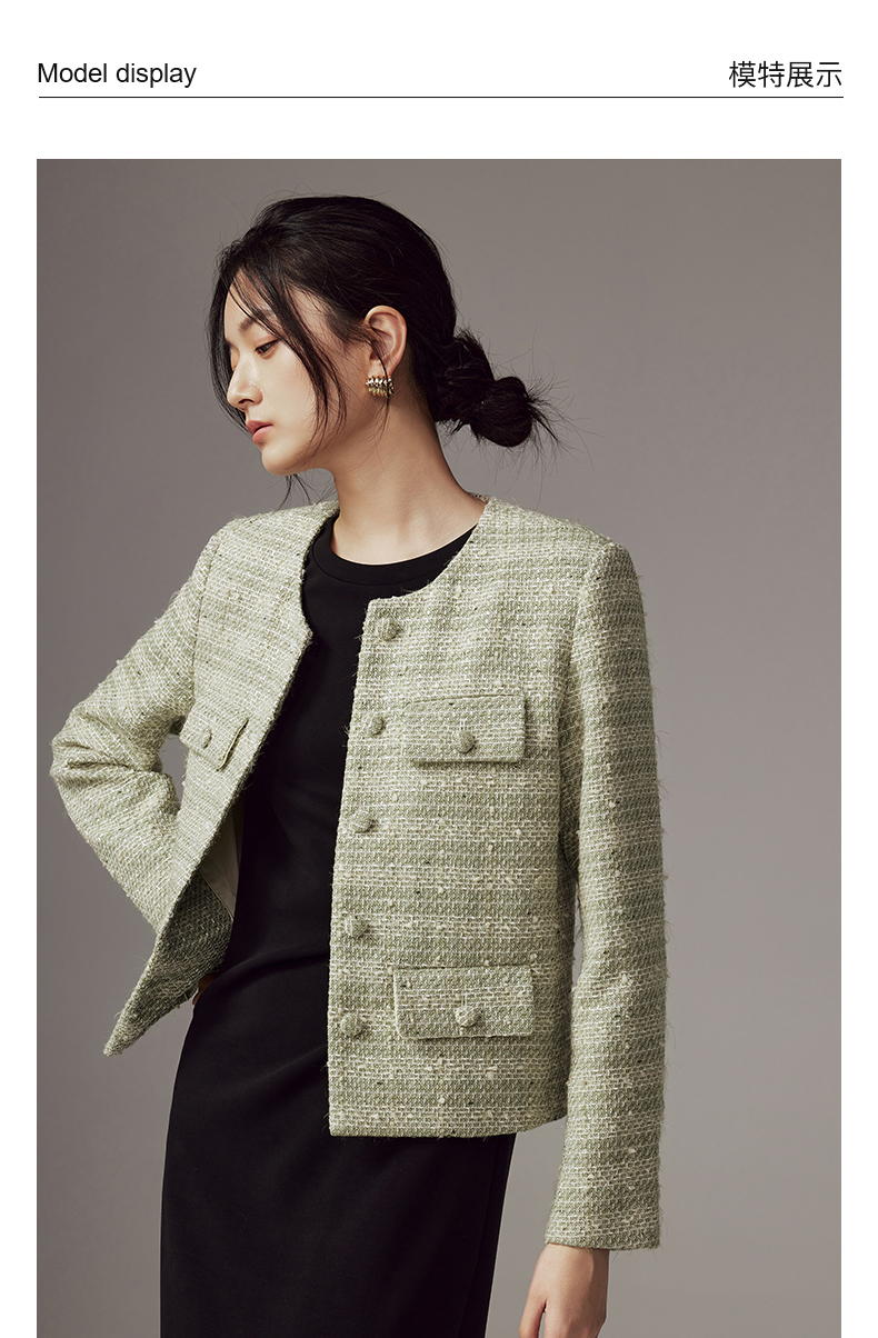 53852 IN AND ON 羽衣摇纱 绵羊毛花呢小香风外套