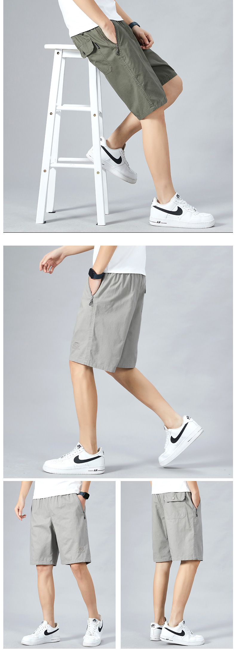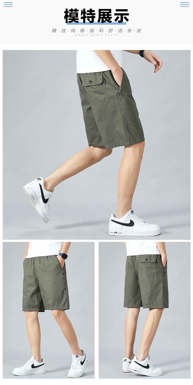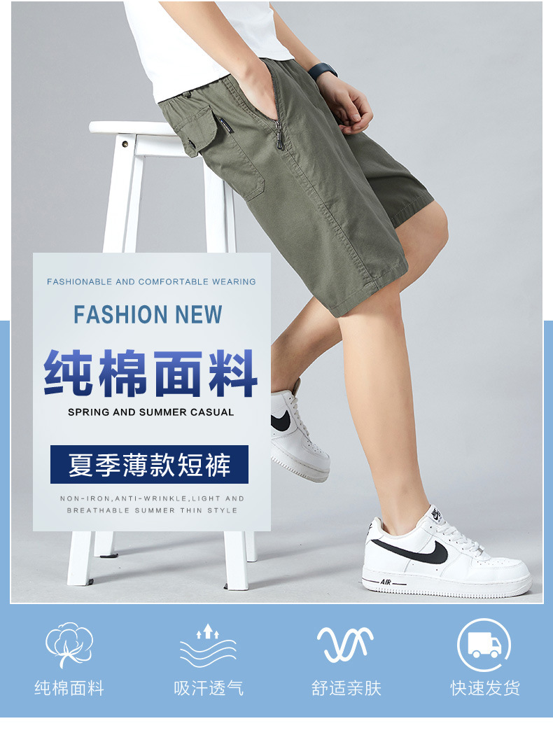 红览短裤男夏季100%纯棉五分裤纯色纯棉外穿休闲居家高档沙滩裤AL512