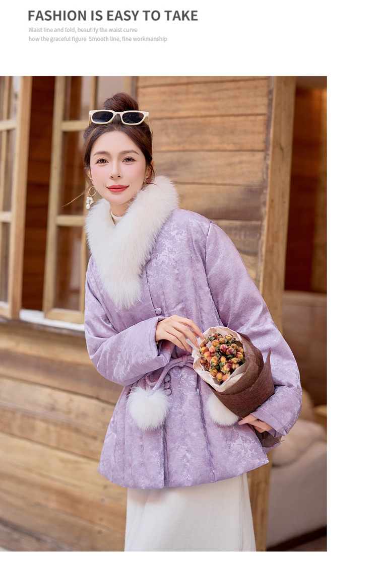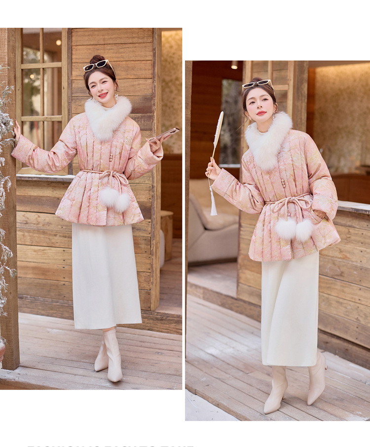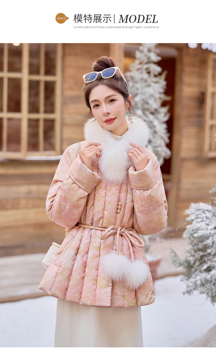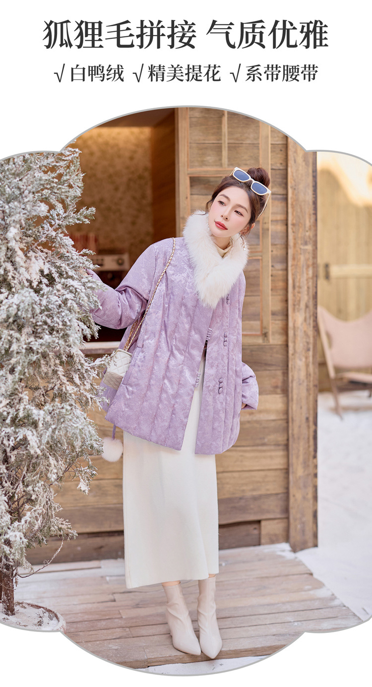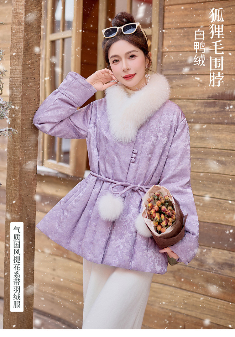 HR YJLY2607提花新中式A版系带狐狸毛羽绒服白鸭绒