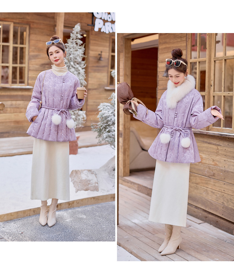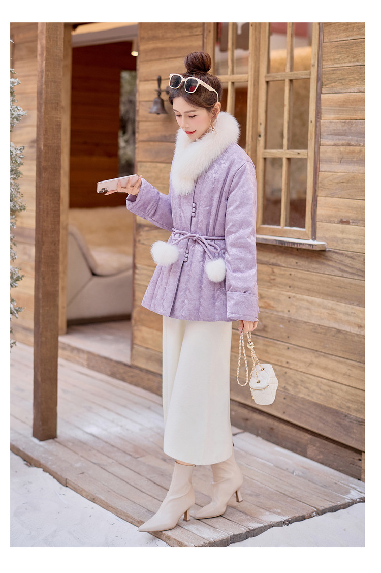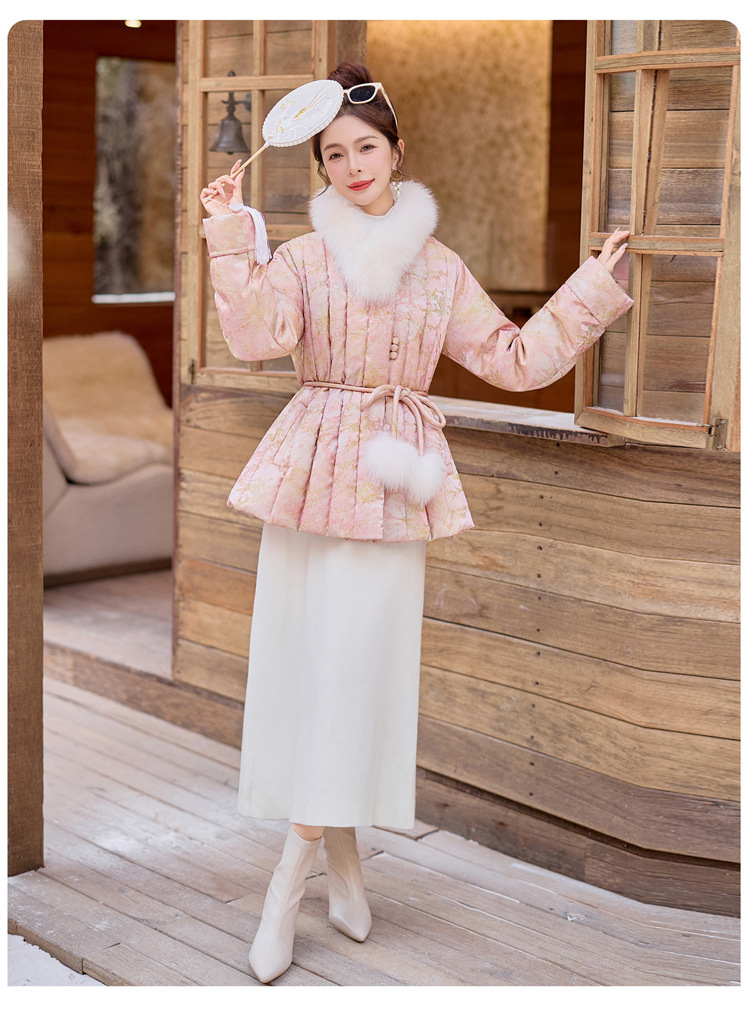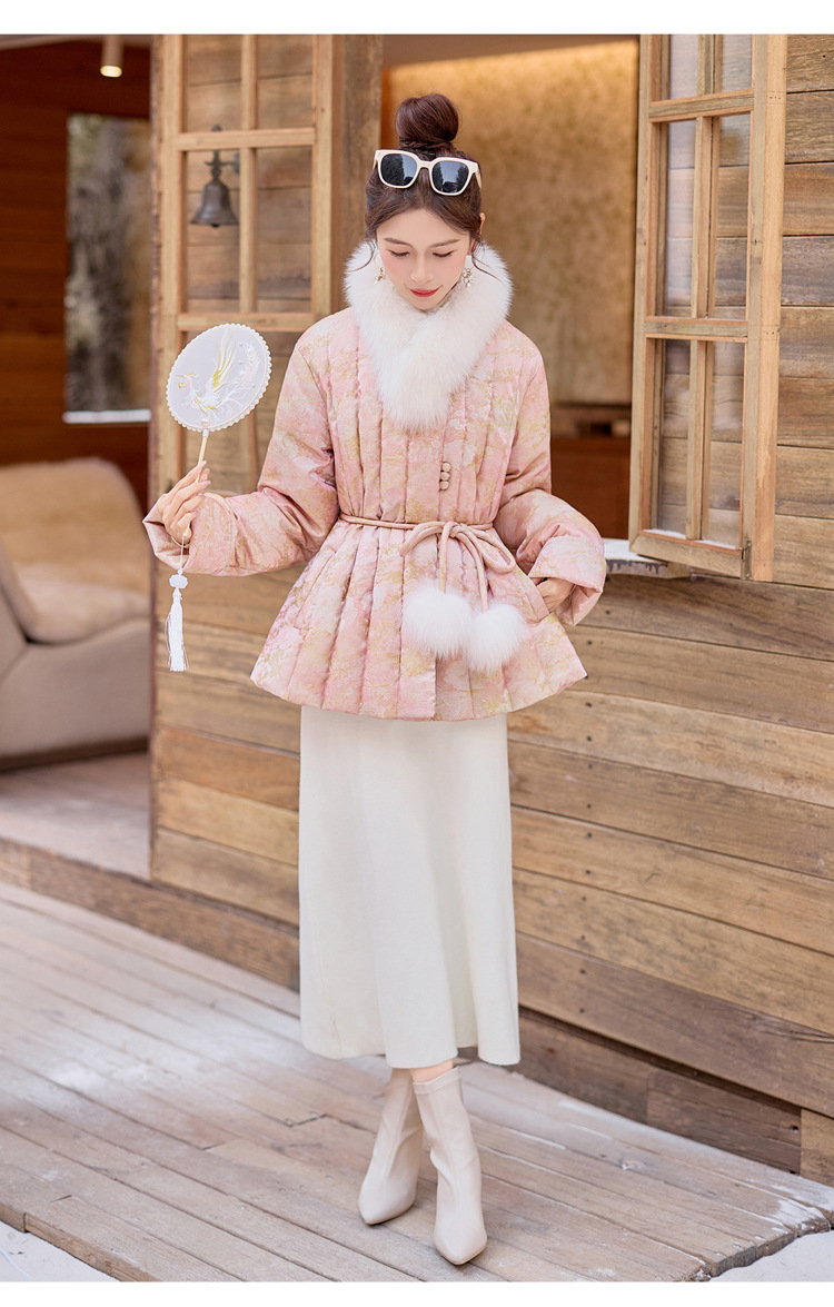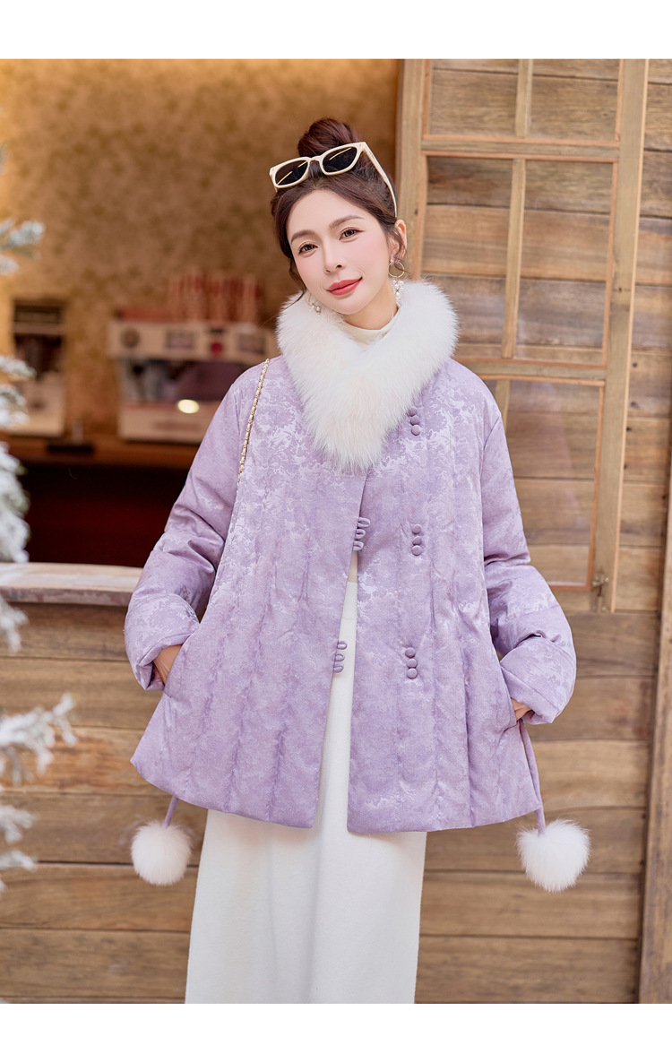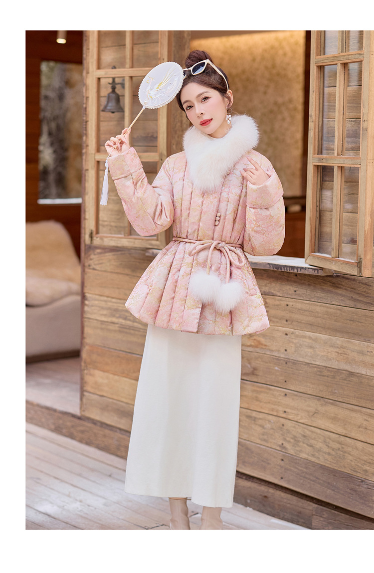 HR YJLY2607提花新中式A版系带狐狸毛羽绒服白鸭绒