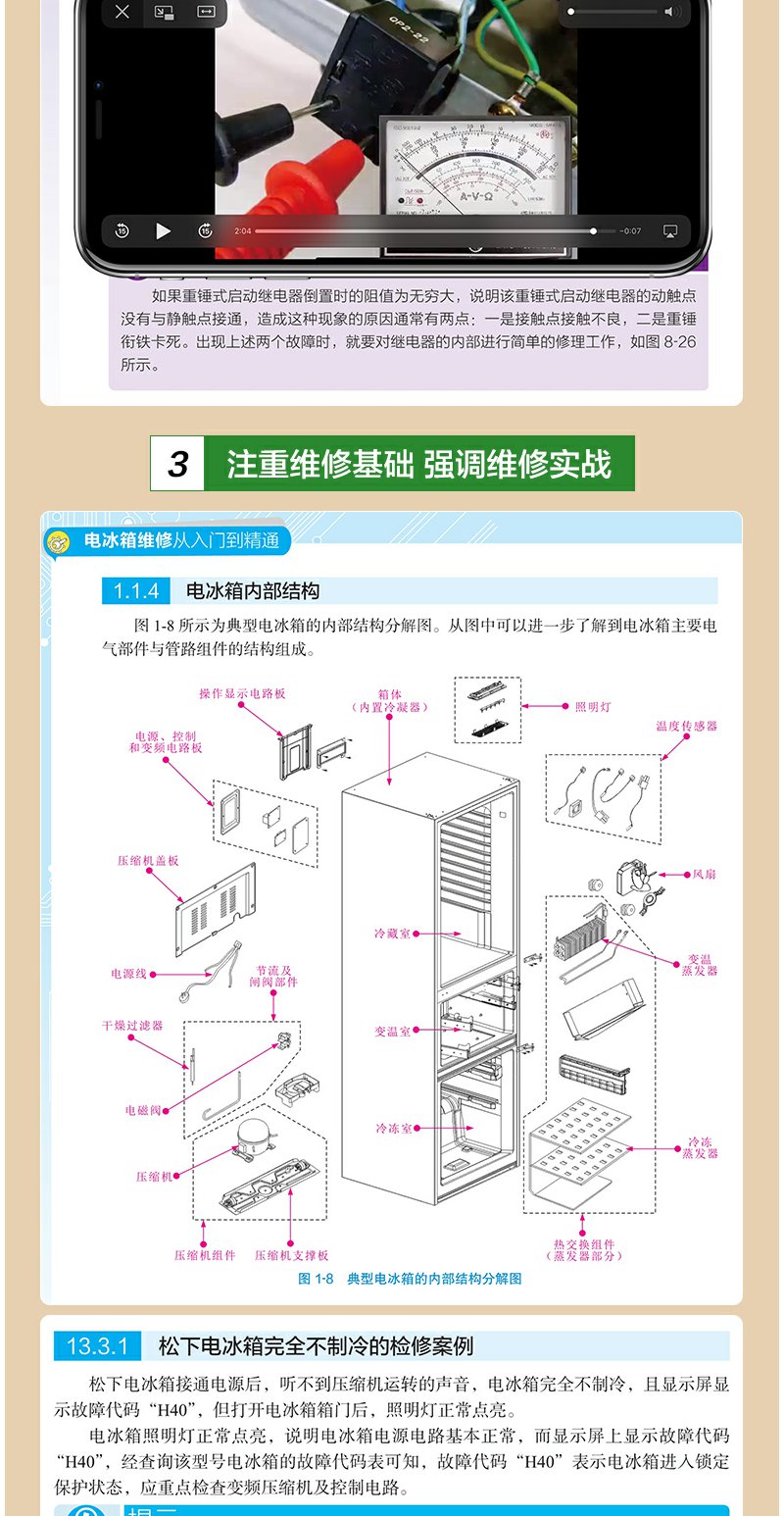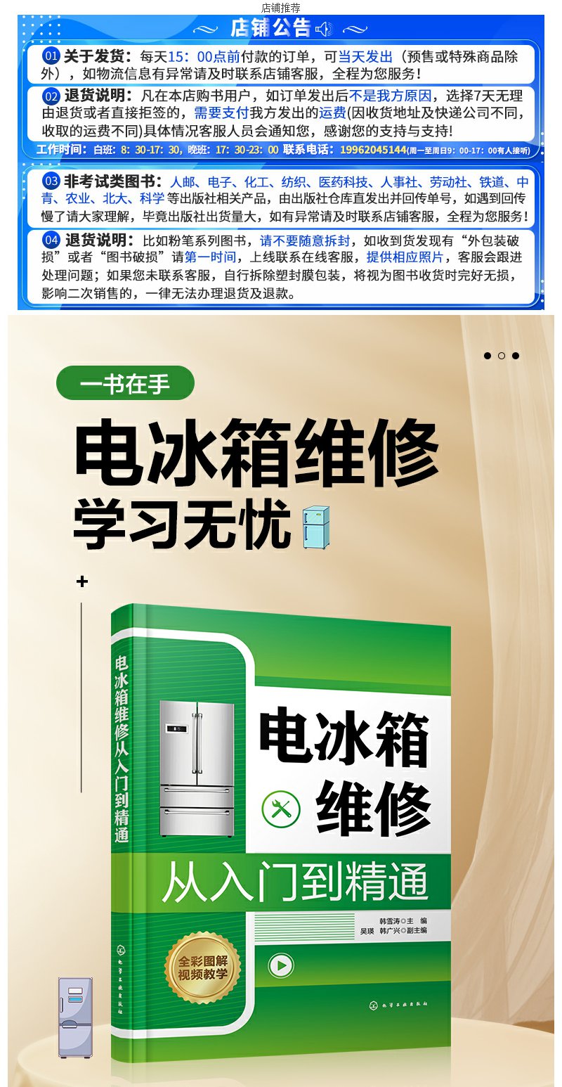 电冰箱维修从入门到精通 电冰箱维修一本通 零基础学电冰箱维修 家电维修书籍 电冰箱基础知识及维修技能图书 电冰箱维修入门书籍 无 化学工业出版社 9787122392947
