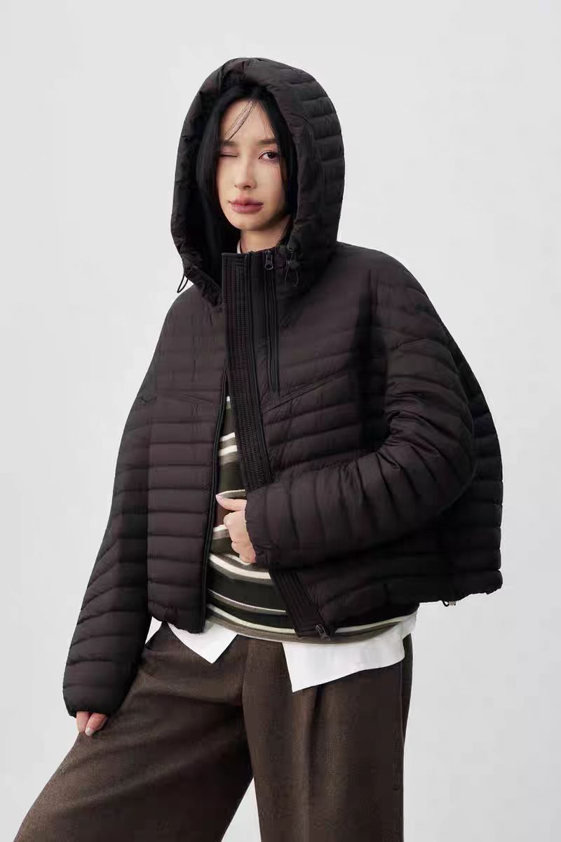 2025秋冬排骨风新款休闲时尚连帽蓬松保暖抽绳白鸭绒羽绒服外套女