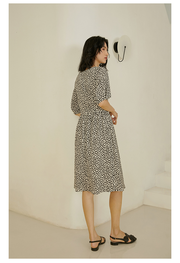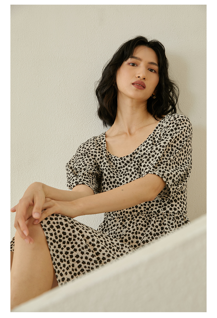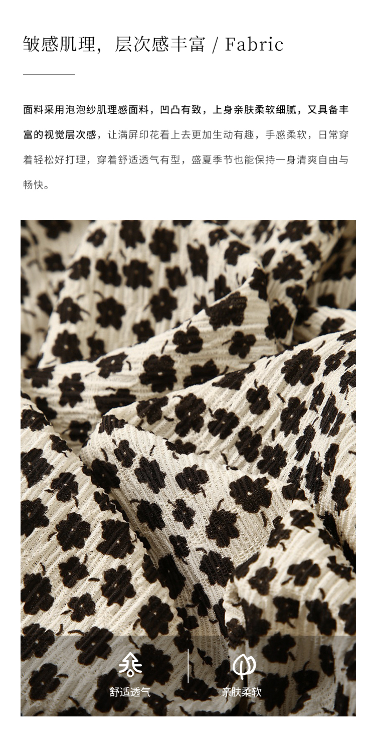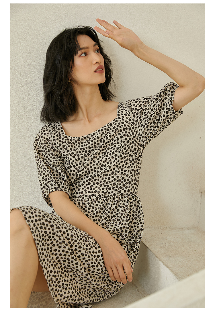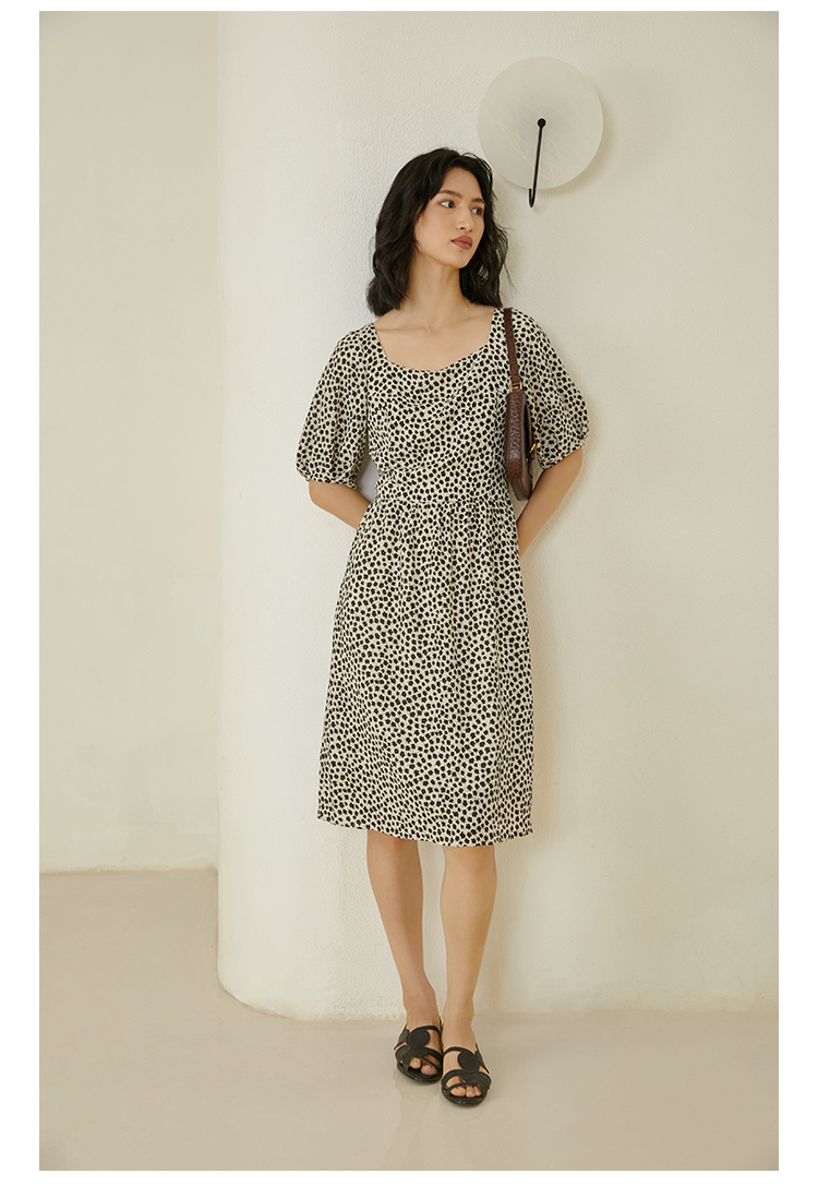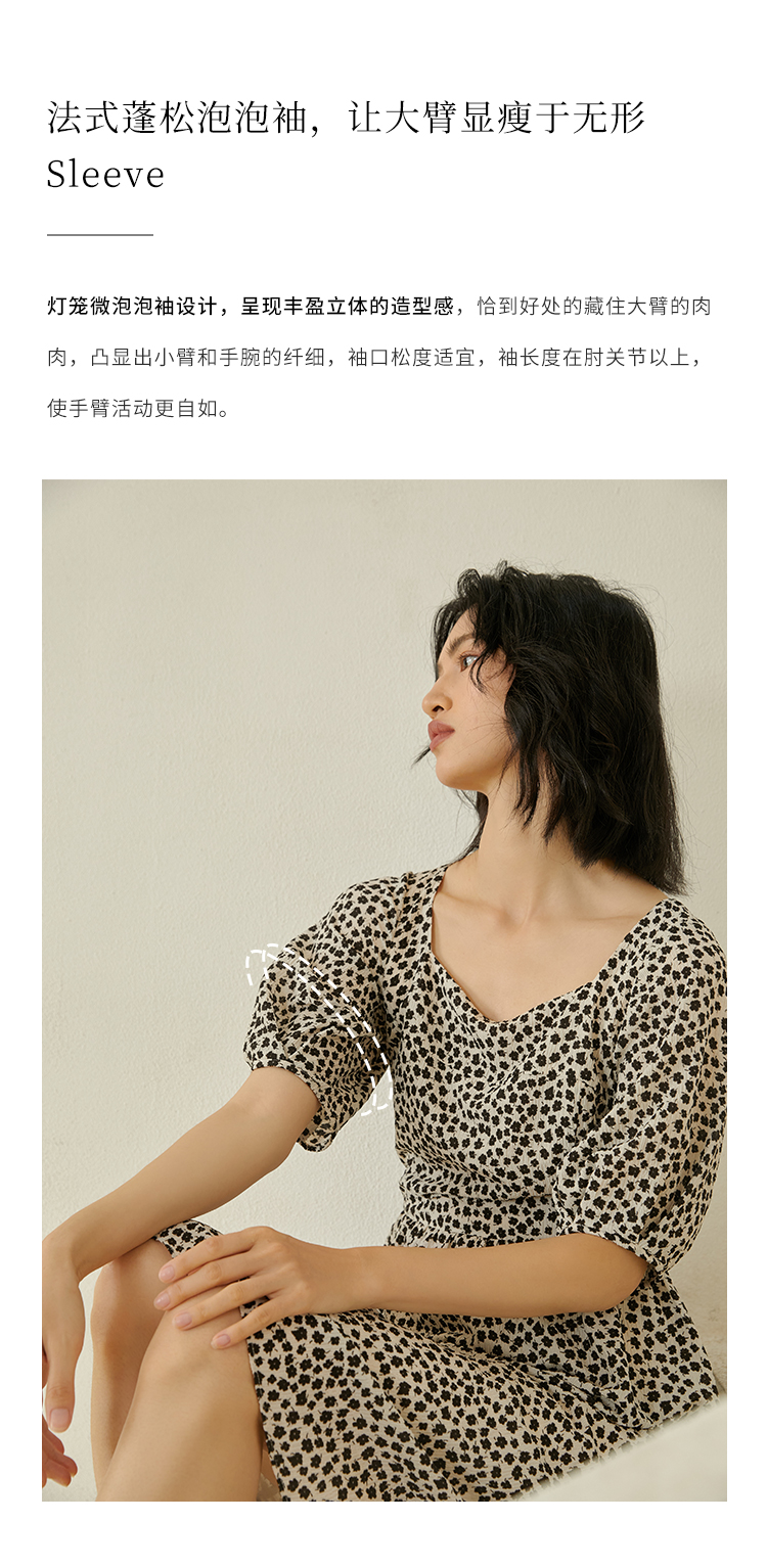 HeyDress法式复古方领碎花连衣裙女夏季高腰泡泡袖优雅气质裙子