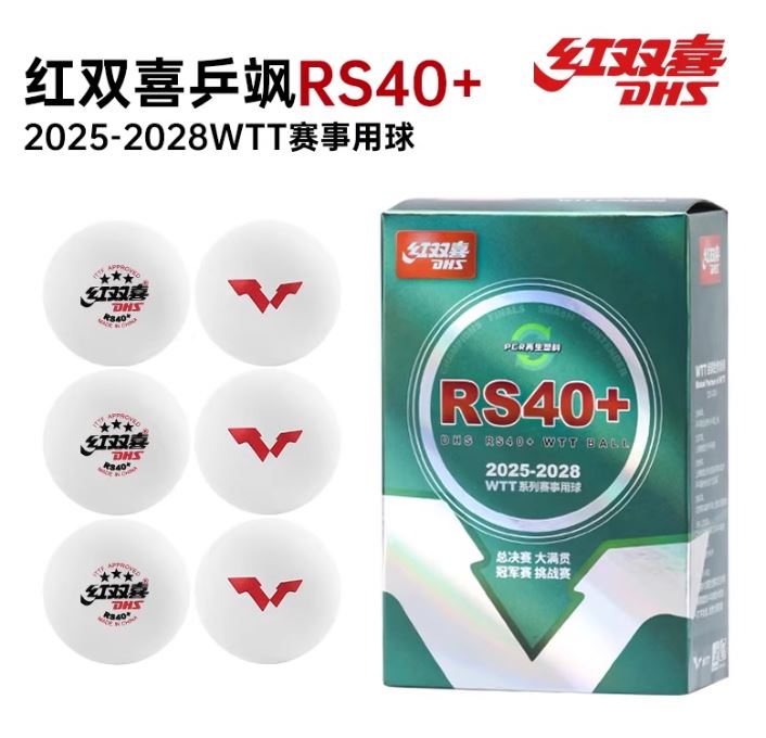 红双喜乒飒RS40+DHS 2025-2028WTT赛事用球 PCP 再生塑料 更圆更弹更耐打