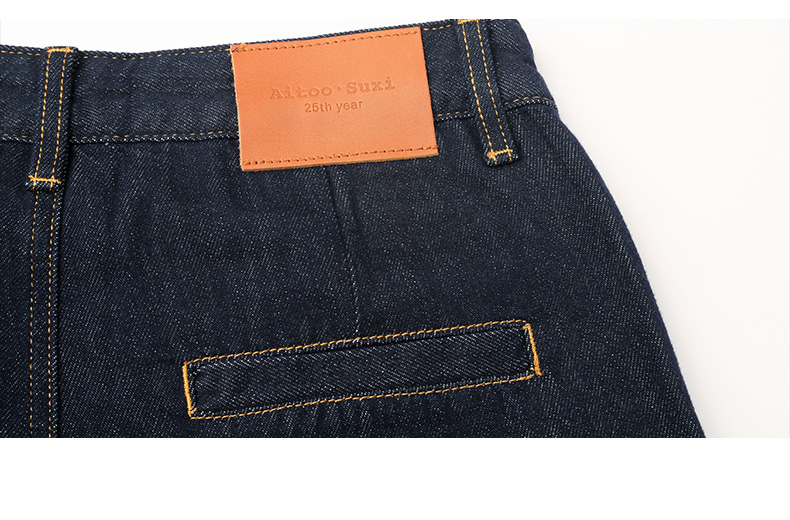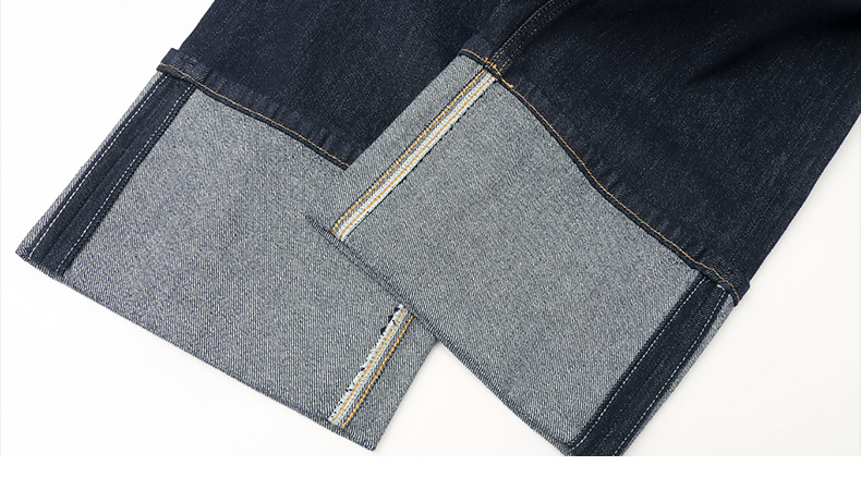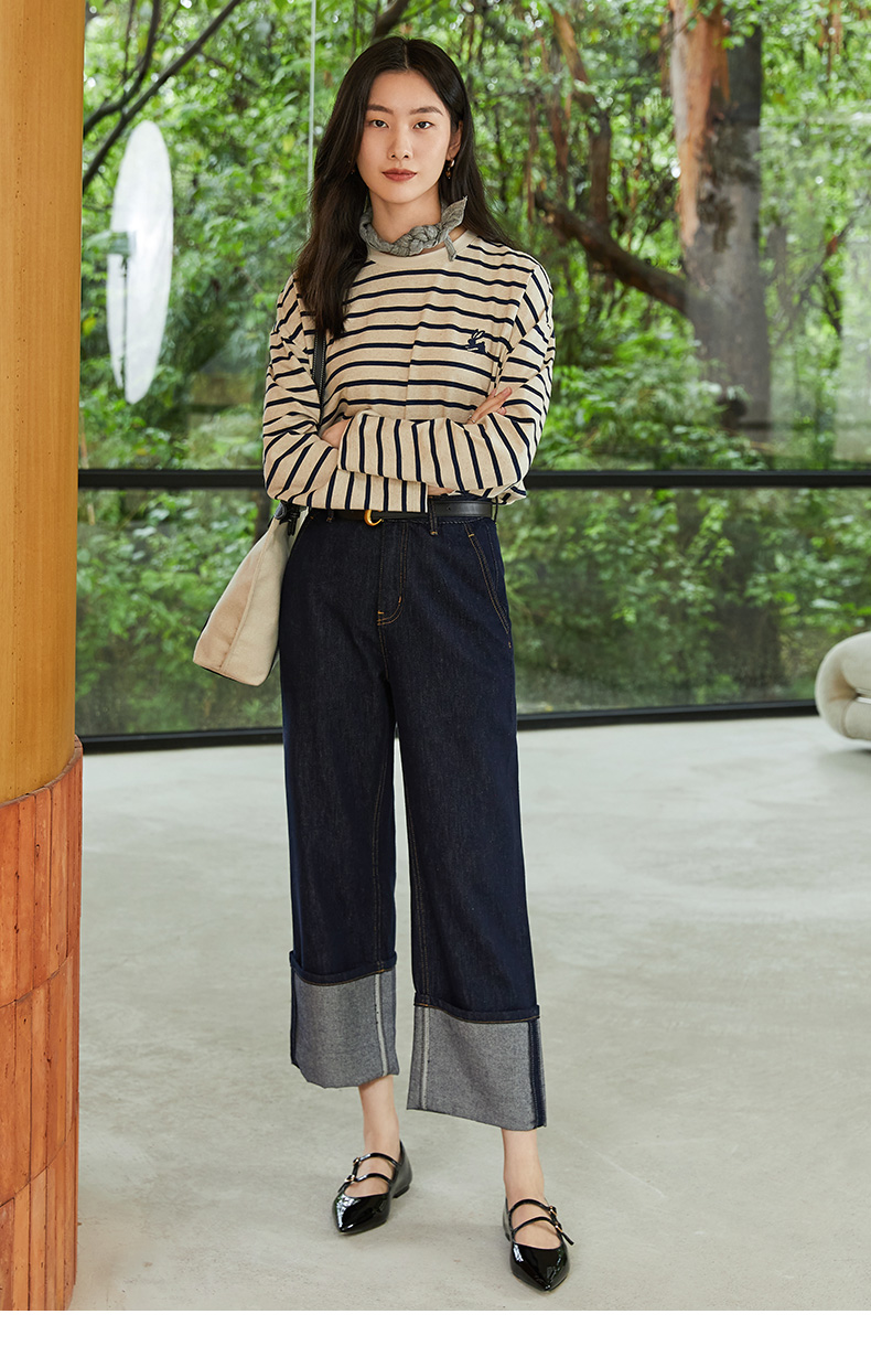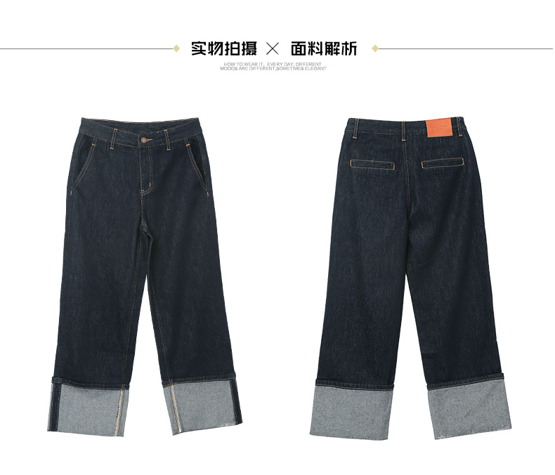 复古原色深蓝牛仔裤 春季新款翻边设计宽松直筒九分裤