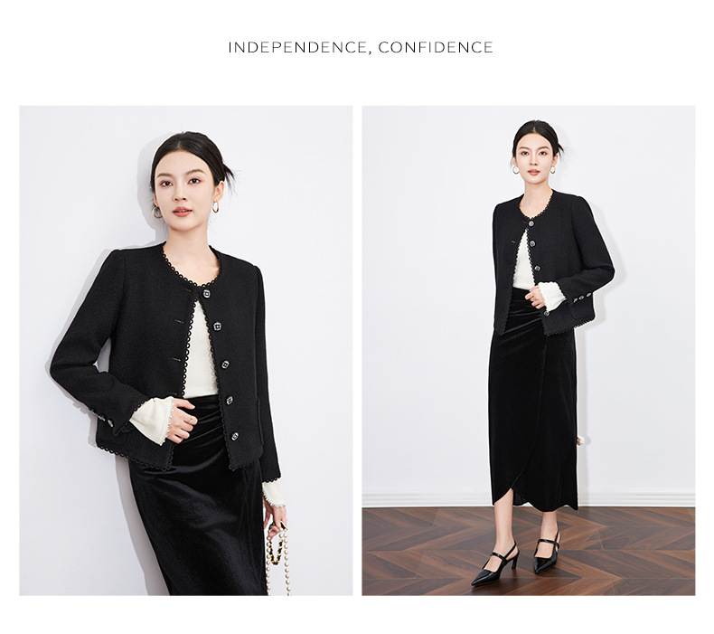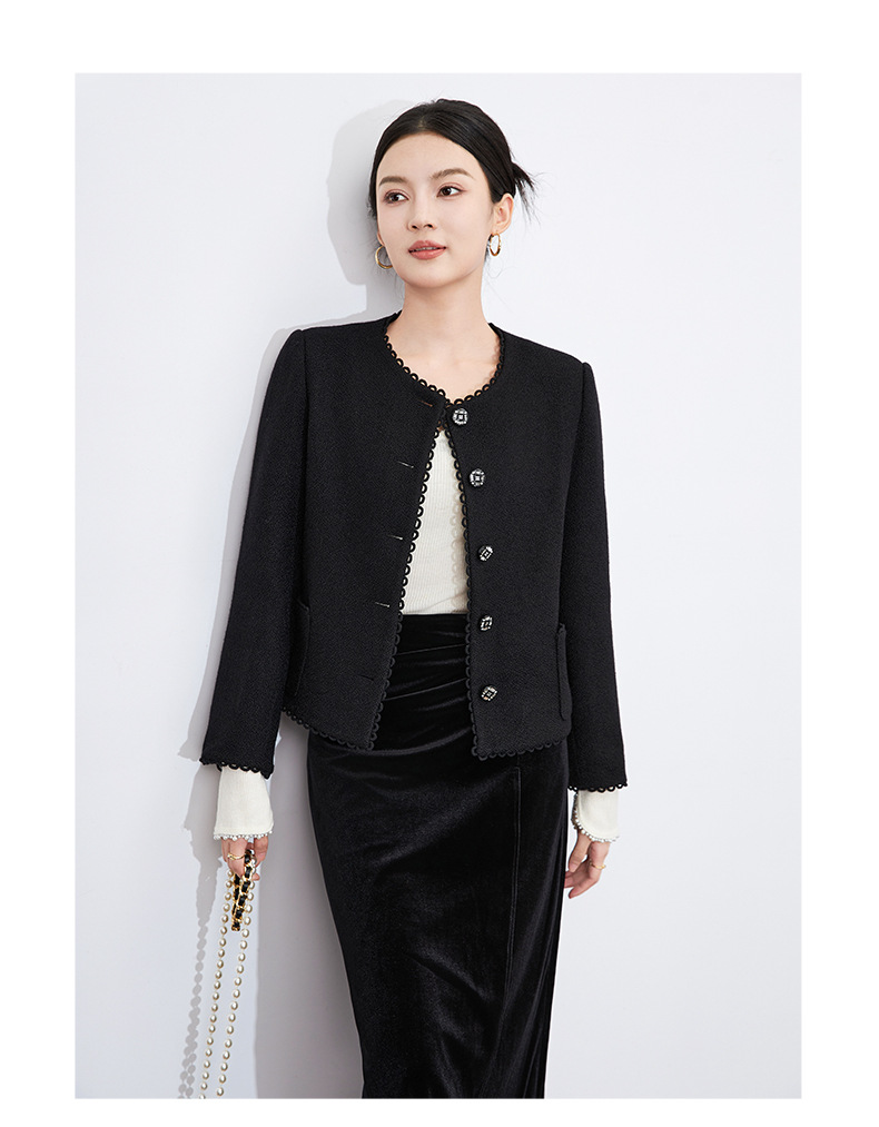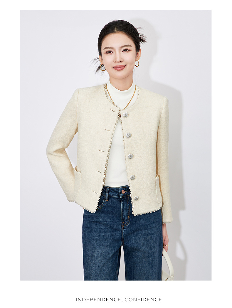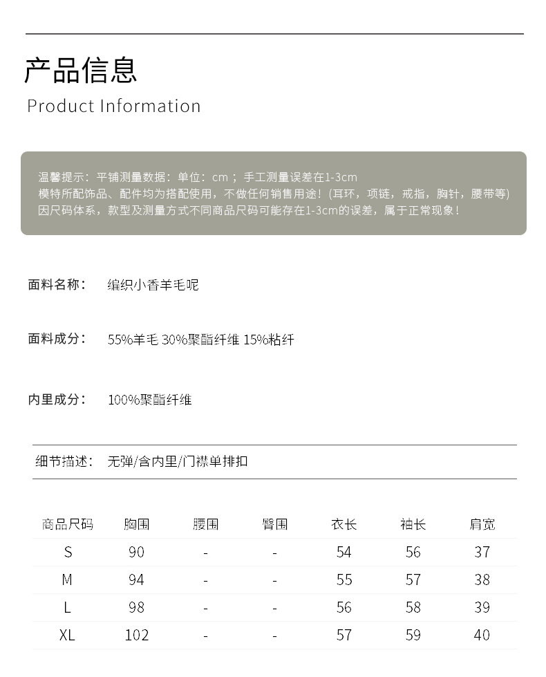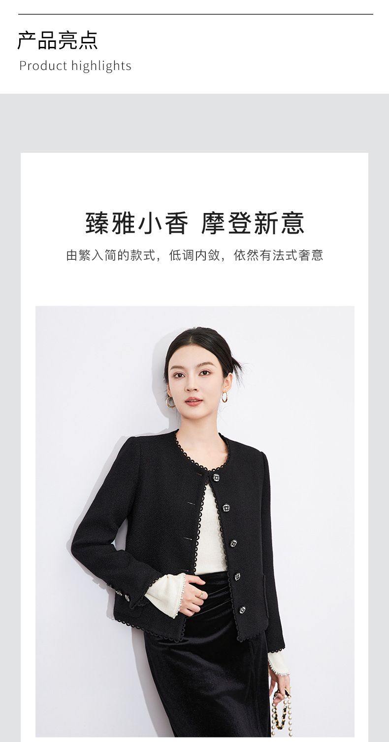 【高货wl】全新升级【铂金会员321/天猫429/差价108】(03006) 洛诗琳秋冬*高级感羊毛小香风圆领短款外套正肩上衣