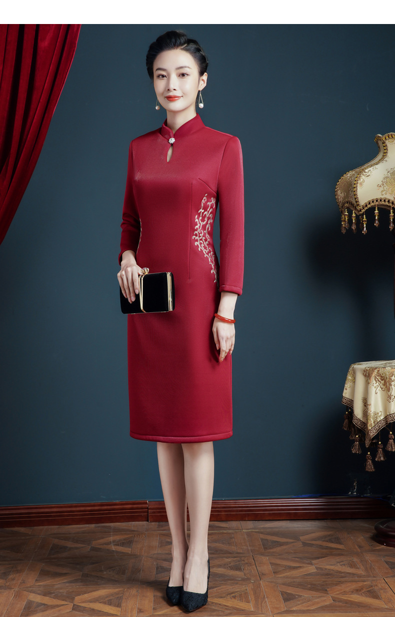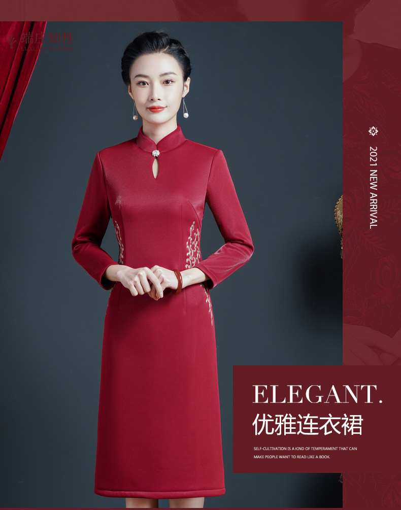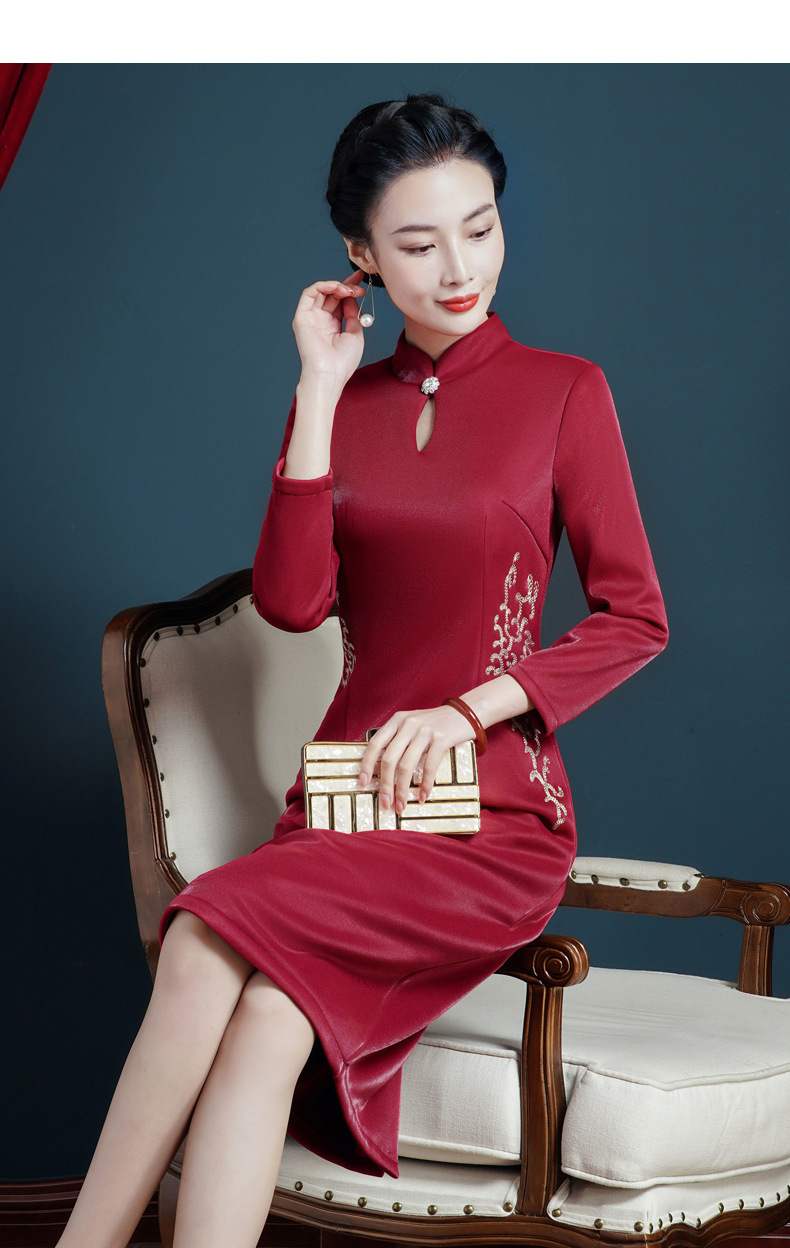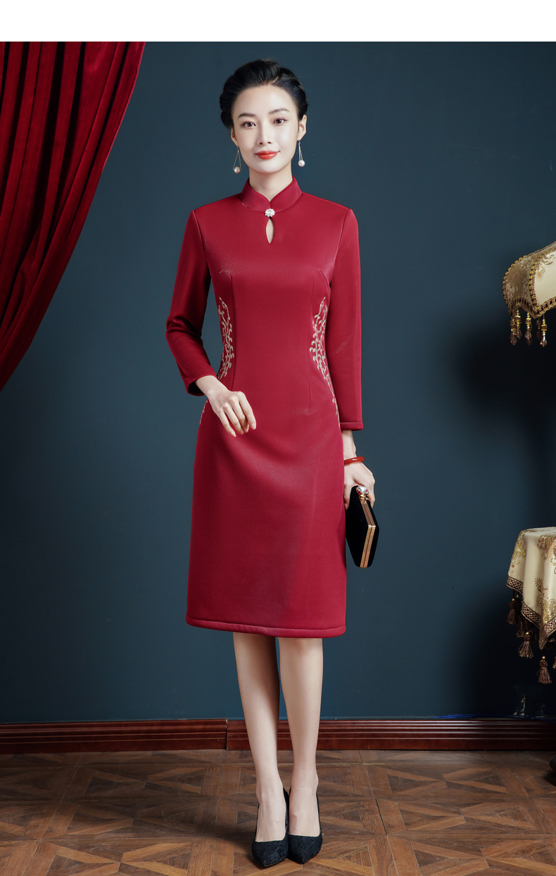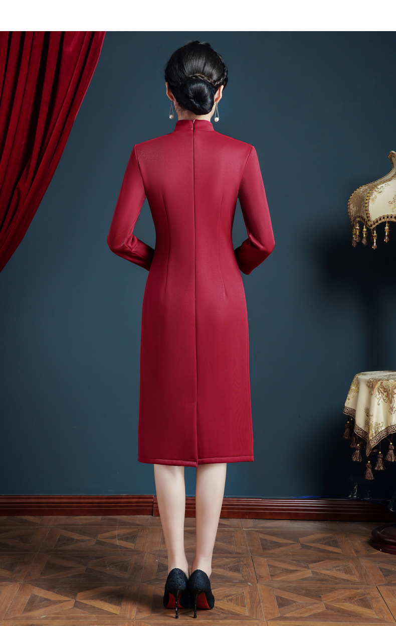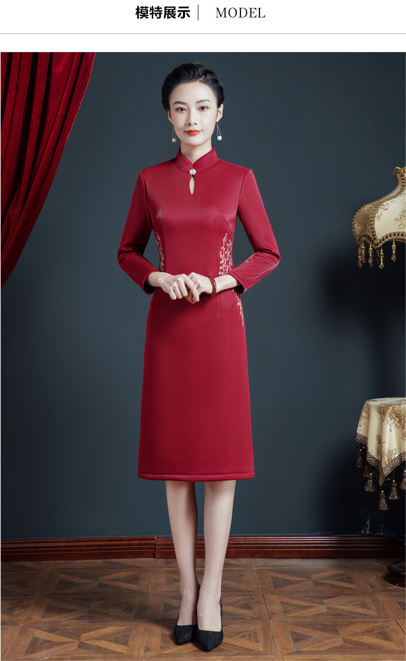 上海旗袍厂JC-62302旗袍连衣裙喜婆婆礼服年轻加绒加厚高贵秋冬季婚礼
