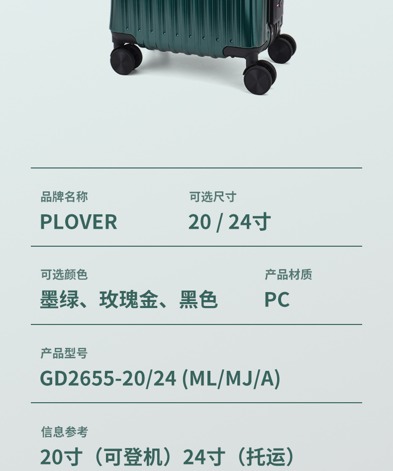 香港啄木鸟PLOVER大容量行李箱女皮箱24寸拉杆箱旅行箱20寸21寸登机箱子密码箱