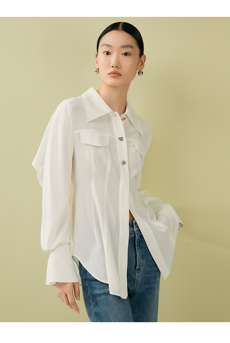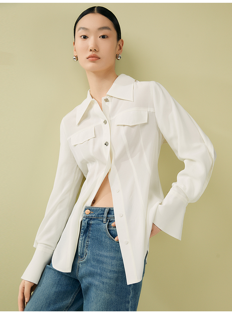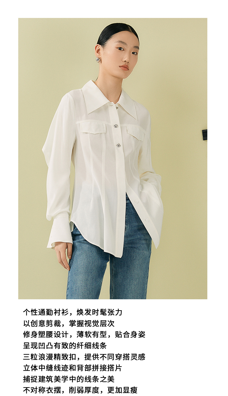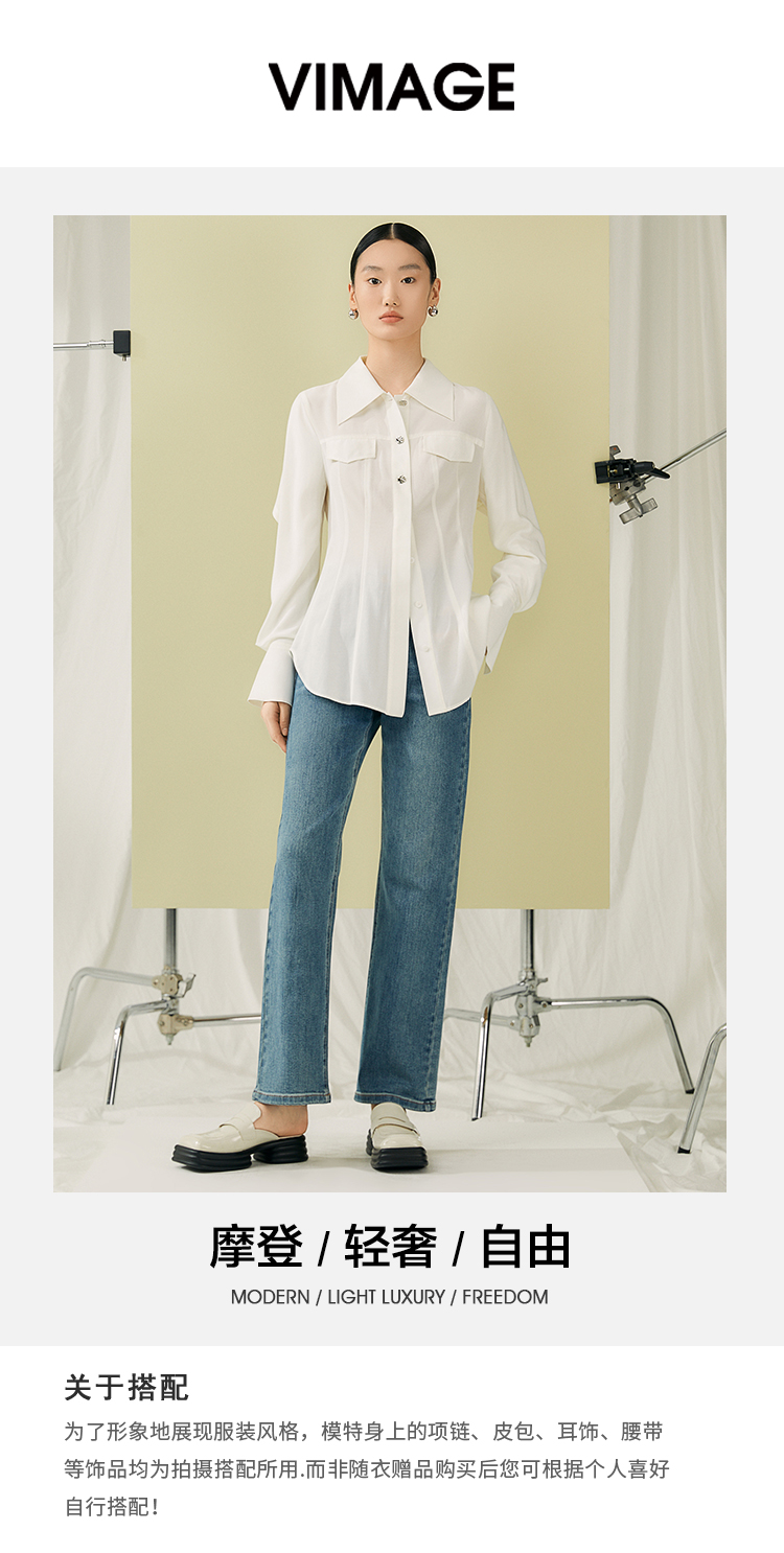 VIMAGE纬漫纪夏季新款百搭小众设计感衬衣衬衫V1909513