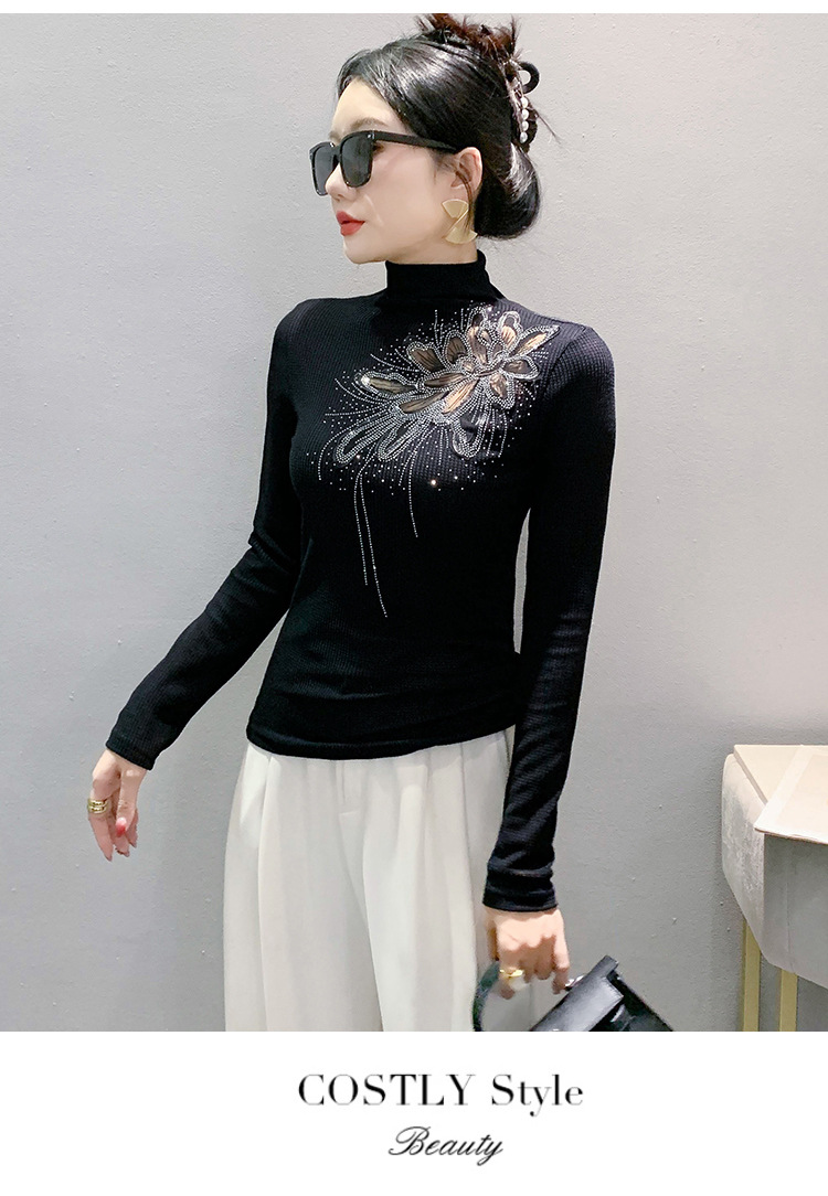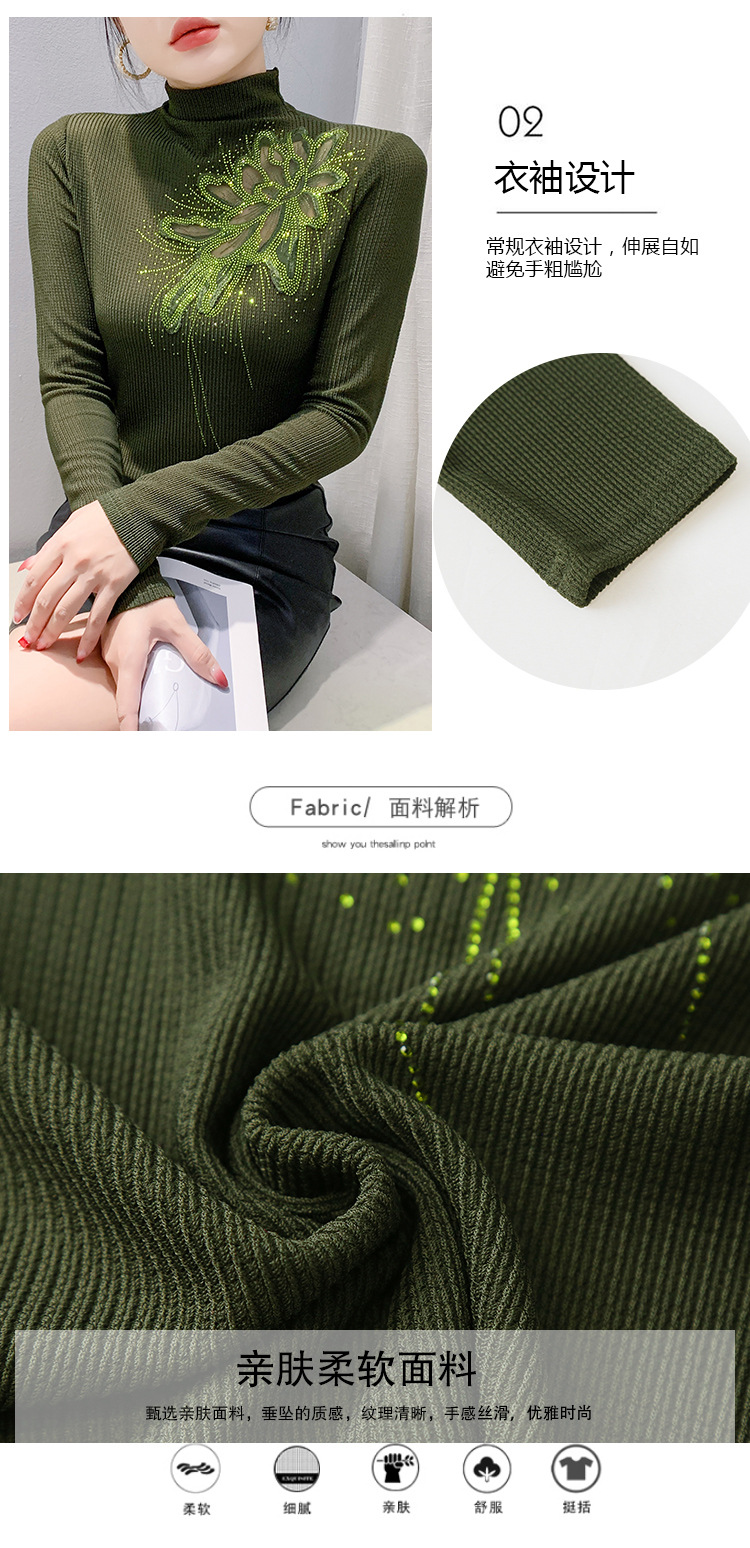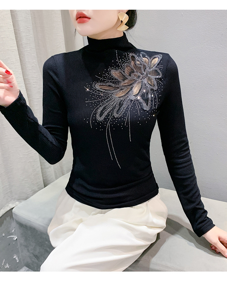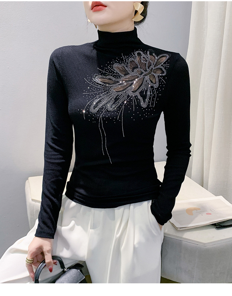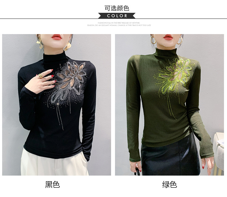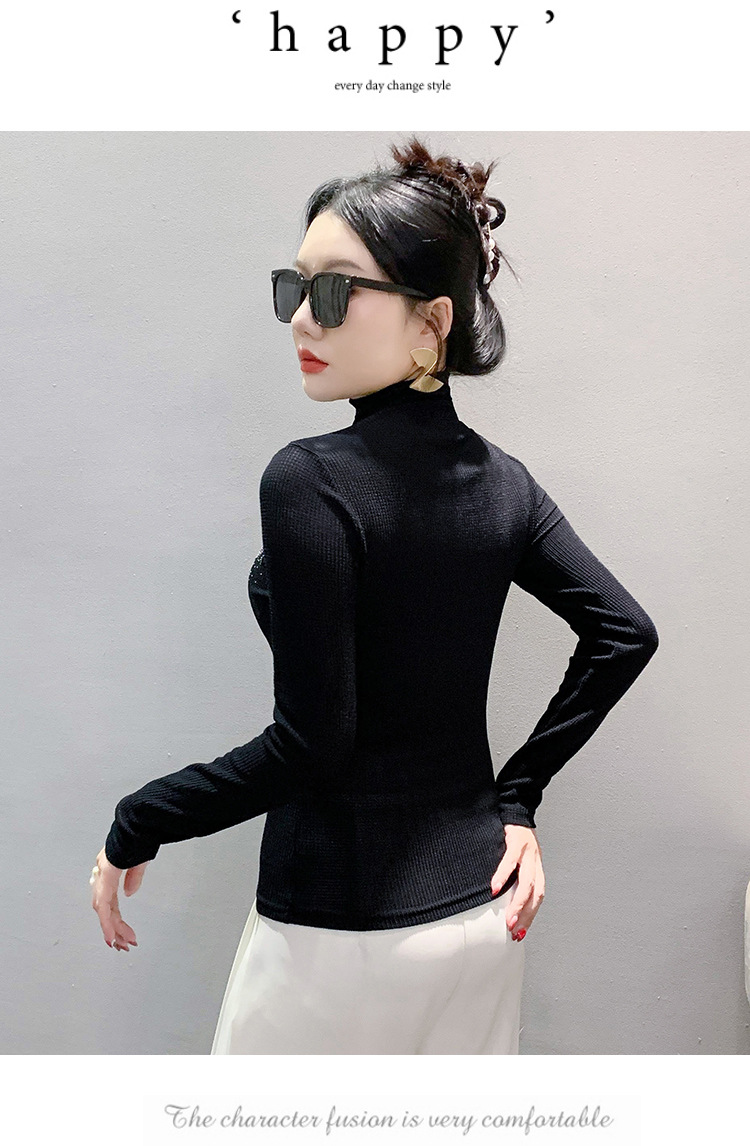 高领长袖优雅花边镂空水钻修身打底衫K-462H7257