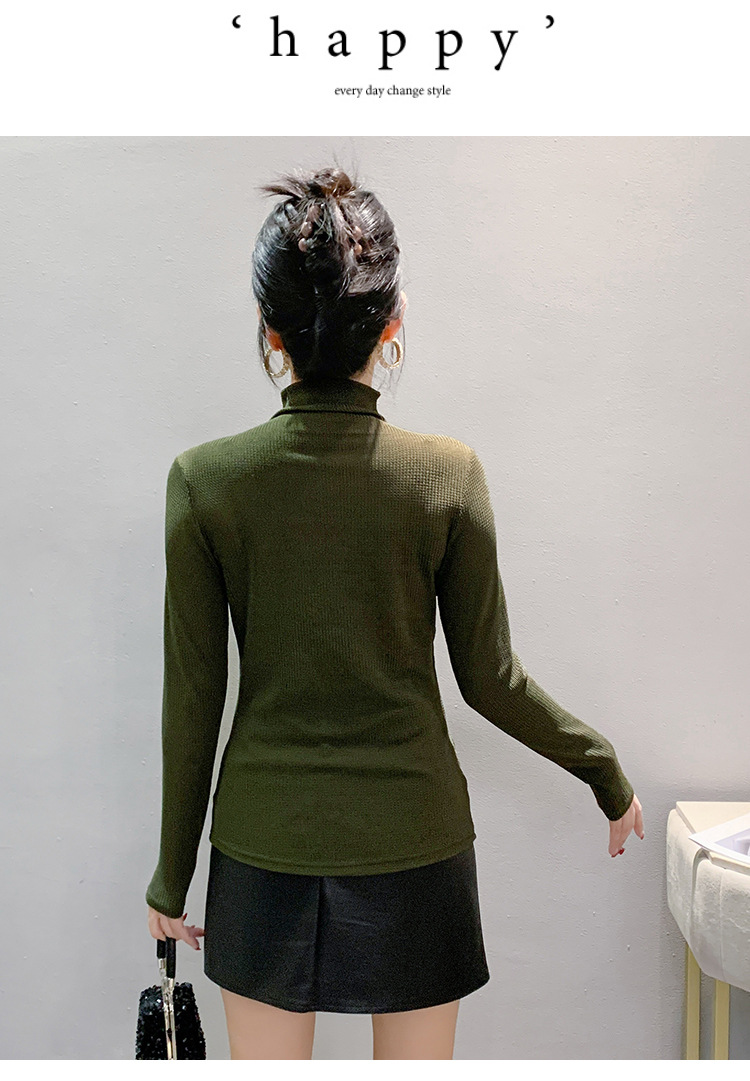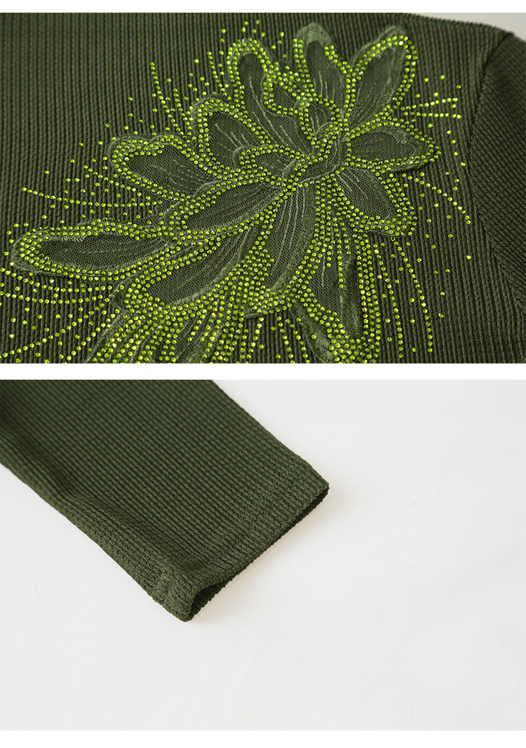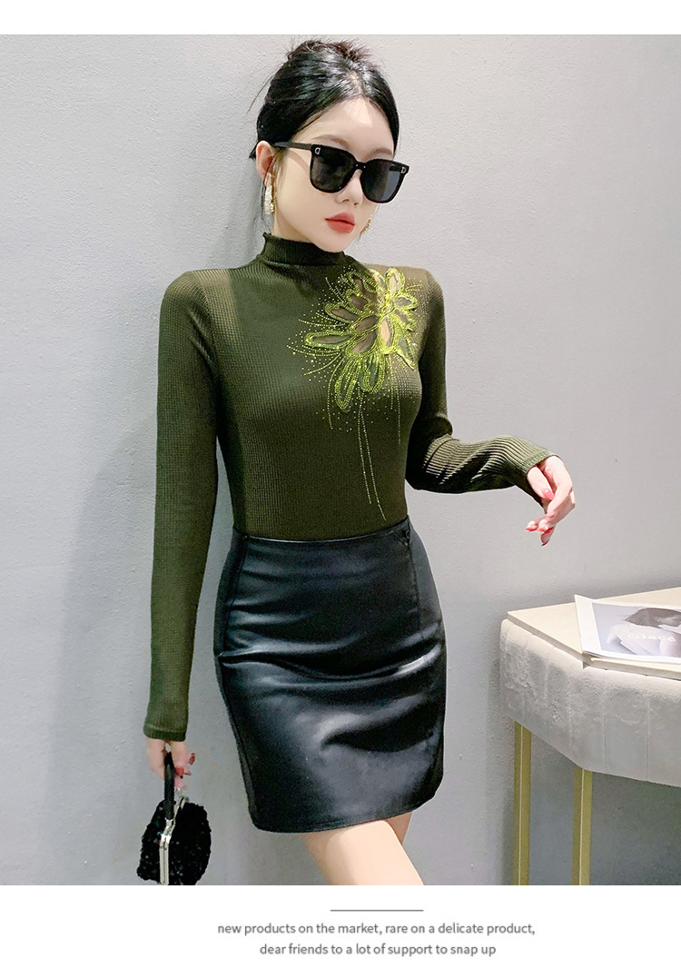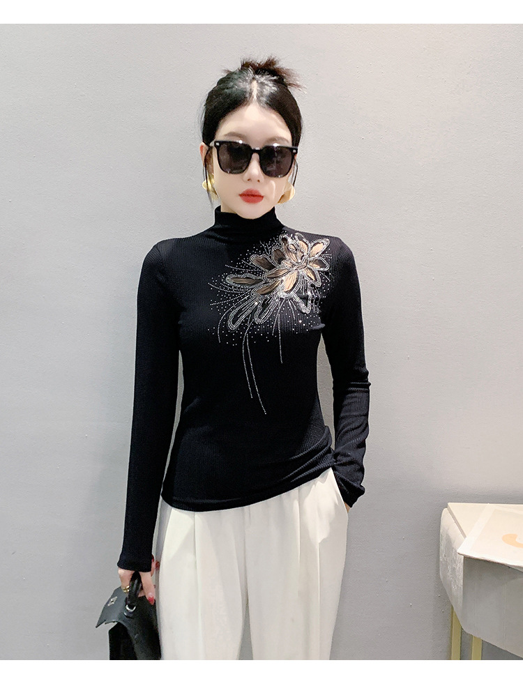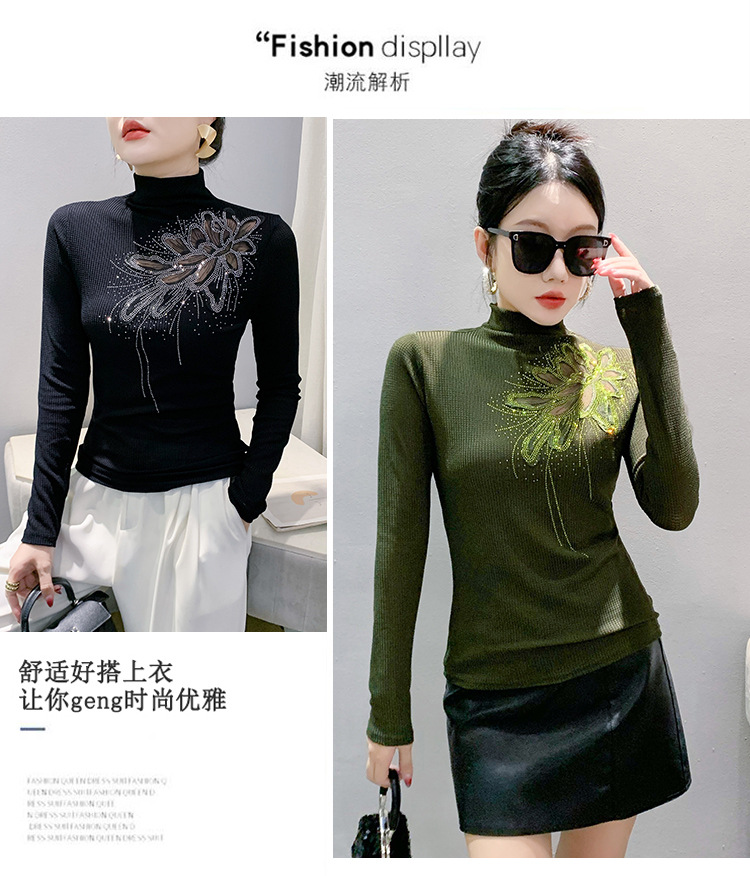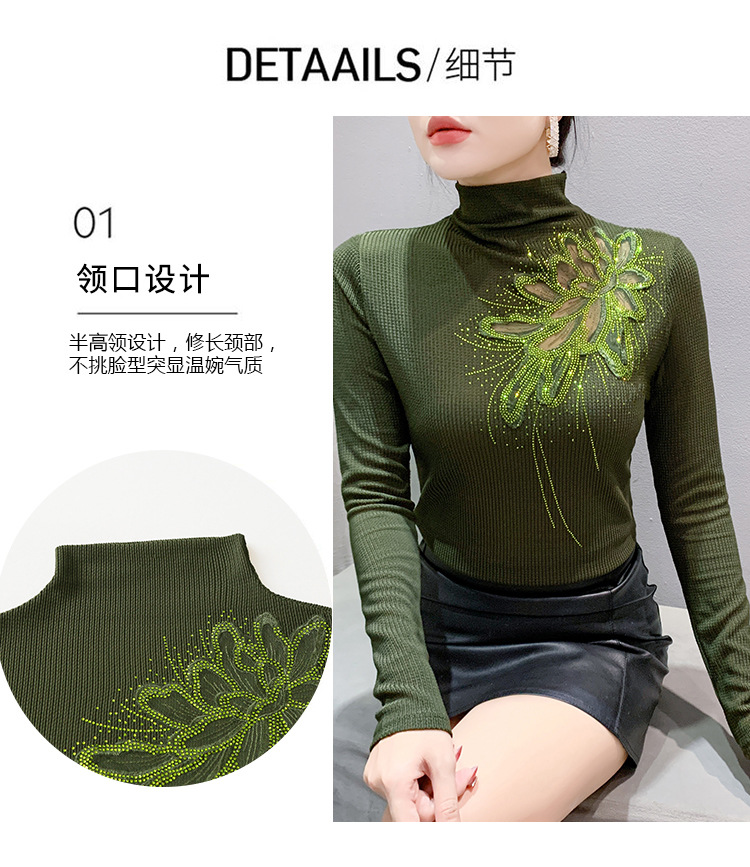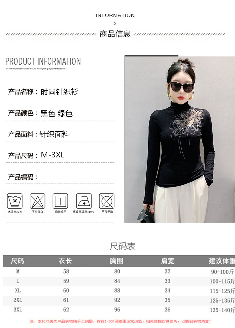高领长袖优雅花边镂空水钻修身打底衫K-462H7257
