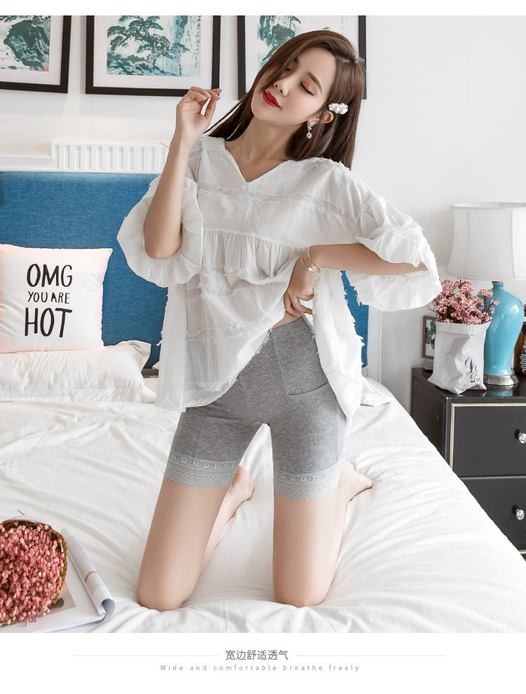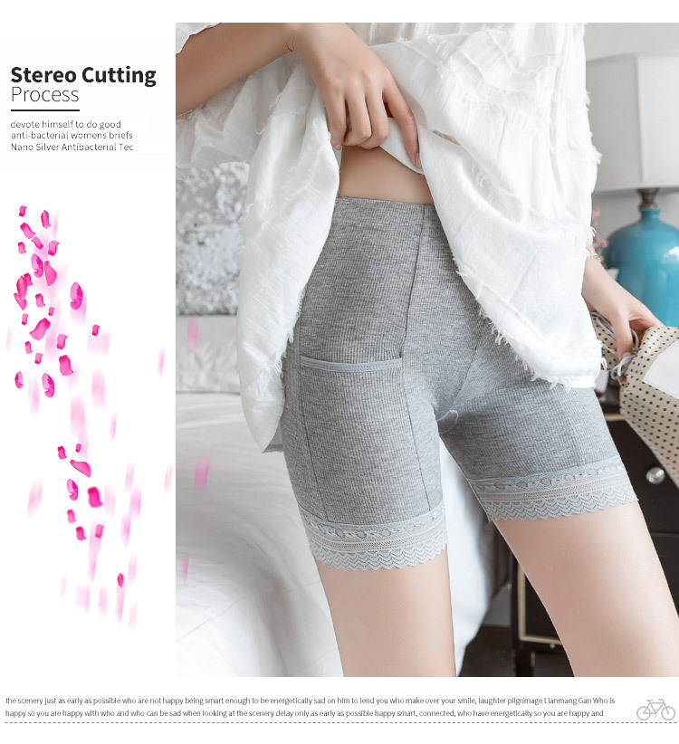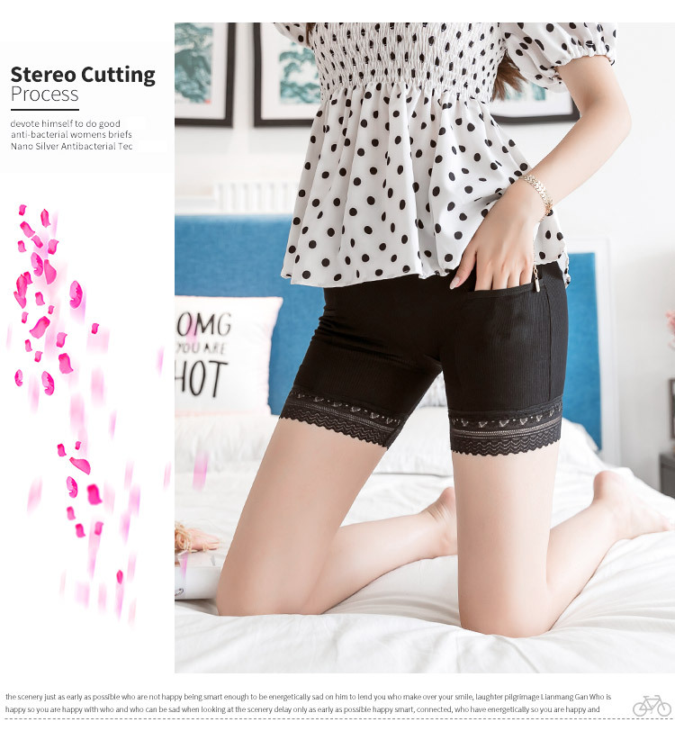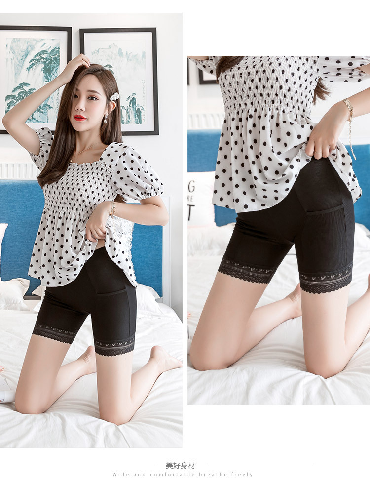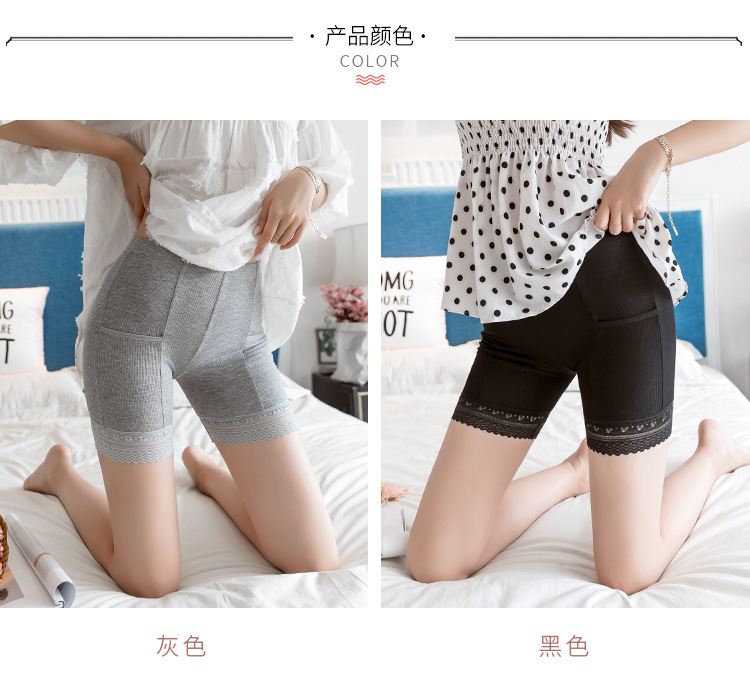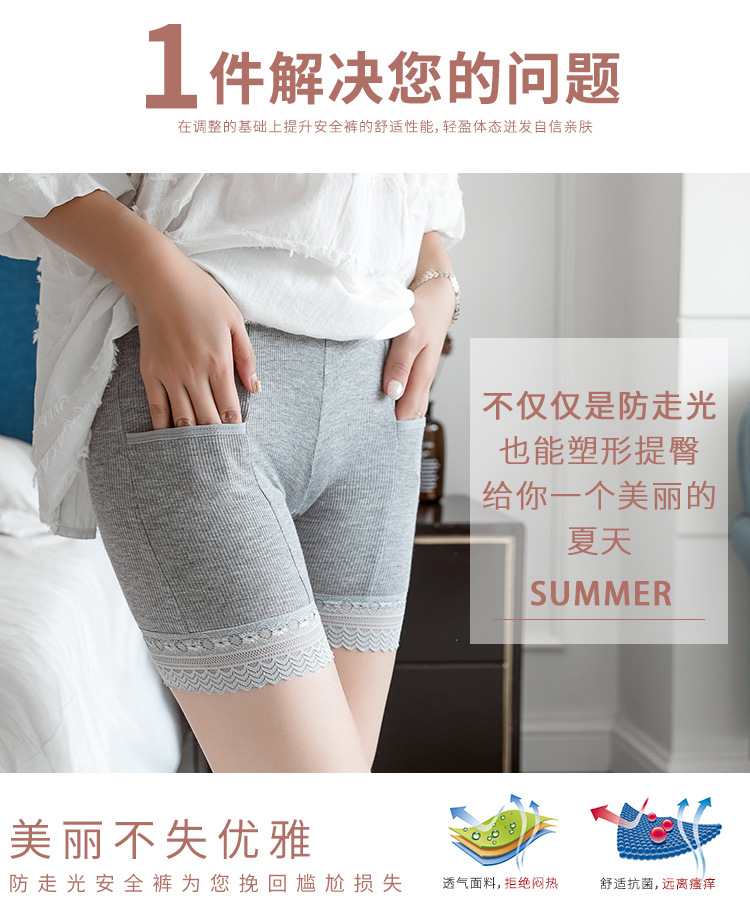 口袋安全裤防走光女薄款大码夏螺纹棉保险裤蕾丝打底短裤TZW