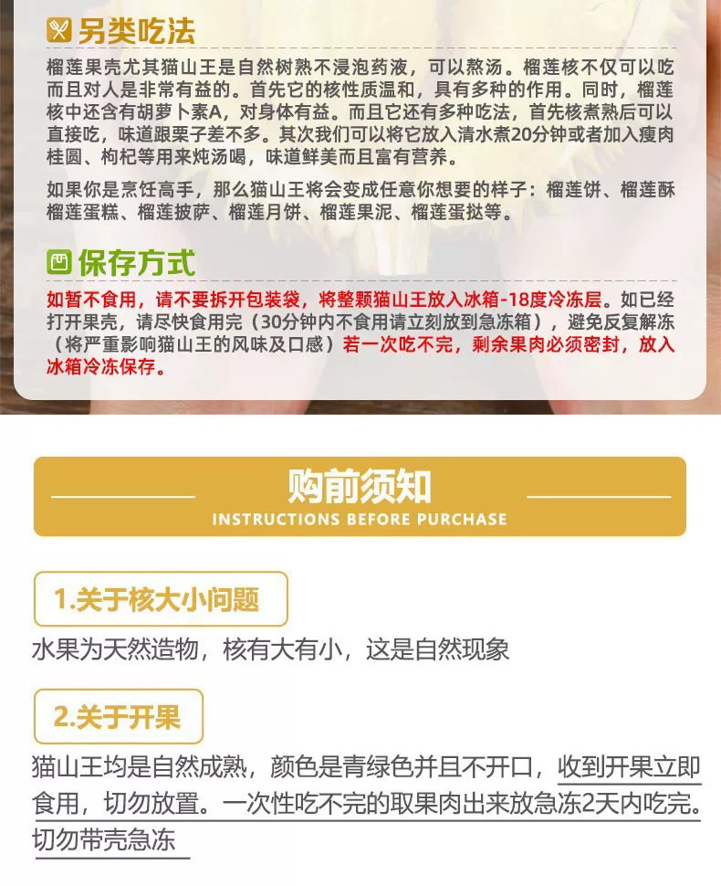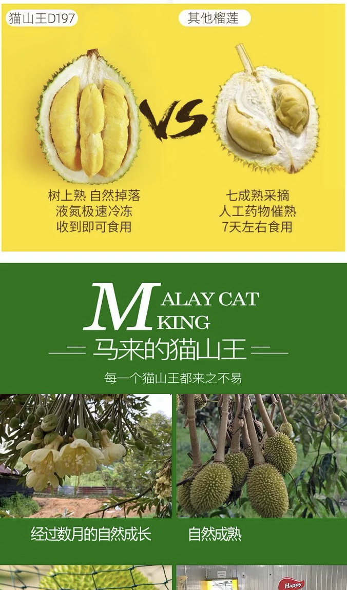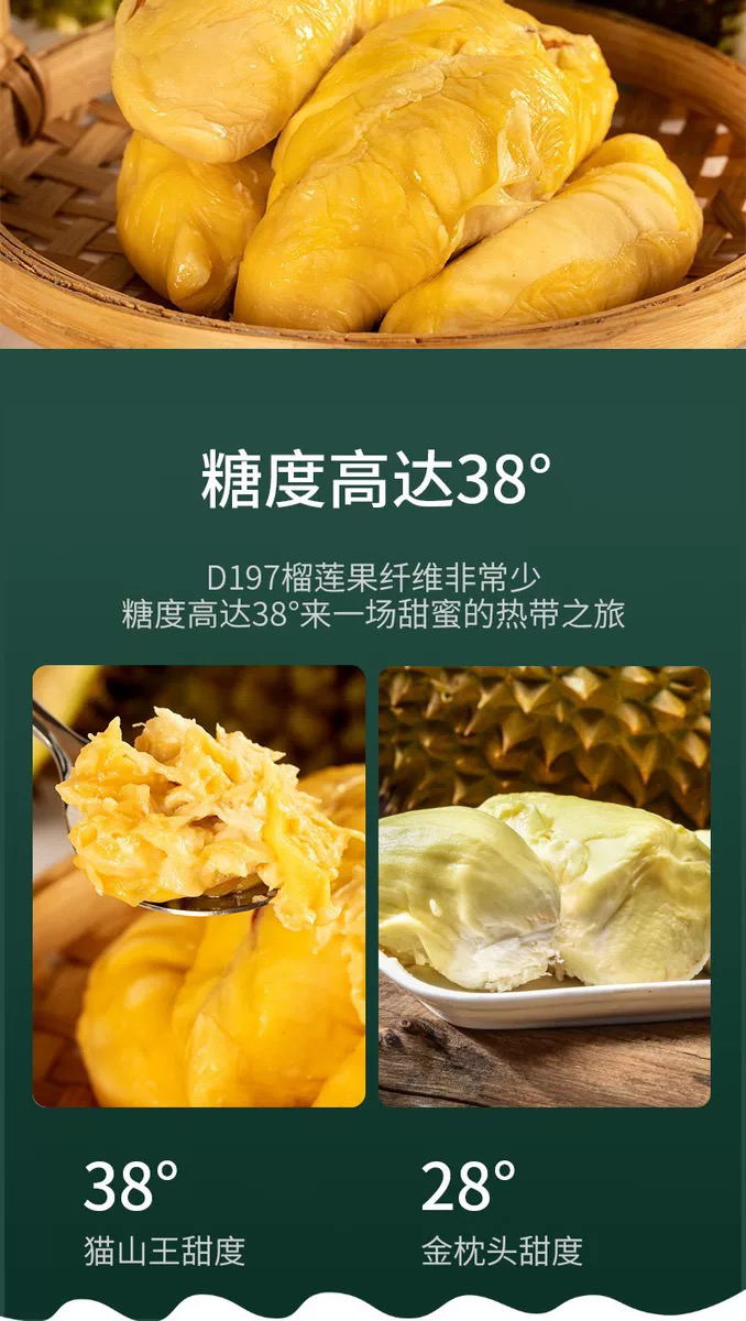 马来西亚猫山王D197榴莲果肉400克顺丰