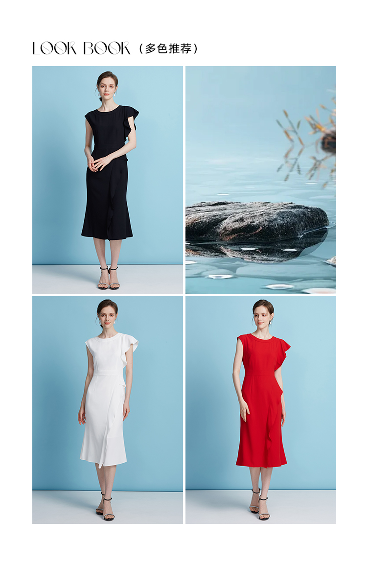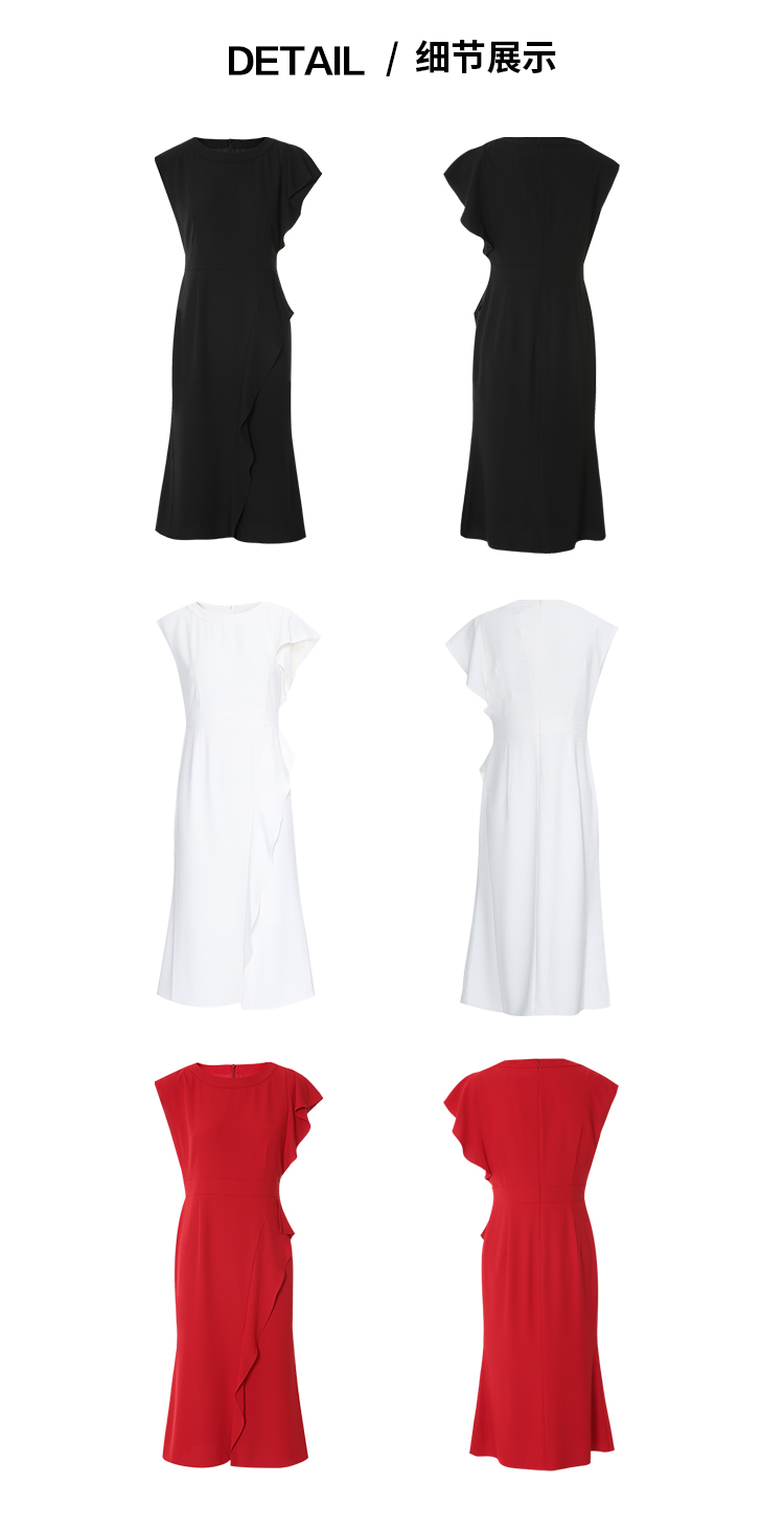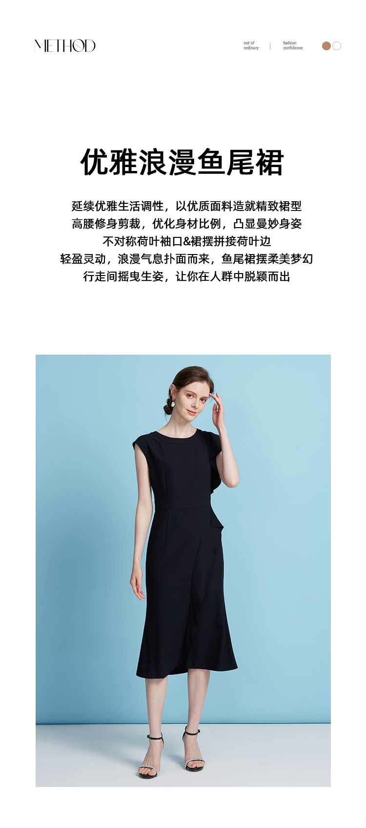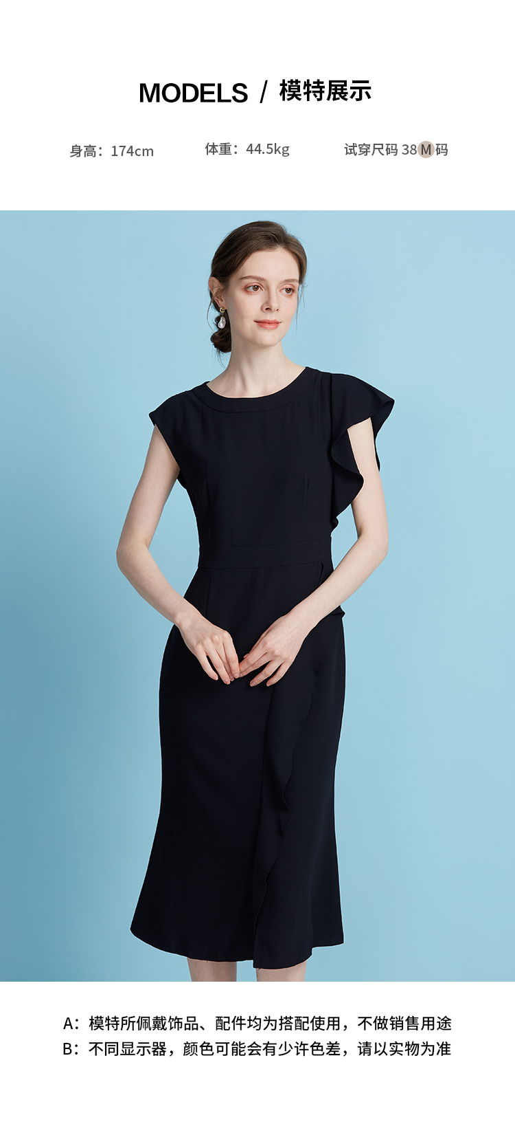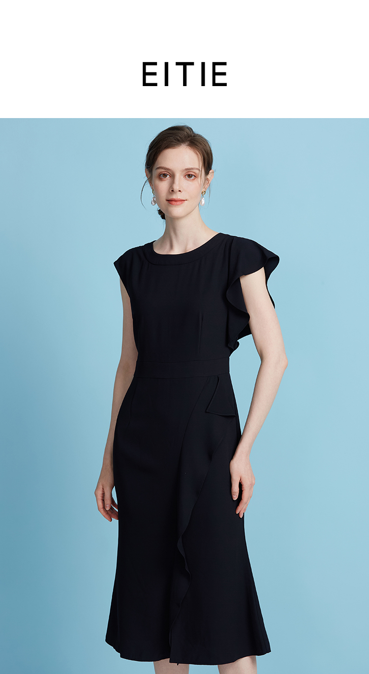 【荷叶边拼接鱼尾裙】EITIE爱特爱不对称设计优雅法式多色连衣裙B2507654