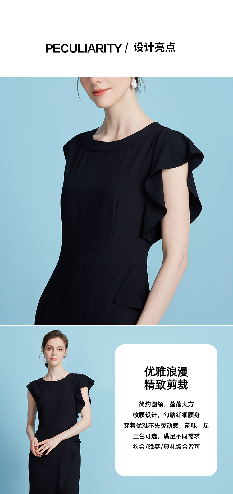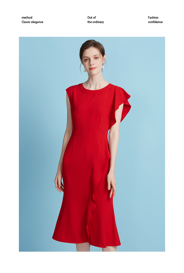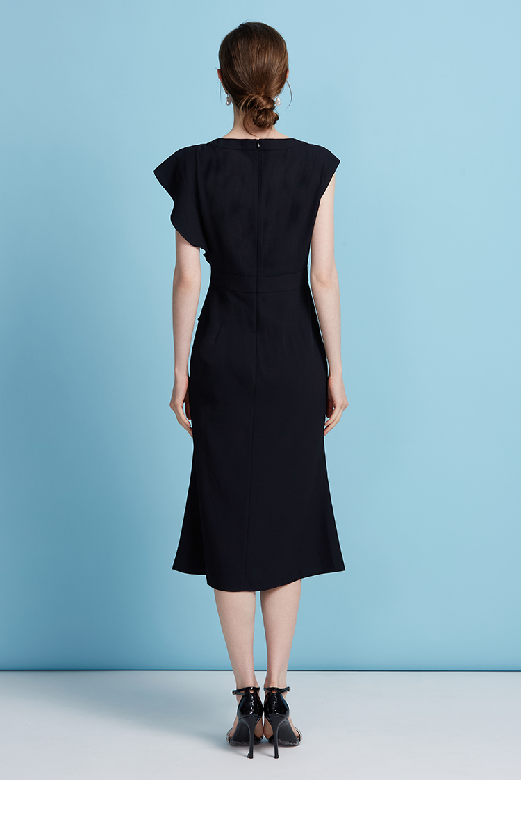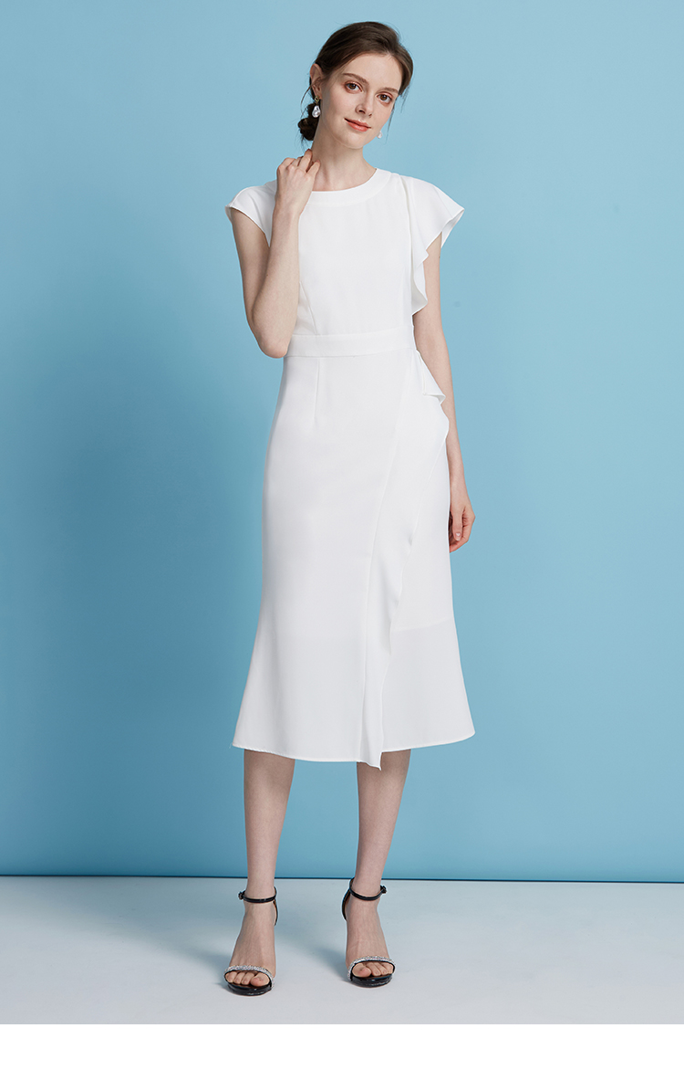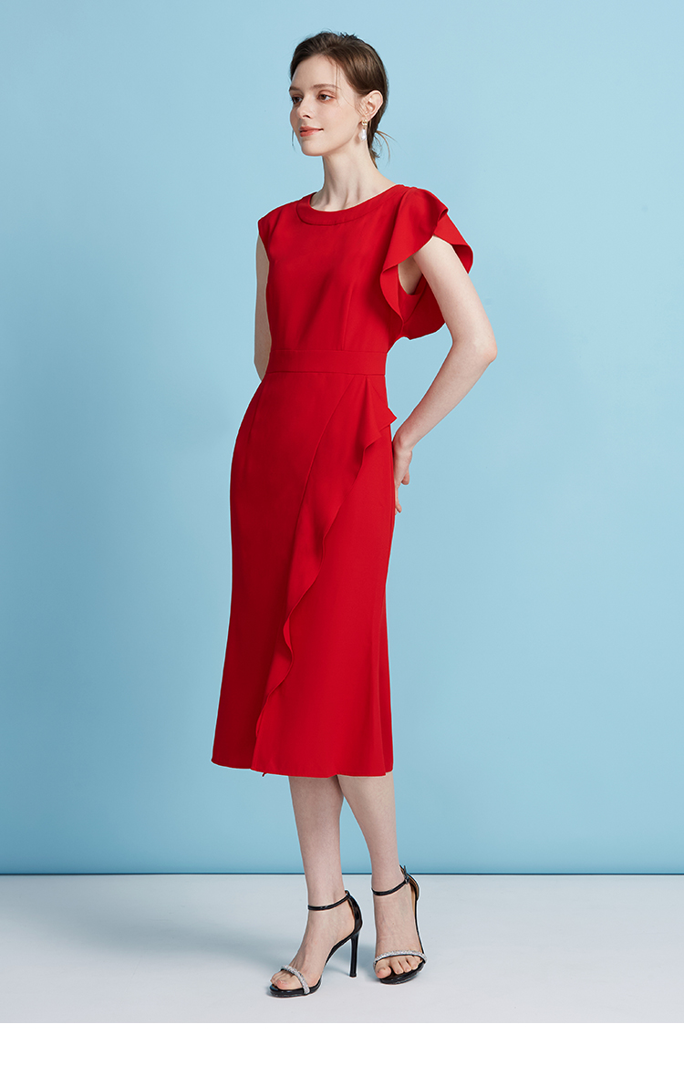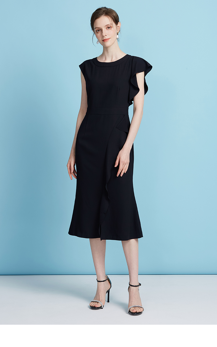 【荷叶边拼接鱼尾裙】EITIE爱特爱不对称设计优雅法式多色连衣裙B2507654