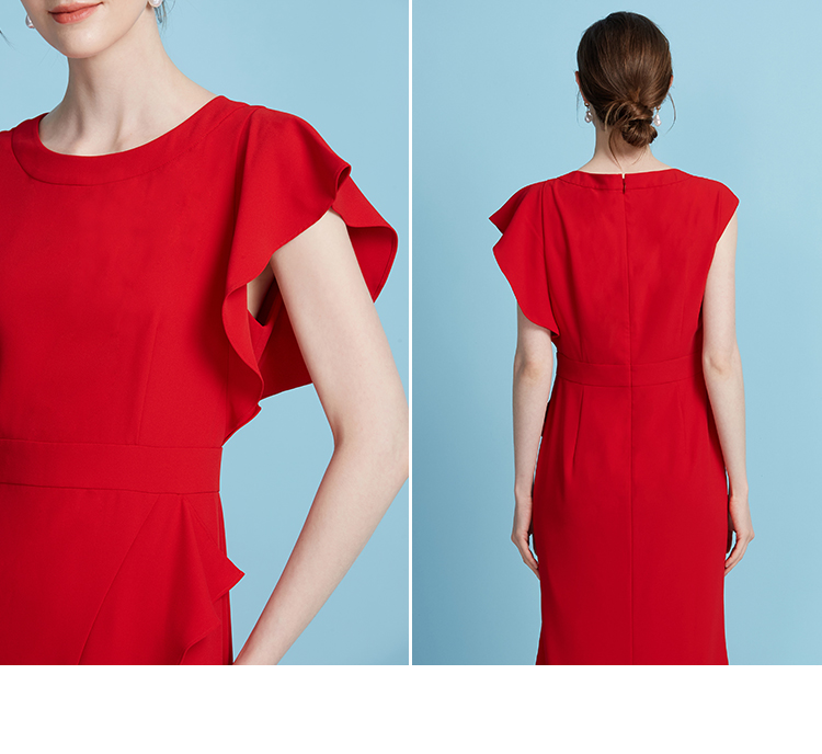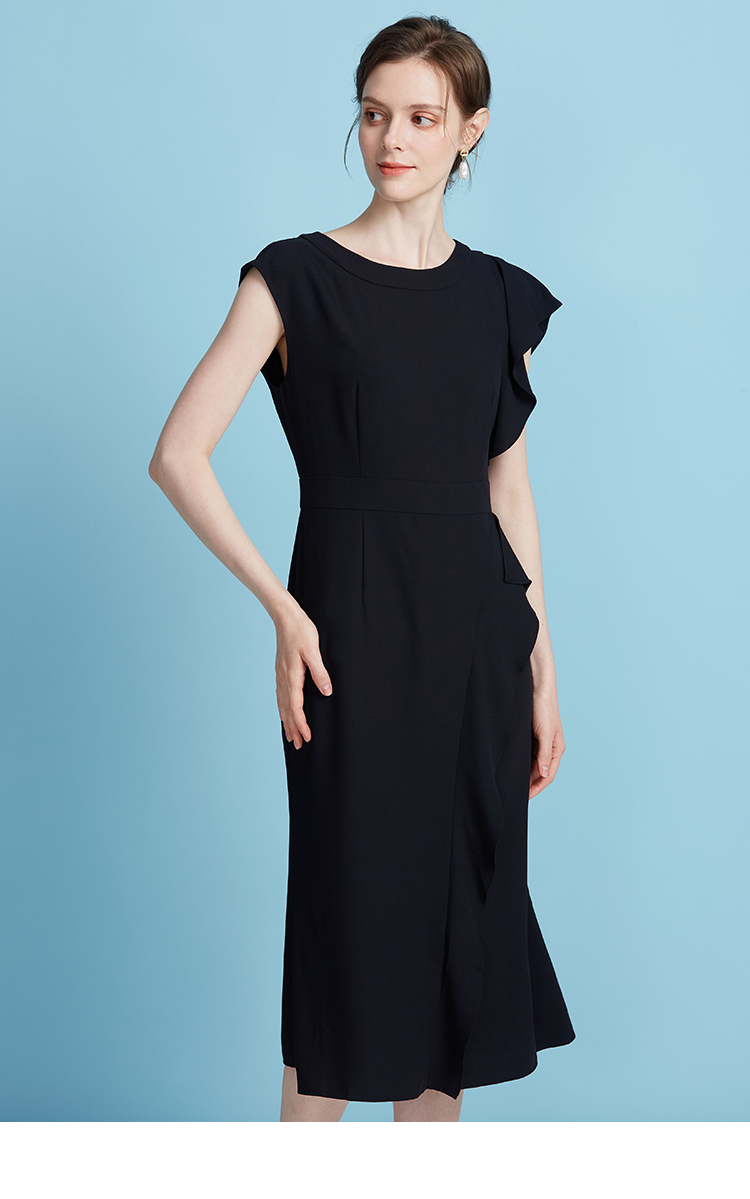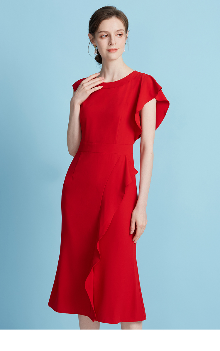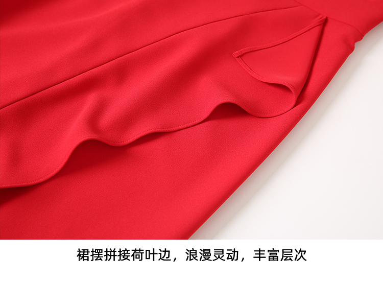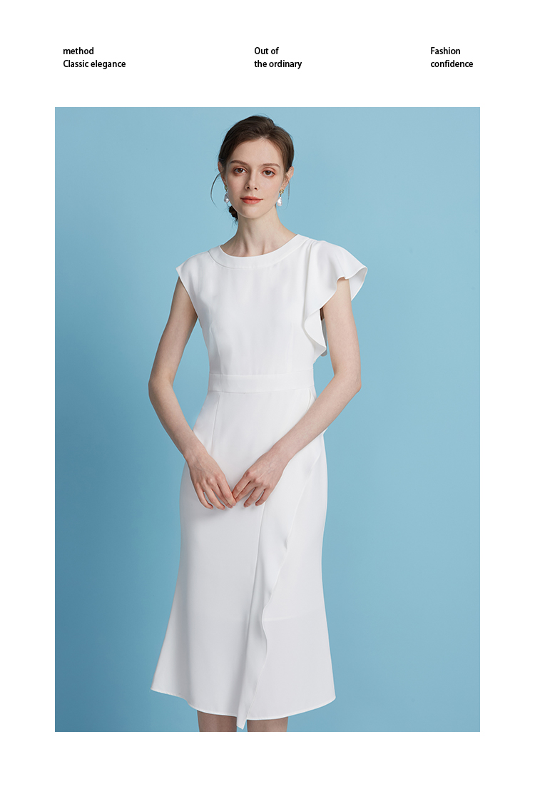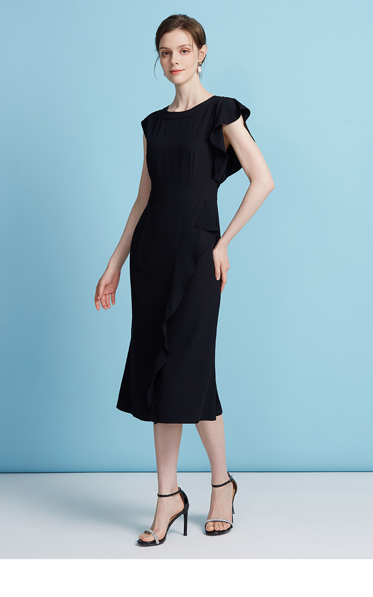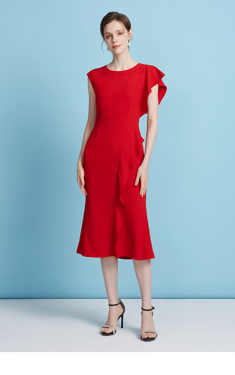 【荷叶边拼接鱼尾裙】EITIE爱特爱不对称设计优雅法式多色连衣裙B2507654
