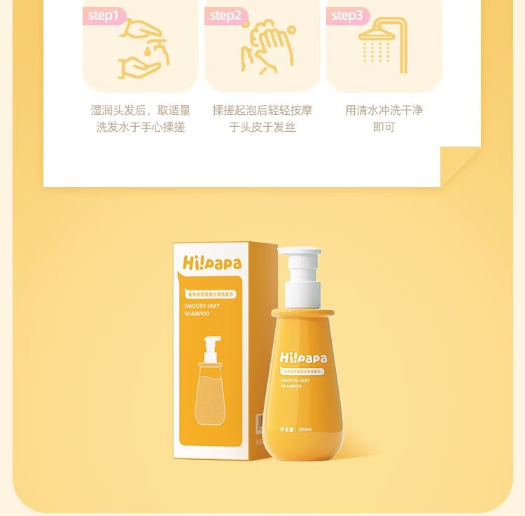 海龟爸爸柔顺丝滑洗发水200ml 女孩宝宝专用3-12岁长发女童柔顺丝滑滋养氨基酸洗发露