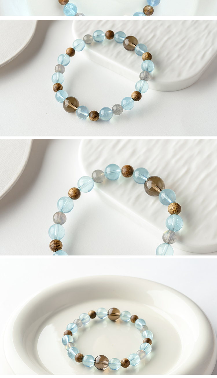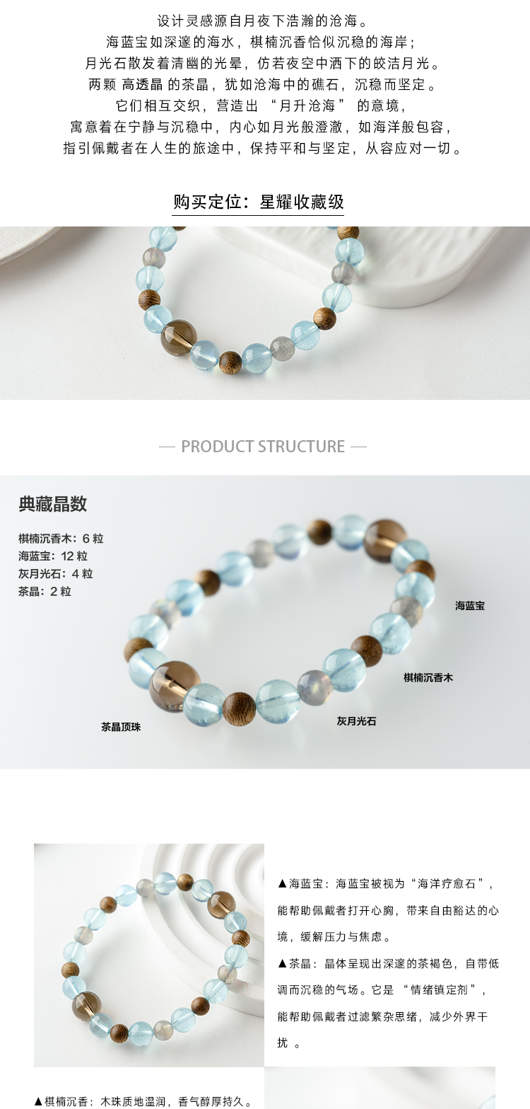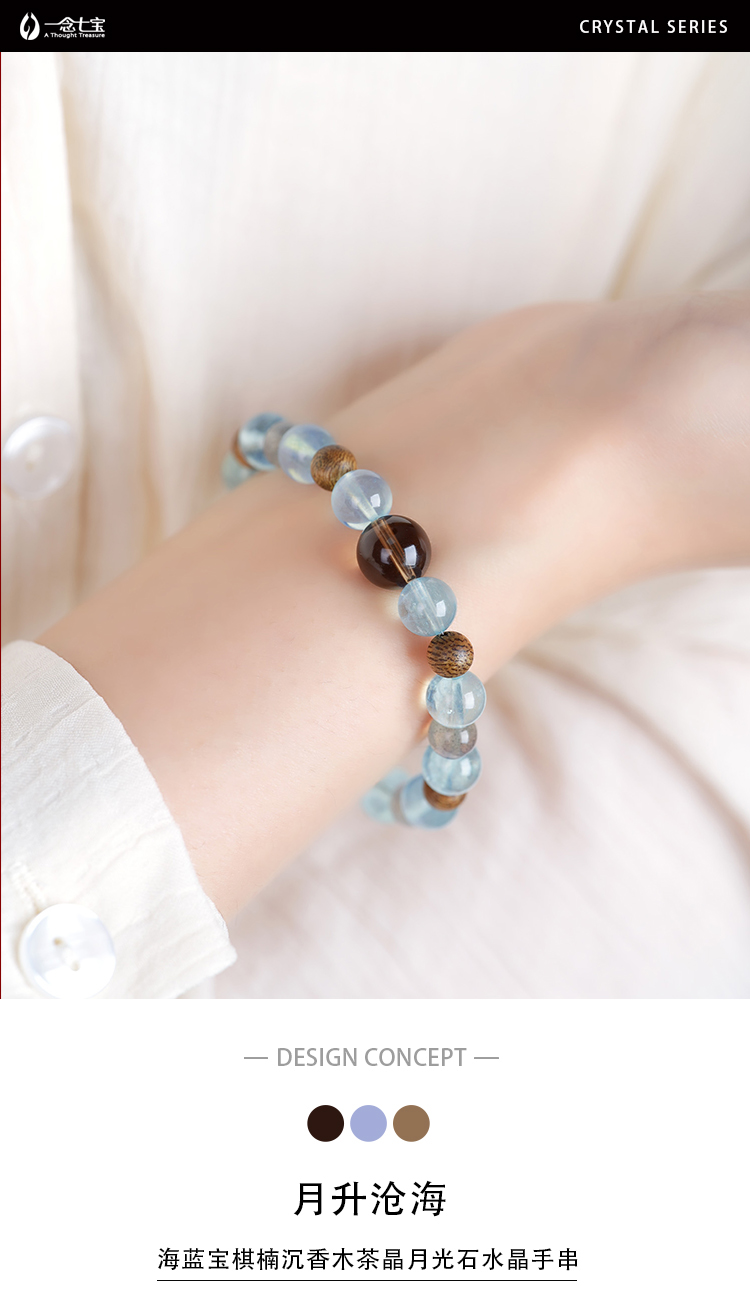 一念七宝 月升沧海 | 海蓝宝棋楠沉香木茶晶月光石水晶手串